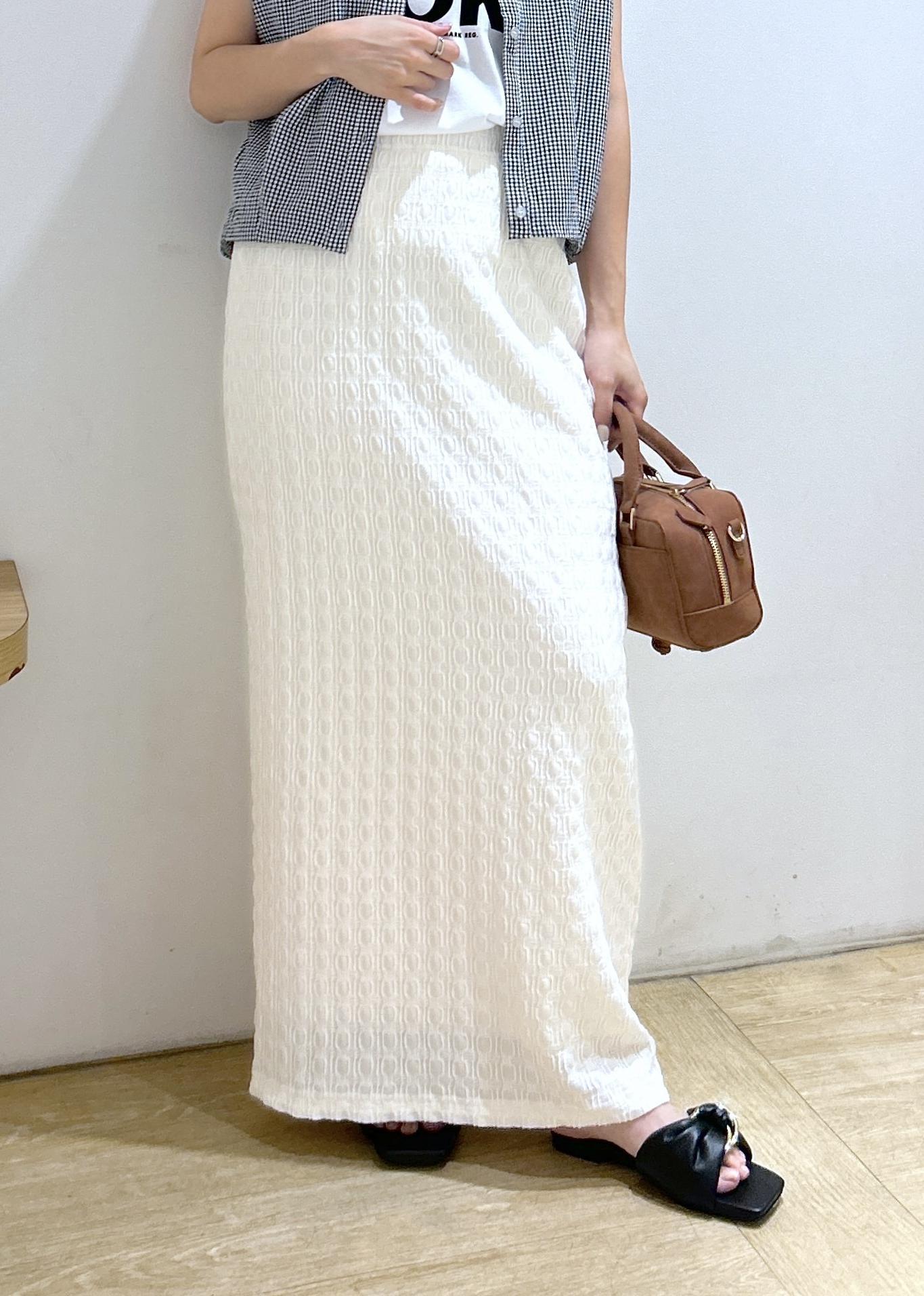 アウトレットVIS【新色追加】【接触冷感】膨れジャガードナロースカートオフホワイト / F¥3,293レビュータイトすぎずゆったりめのIラインスカートです。150㎝で床につかないギリギリの長さです。ウエストゴムでストレスフリーです!