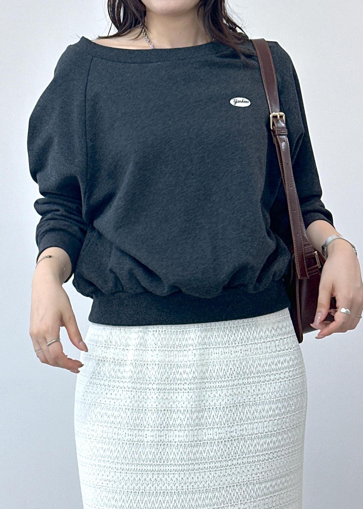 カジュアルになりがちなスウェットもオフショルダーだと女性らしさやヘルシーさがプラスされるのでオススメ!