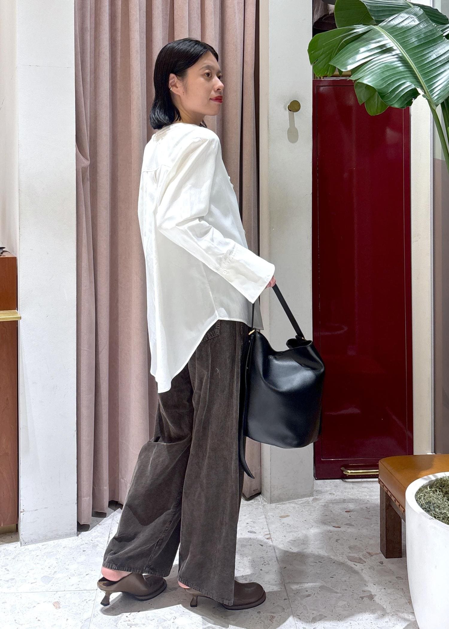 下に履いたコーデュロイパンツも素材が薄地なので、今から全然履ける秋物パンツでおすすめです!
