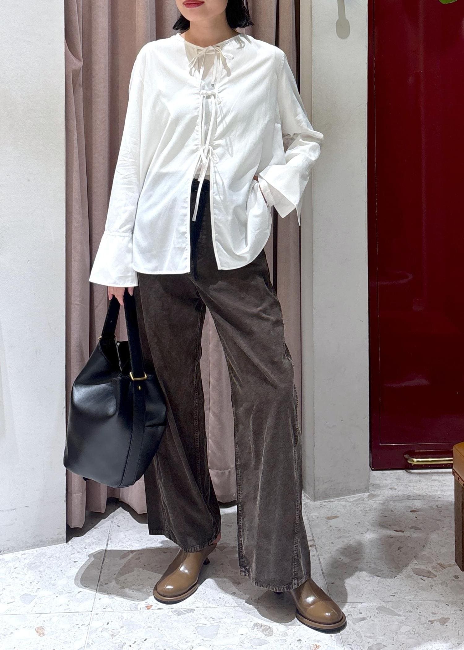 その中でも薄地でさらっと着れる、リボンブラウスを着てみました!
