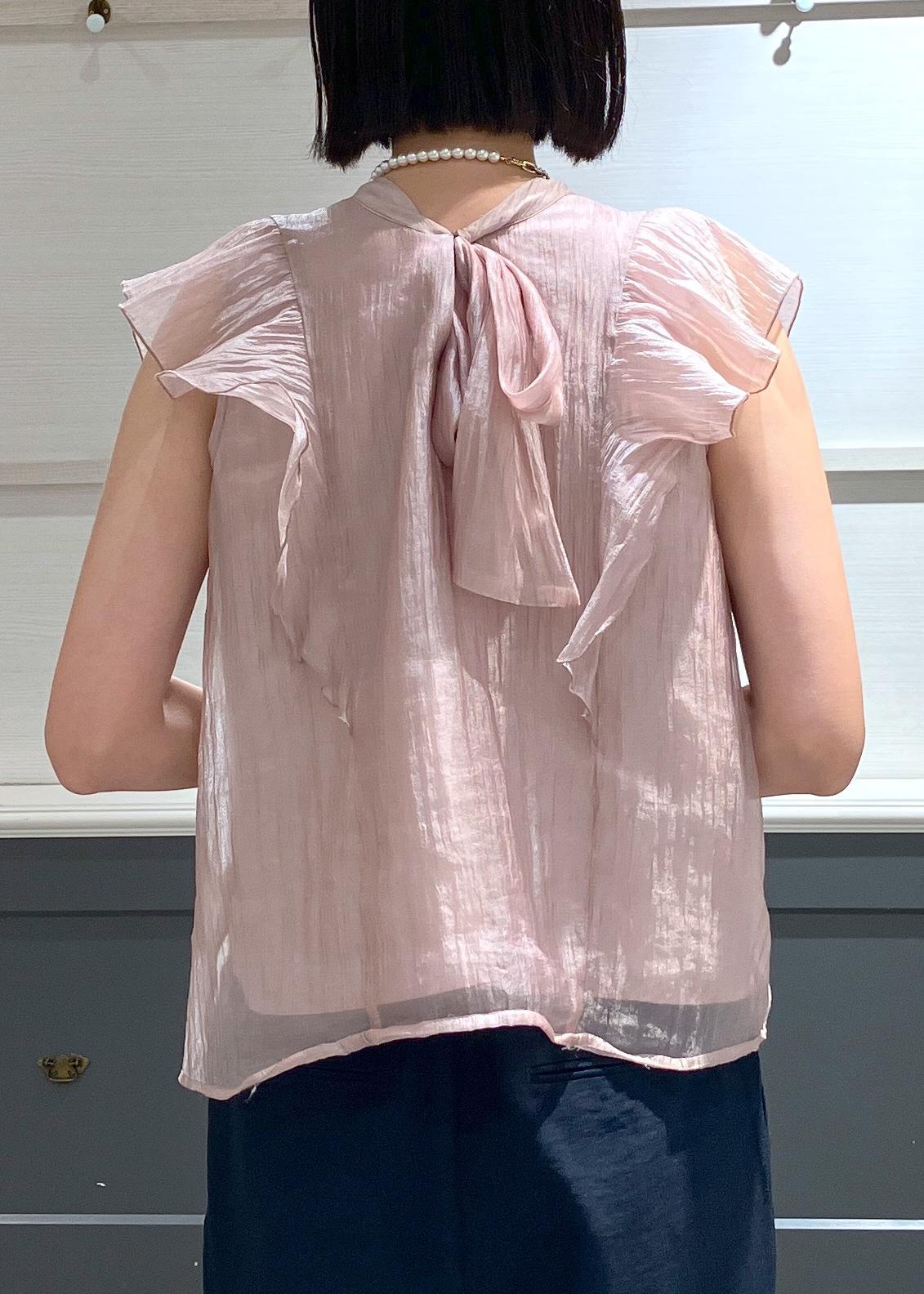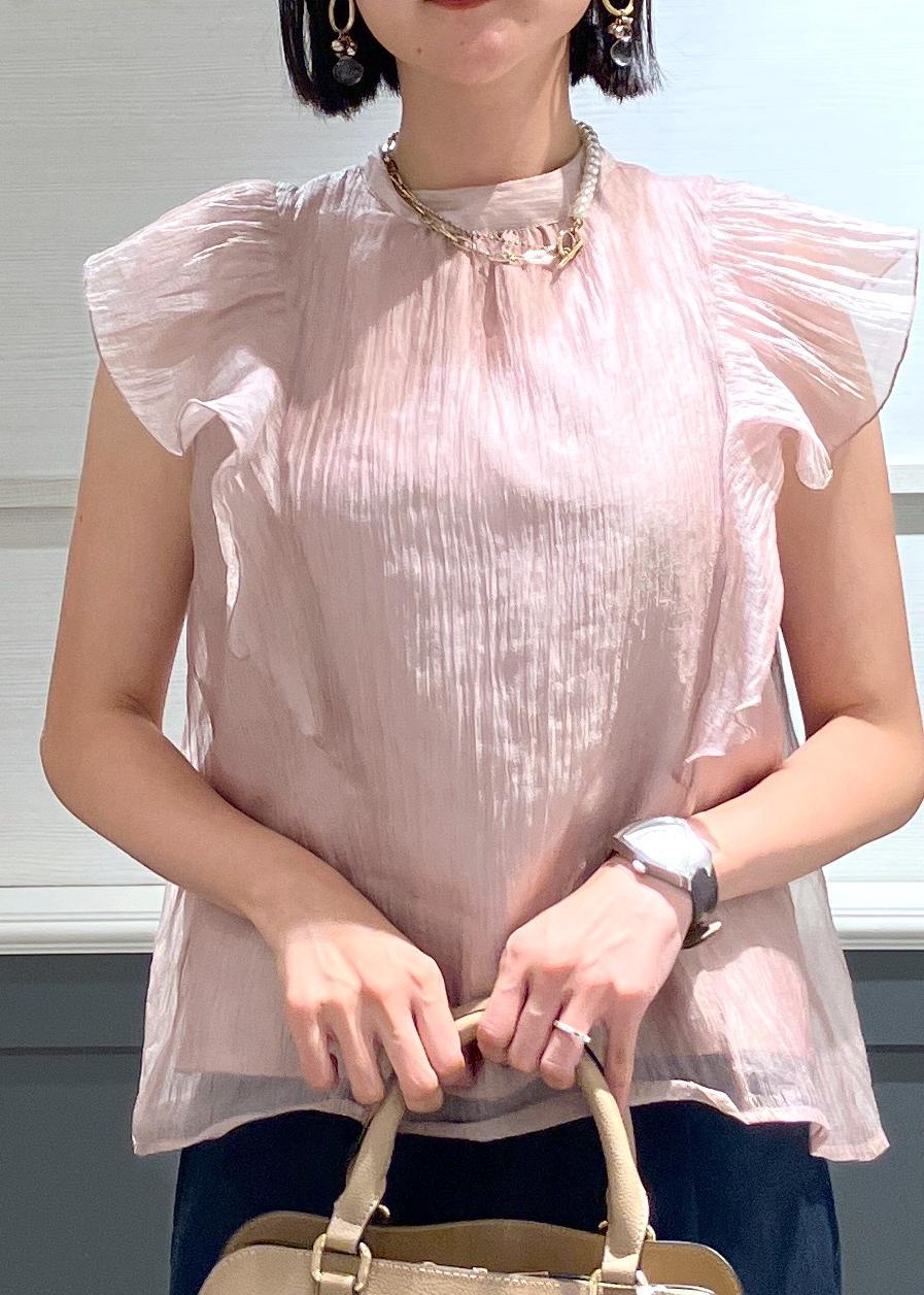 トップスはフリルにシアーに、おまけにカラーはピンク!