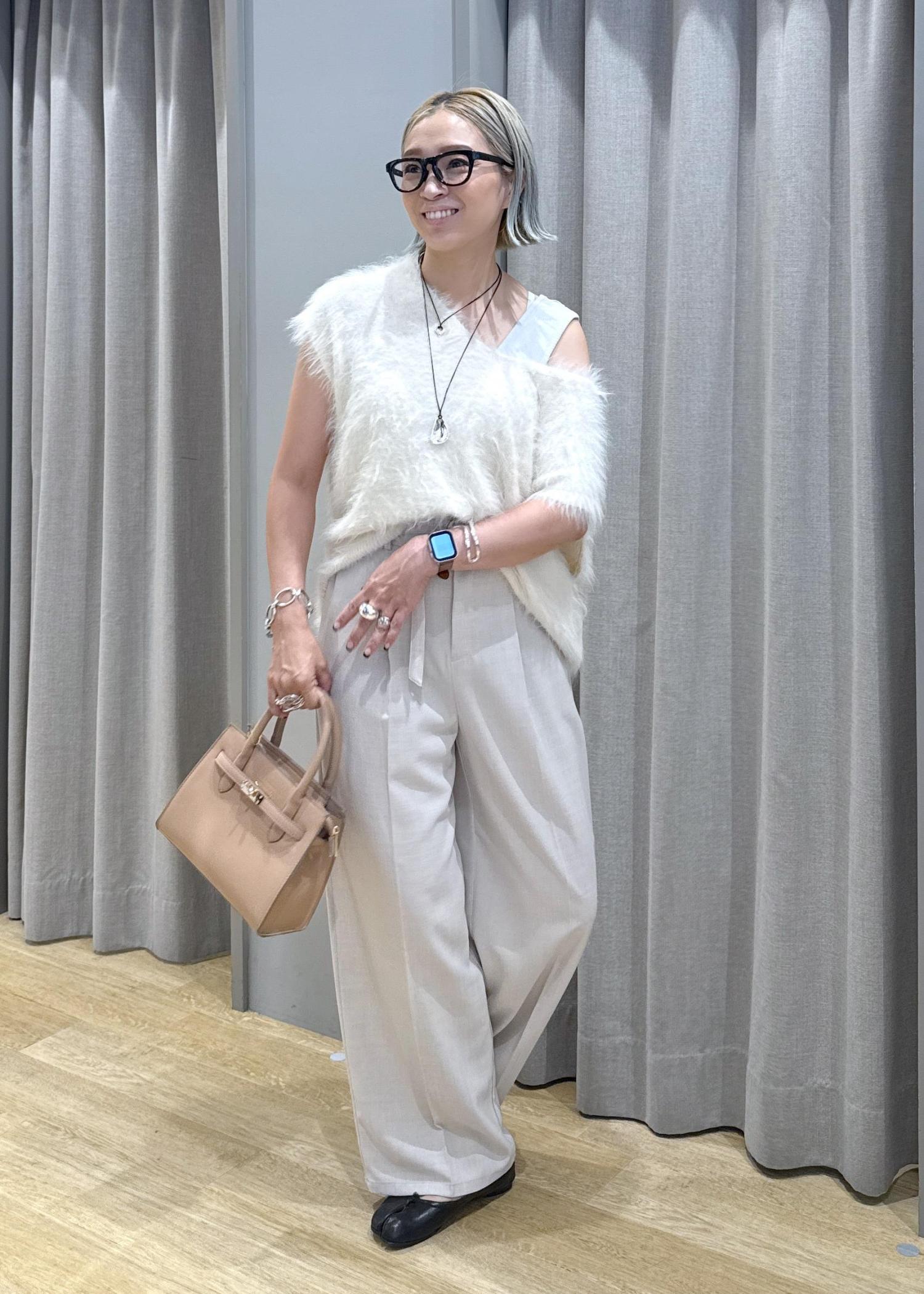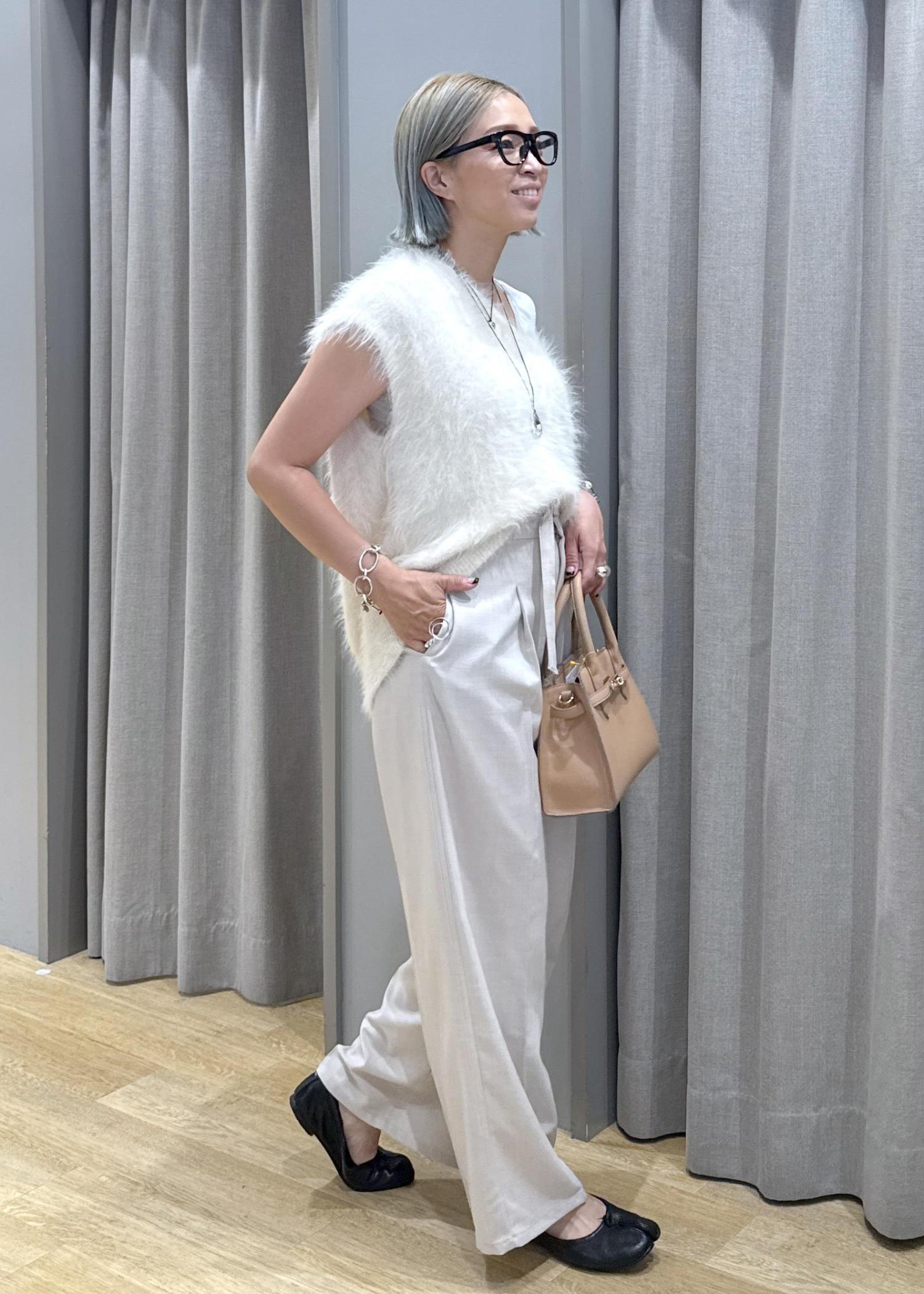 可愛らしさと顔映りのいいオフホワイトのワントーンコーデにしてみました!