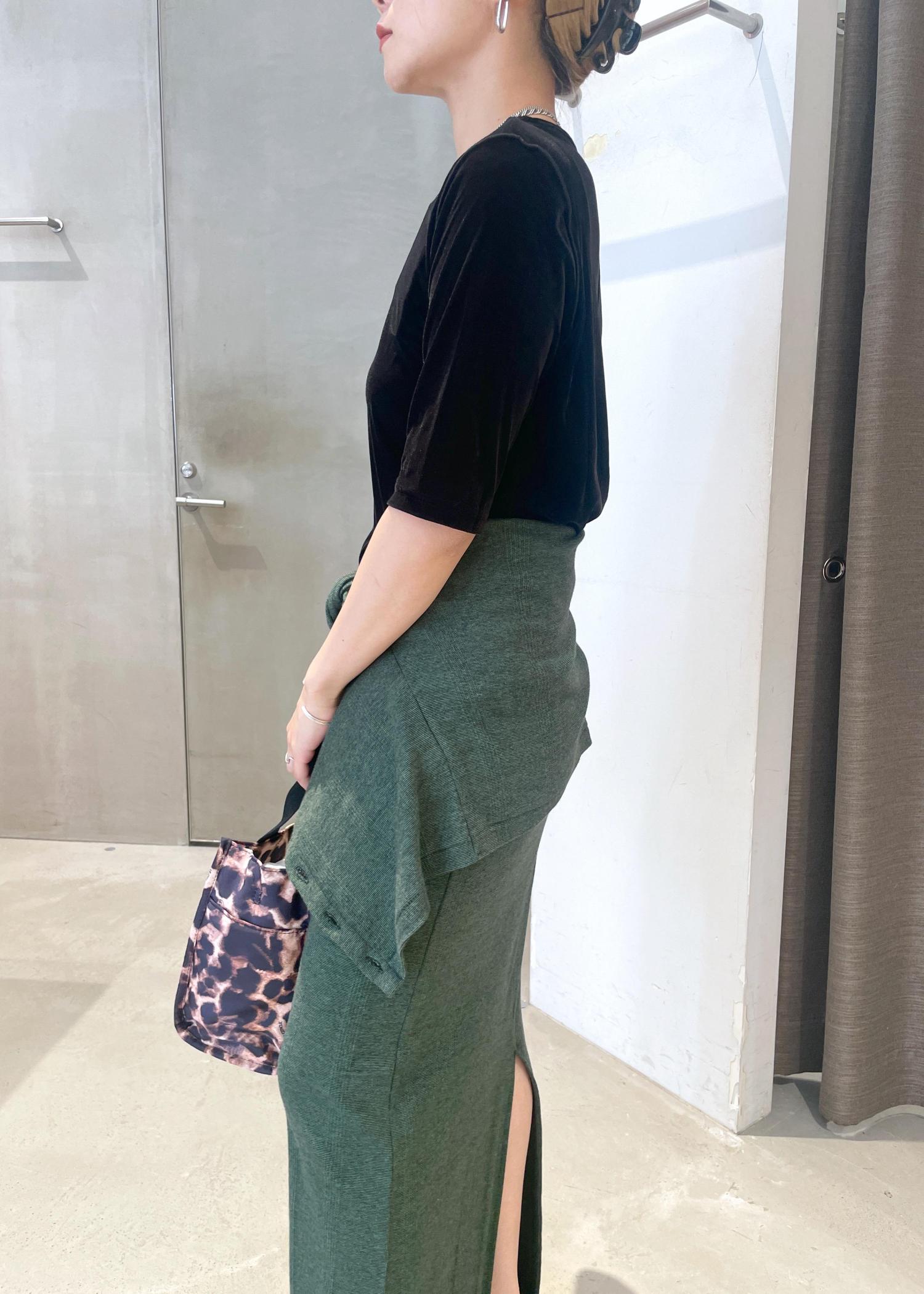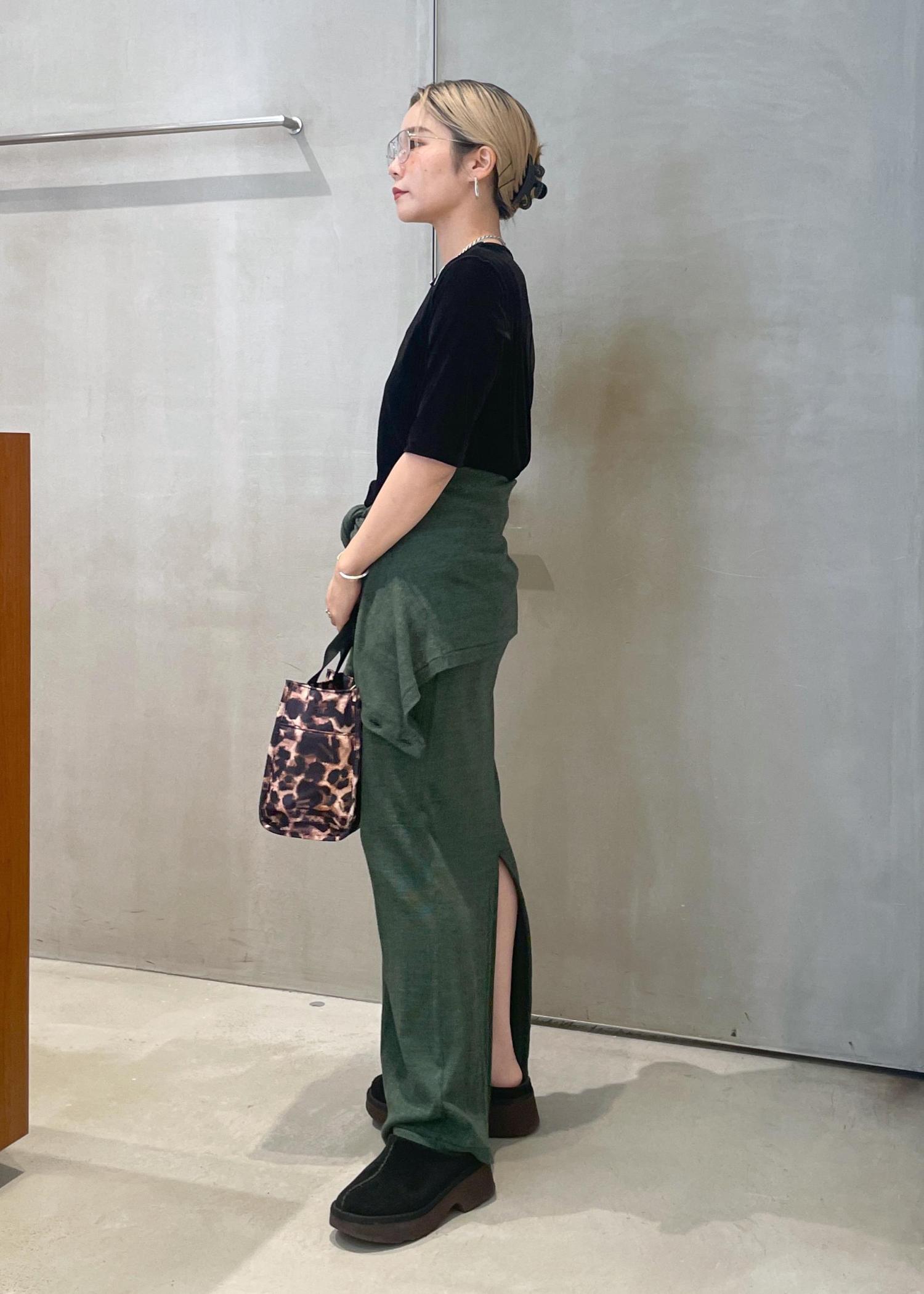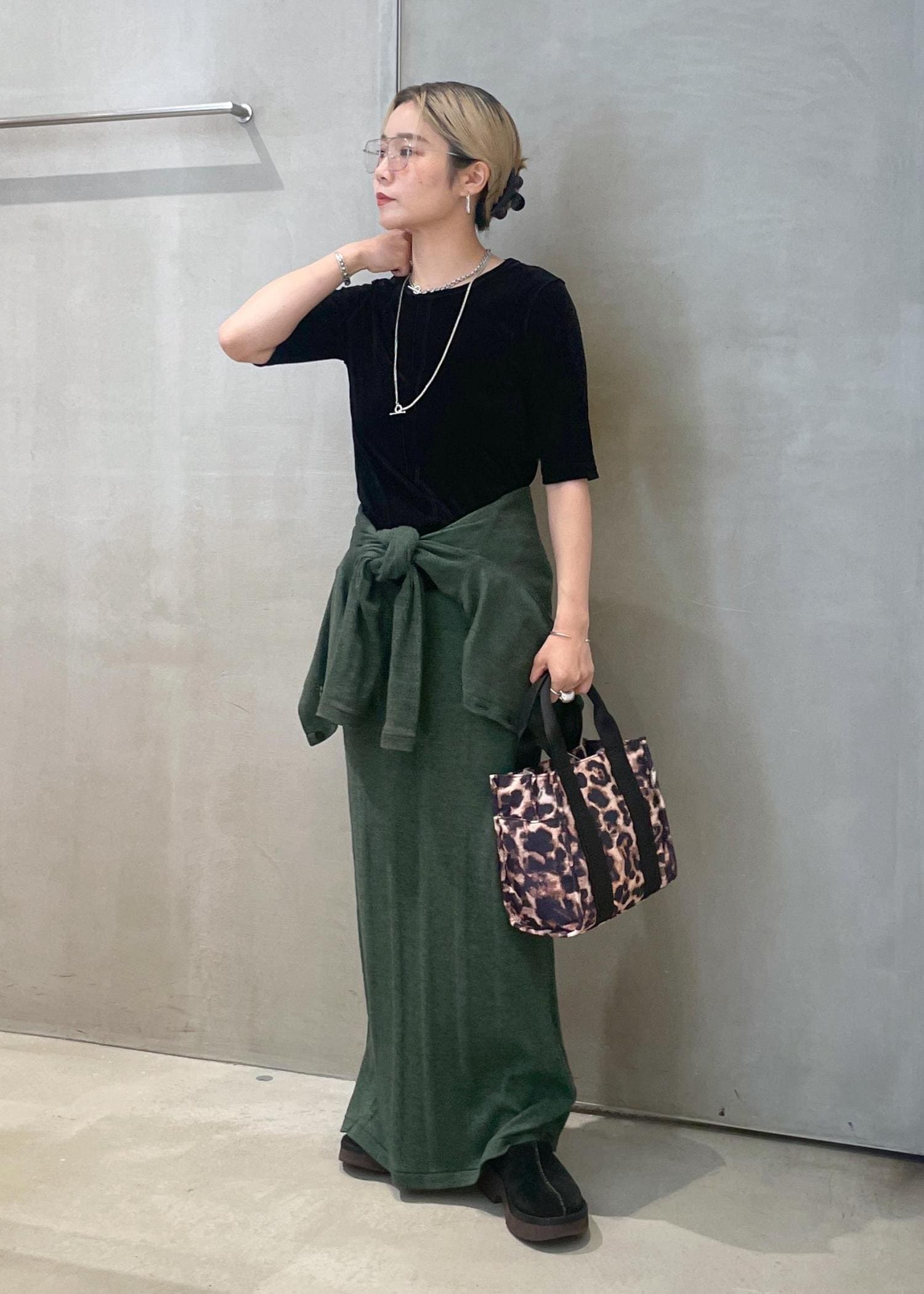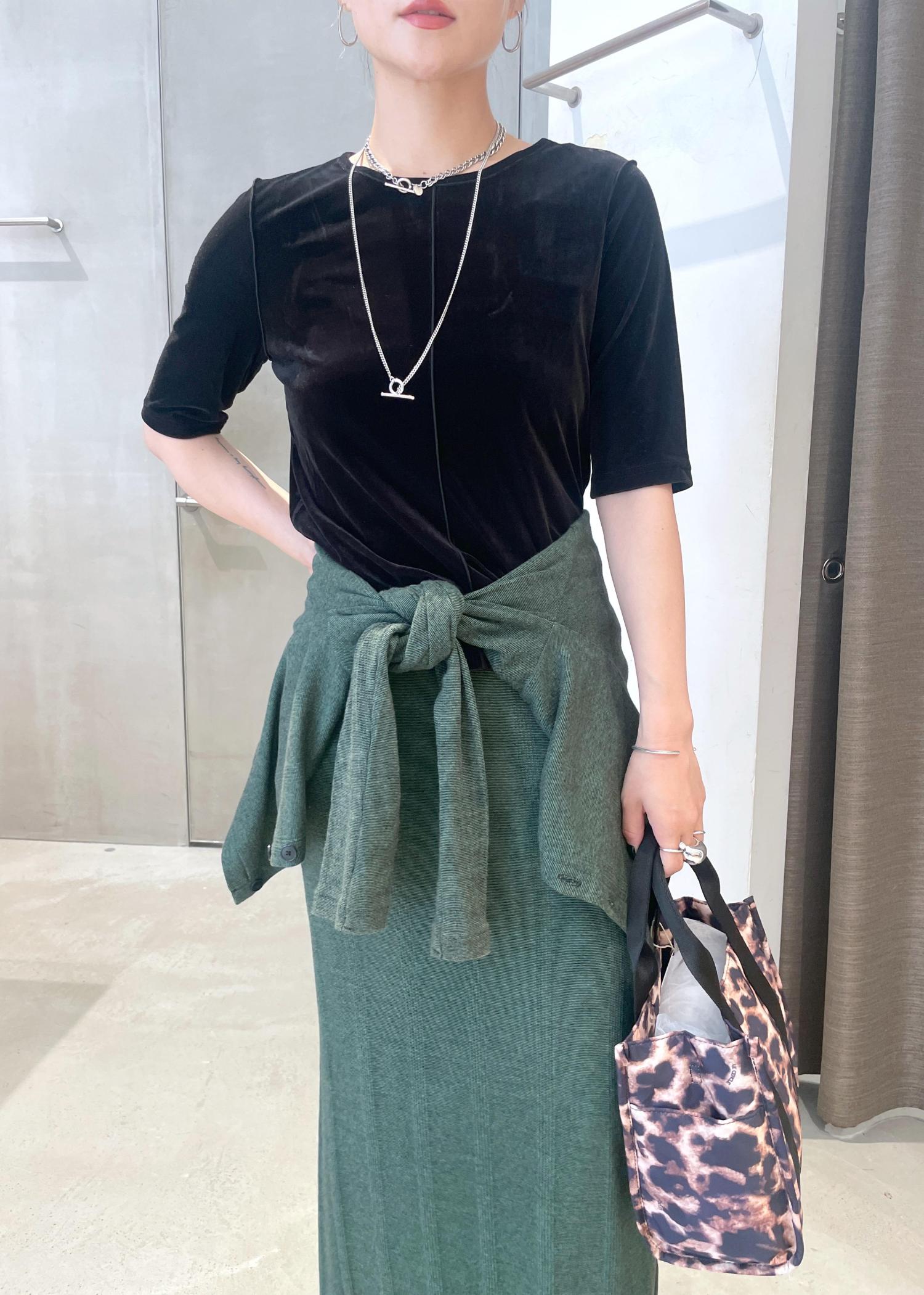 ウォーム感を感じるベロア素材が一気にコーディネートを秋色にしてくれます◎秋に差し掛かる少し暑い時期からお召しいただけて、涼しい時期にはインナーとしてジャケット羽織などがおすすめです。