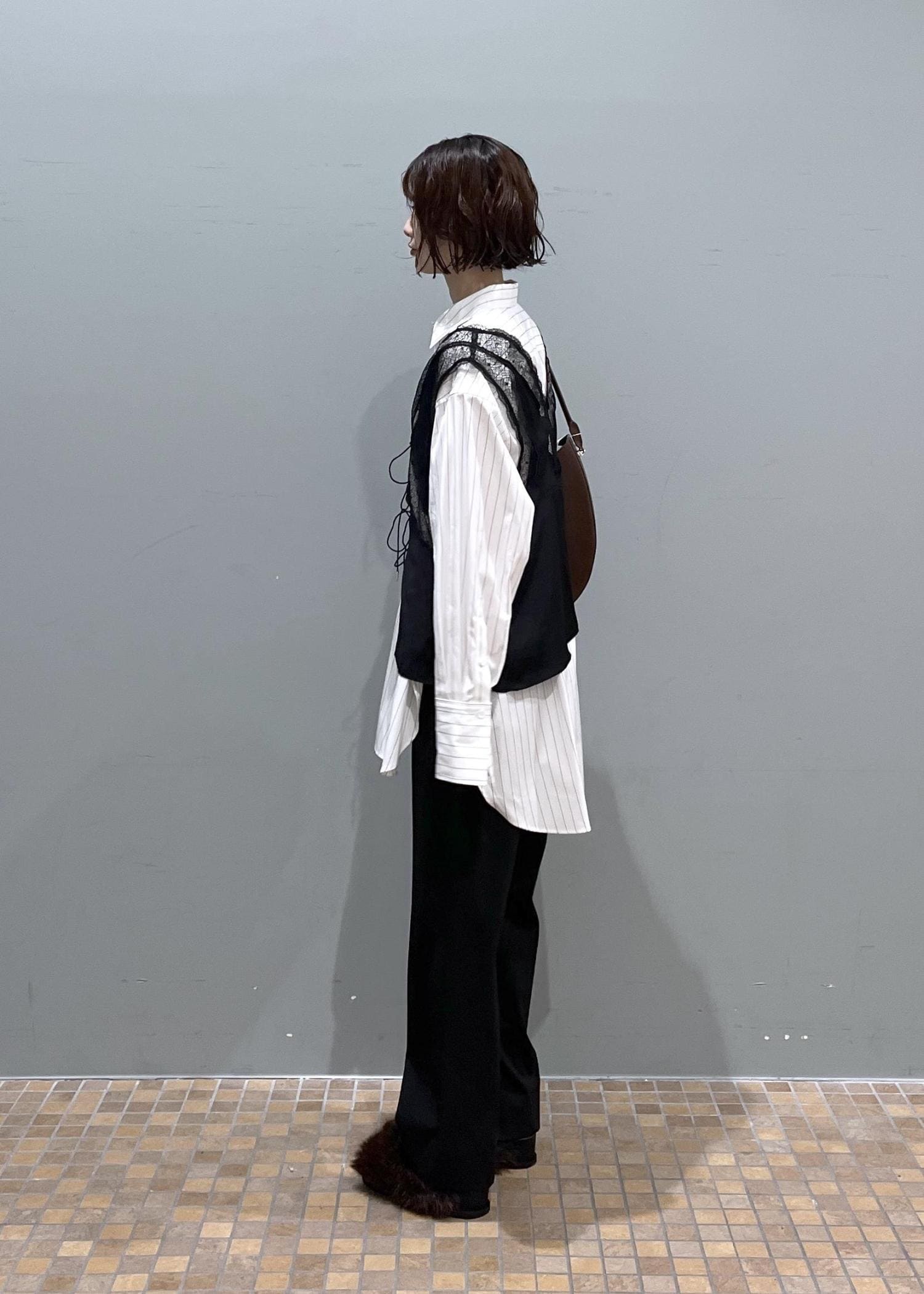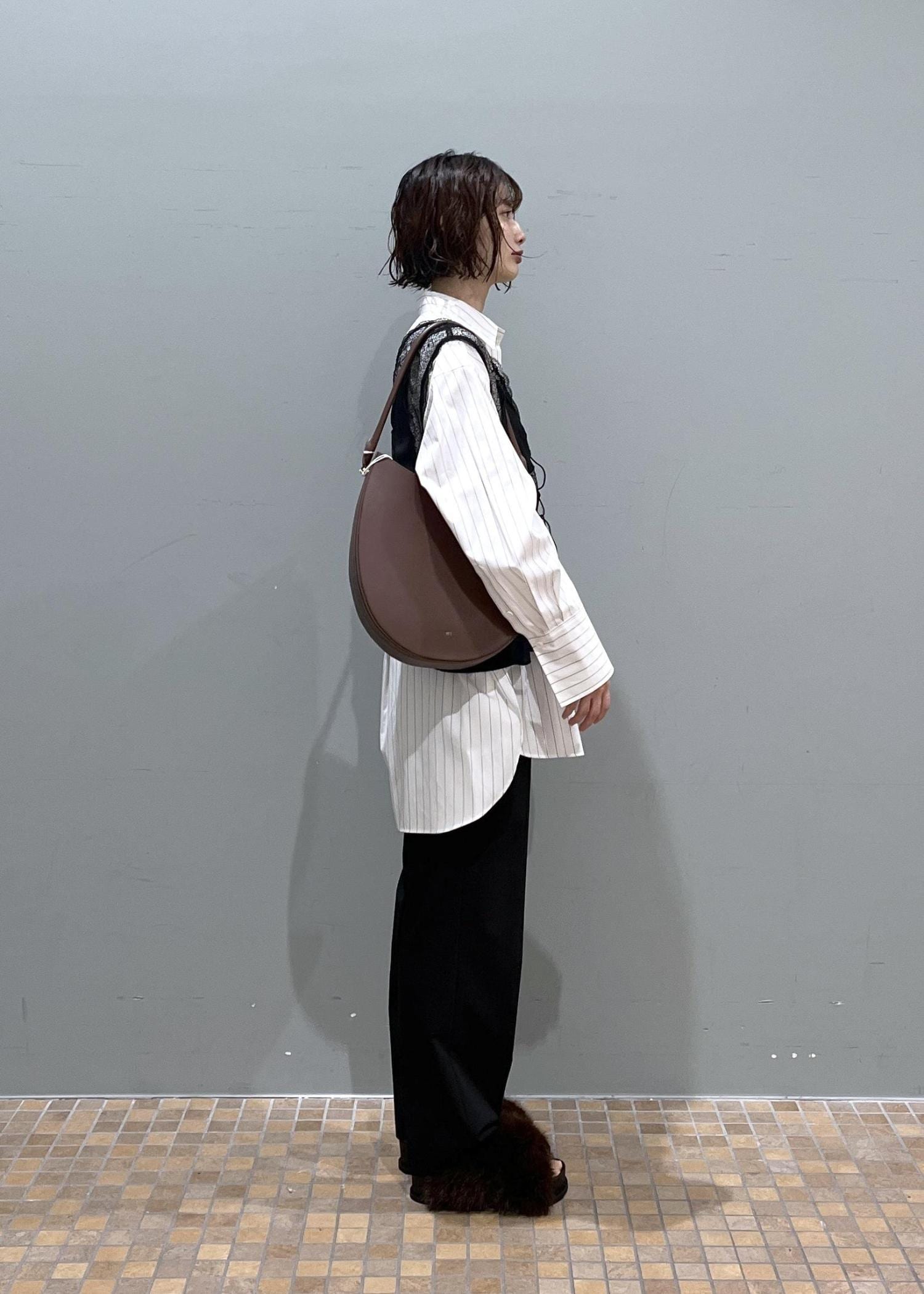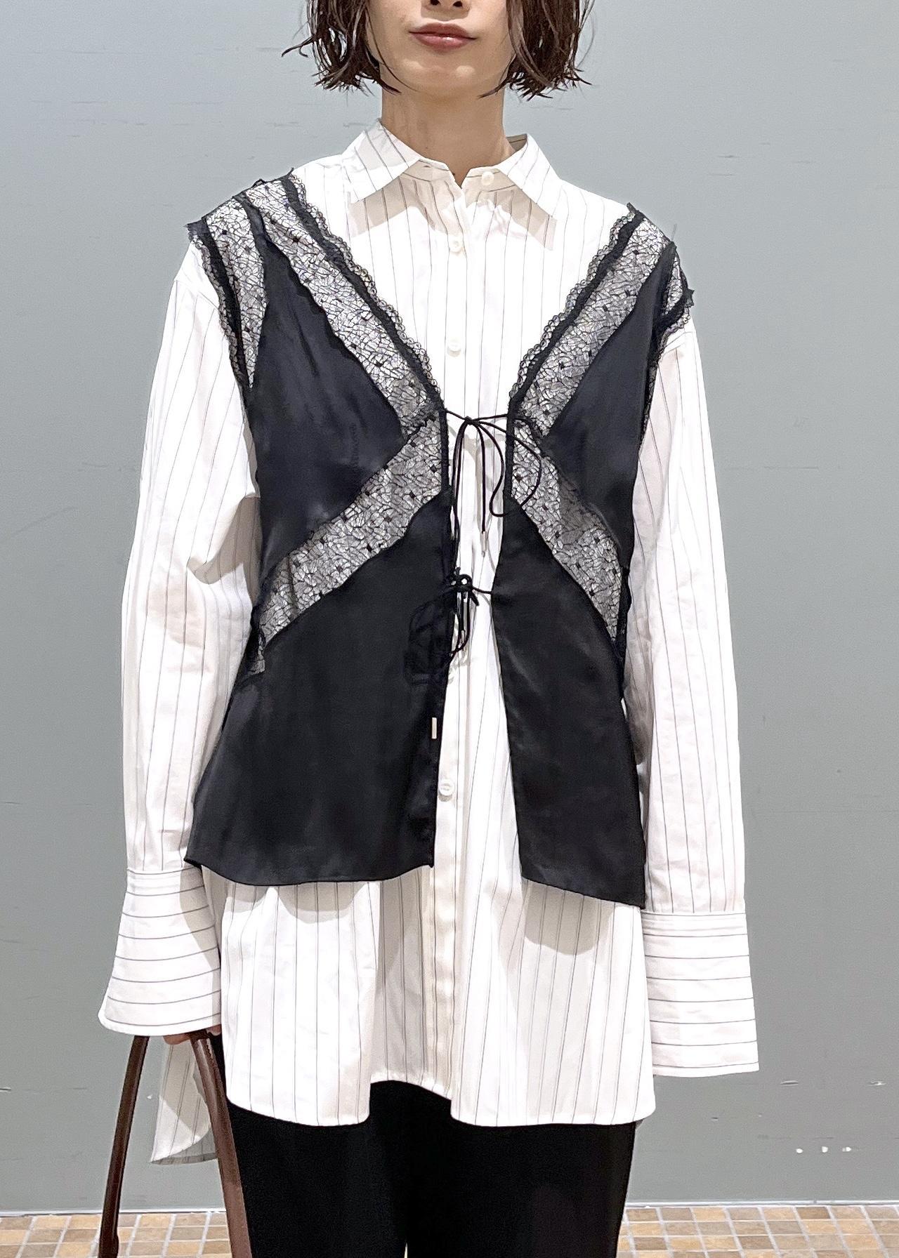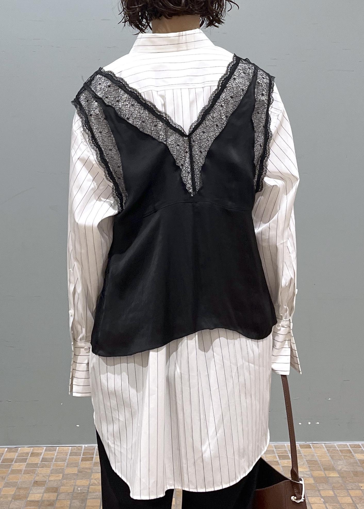 オーバーサイズのシャツだとメンズライクに寄ってしまうことがありますが、レイヤードなどをしたりサテン生地やレース生地のものと合わせると一気にフェミニンに着こなせるのでおすすめです!♡
