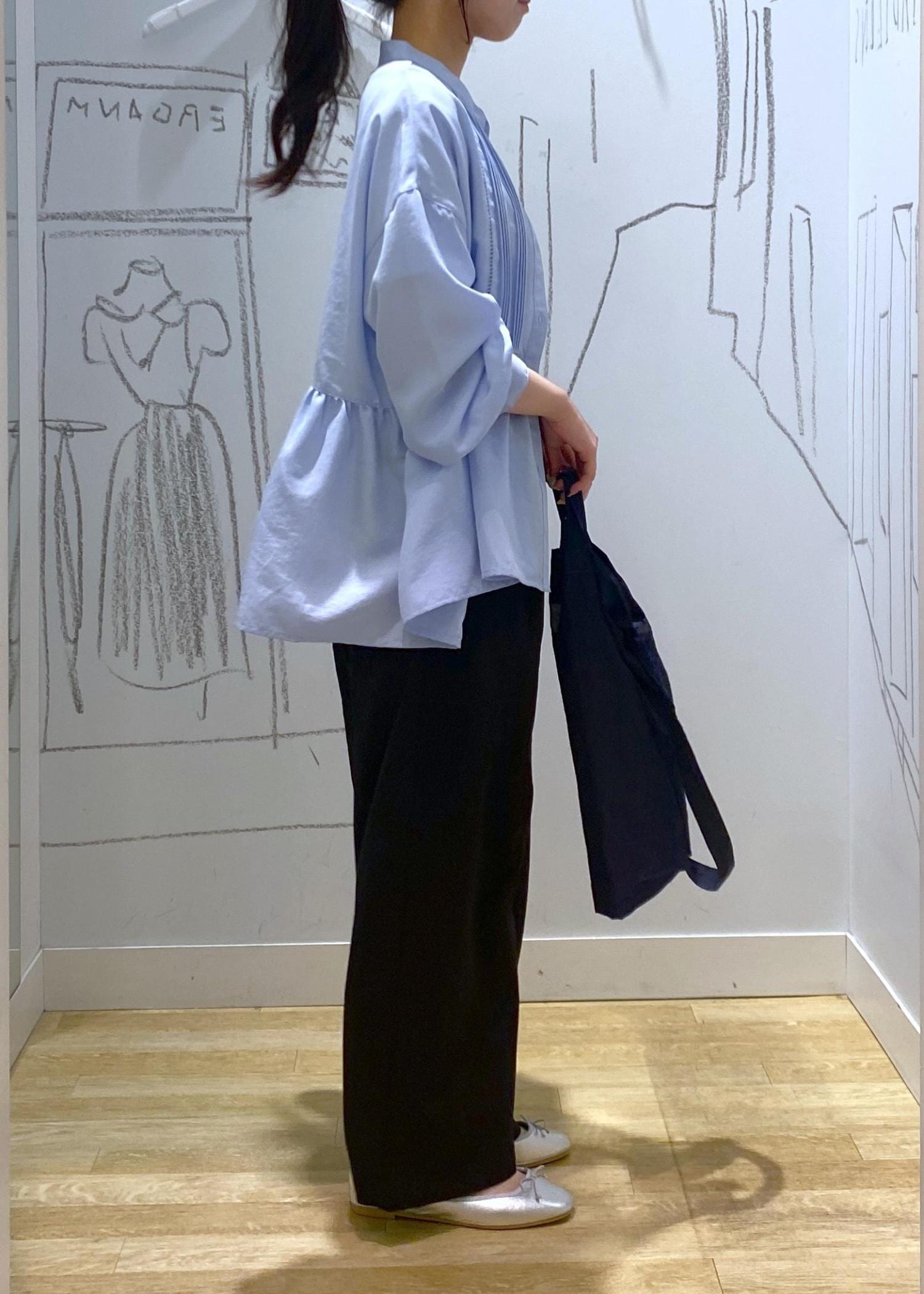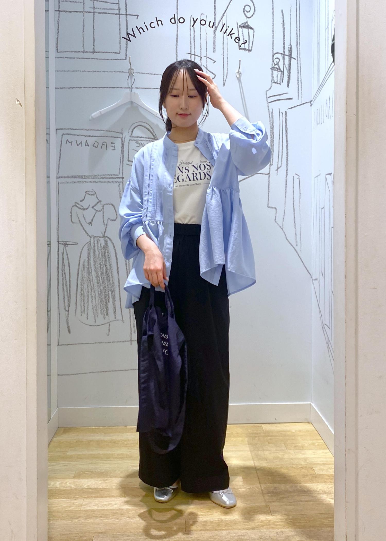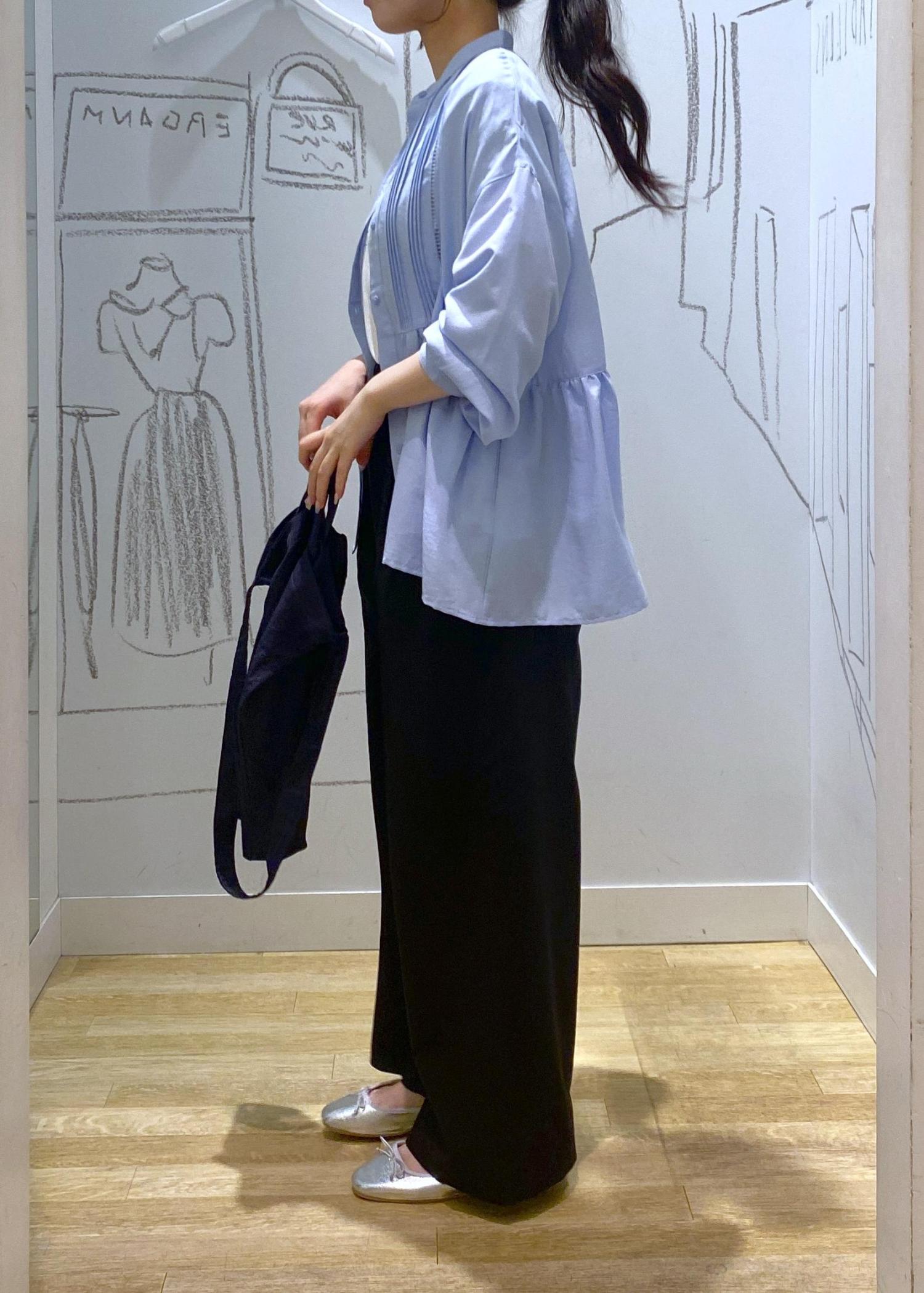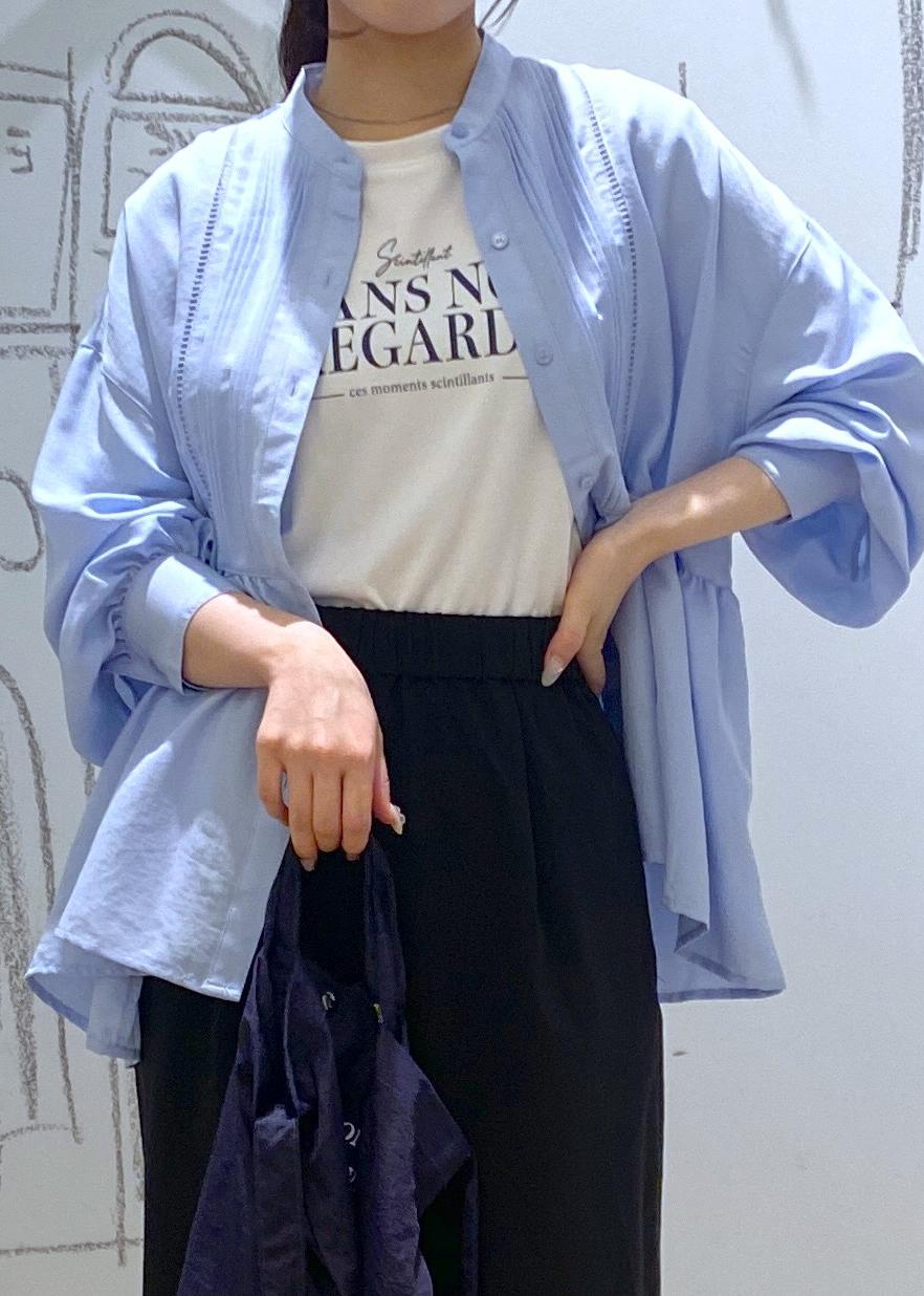 ペプラムシャツを羽織として着用しました。まだまだ暑い日が続いているので、半袖の上から冷房や紫外線対策として羽織りスタイルがおすすめです。