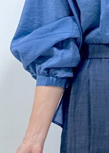 ボリューム袖のデザインで袖口にゴムが入っているので、袖を上げても落ちてこないです。インナーとしても、1枚着や羽織としても着回せる万能アイテムです。 -