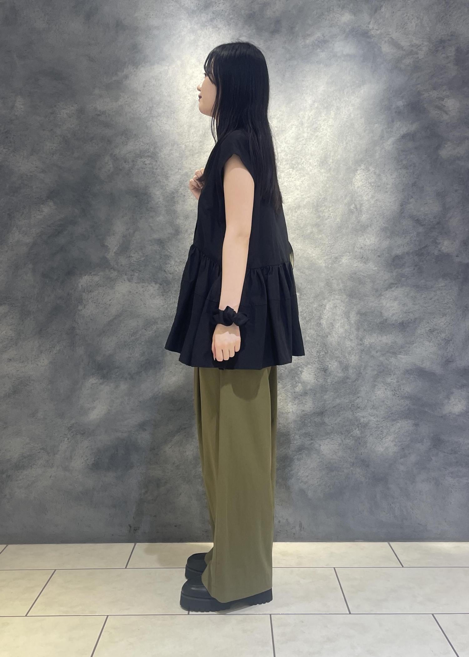 甘めなデザインなので黒を着用し、スラックスで少し大人らしさをプラスしてみました☺︎