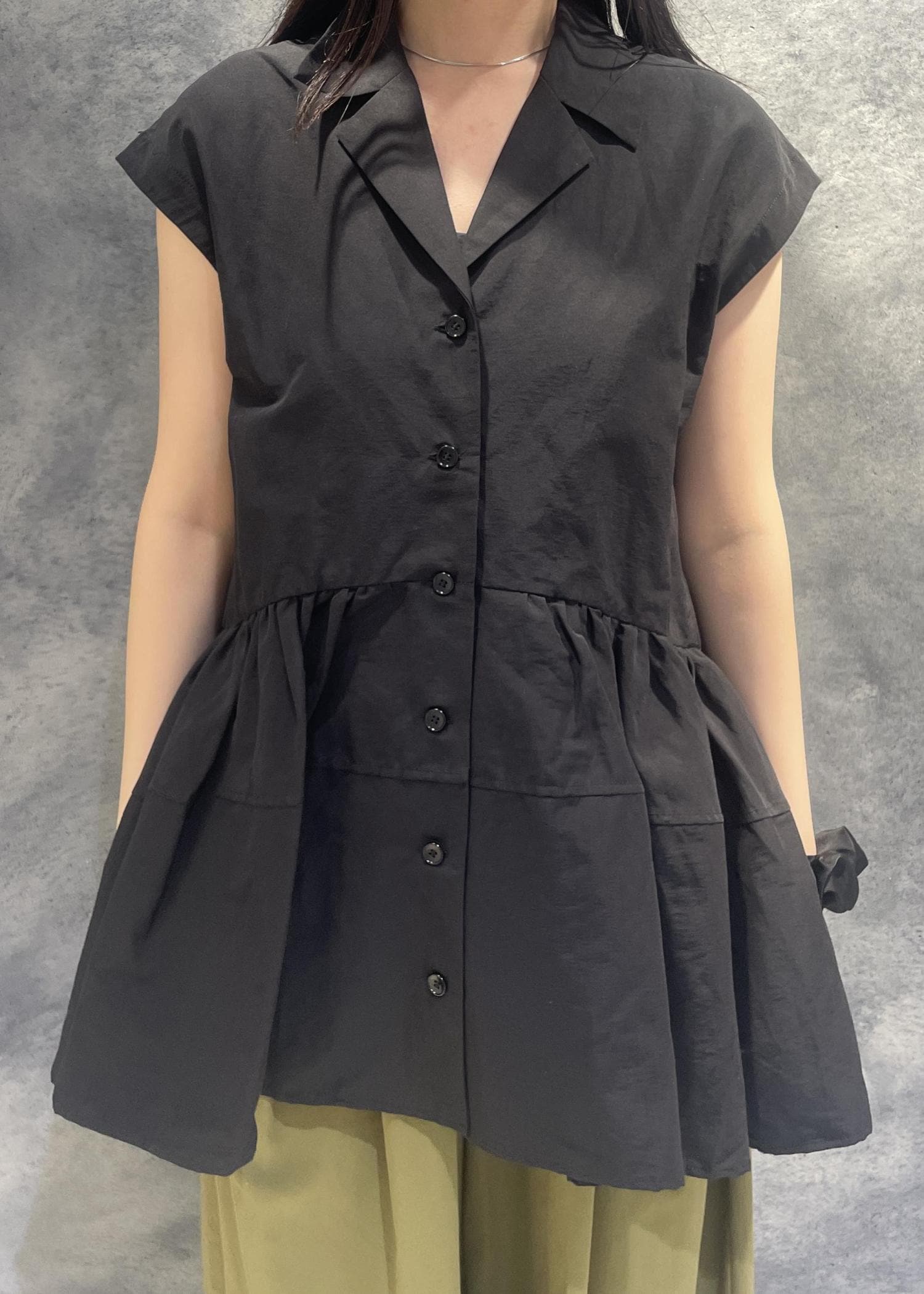 アウトレットADAM ET ROPÉ FEMME【サステナブル】オープンカラーペプラムシャツブラック / F¥6,380レビューゆったりシルエットで、ヒップまで隠れる丈感です。