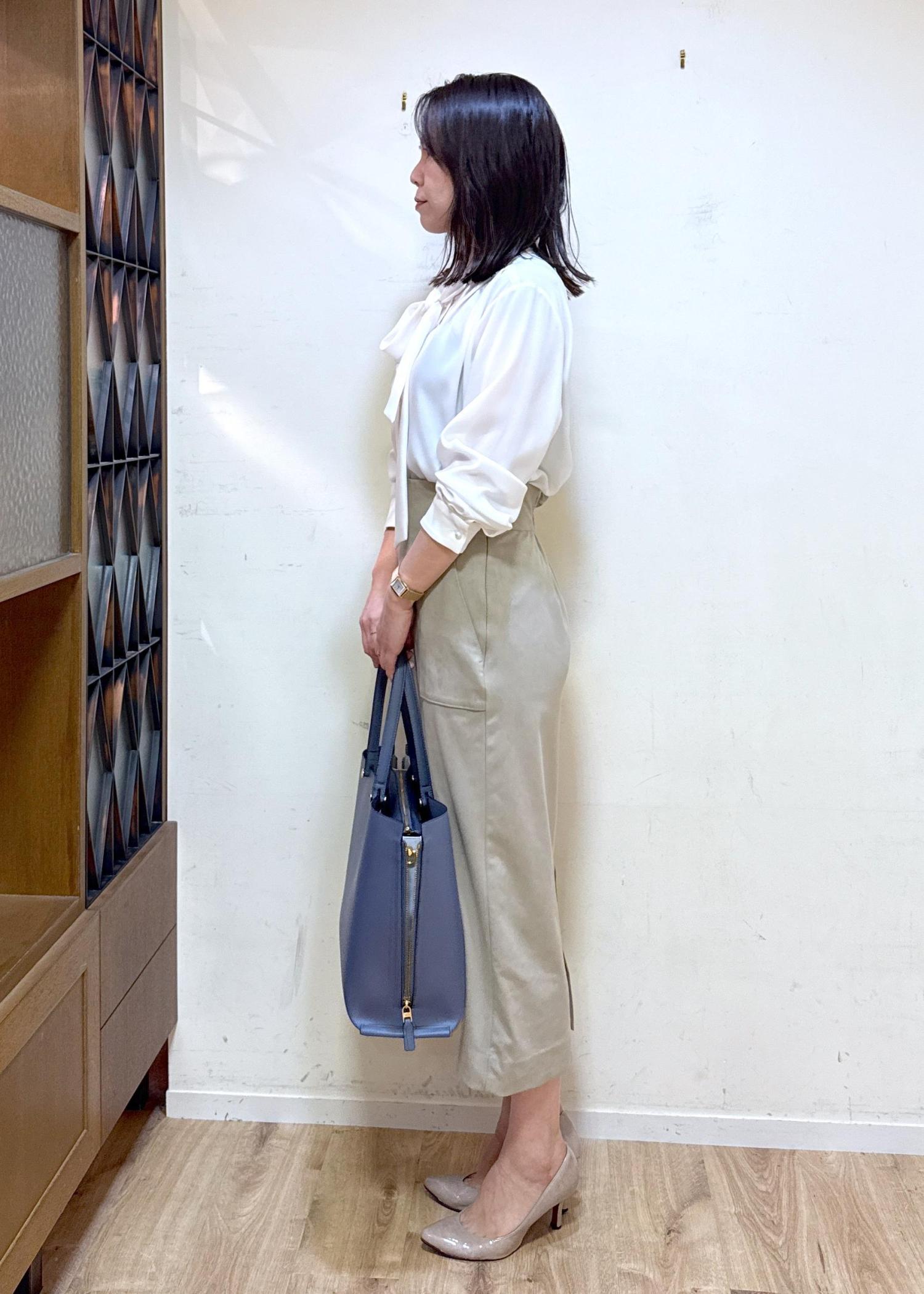 ボウタイブラウスとタイトスカートの定番アイテムのコーディネート♡