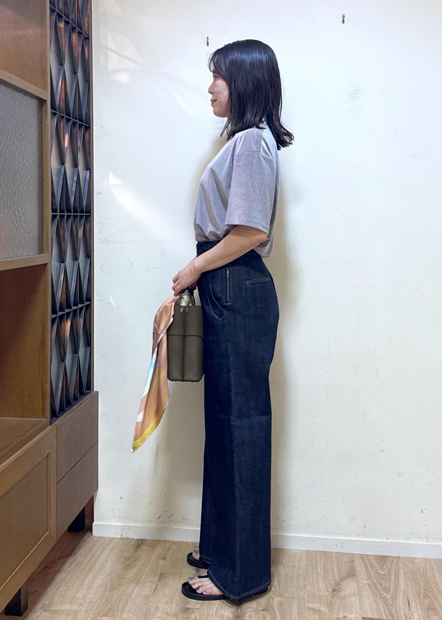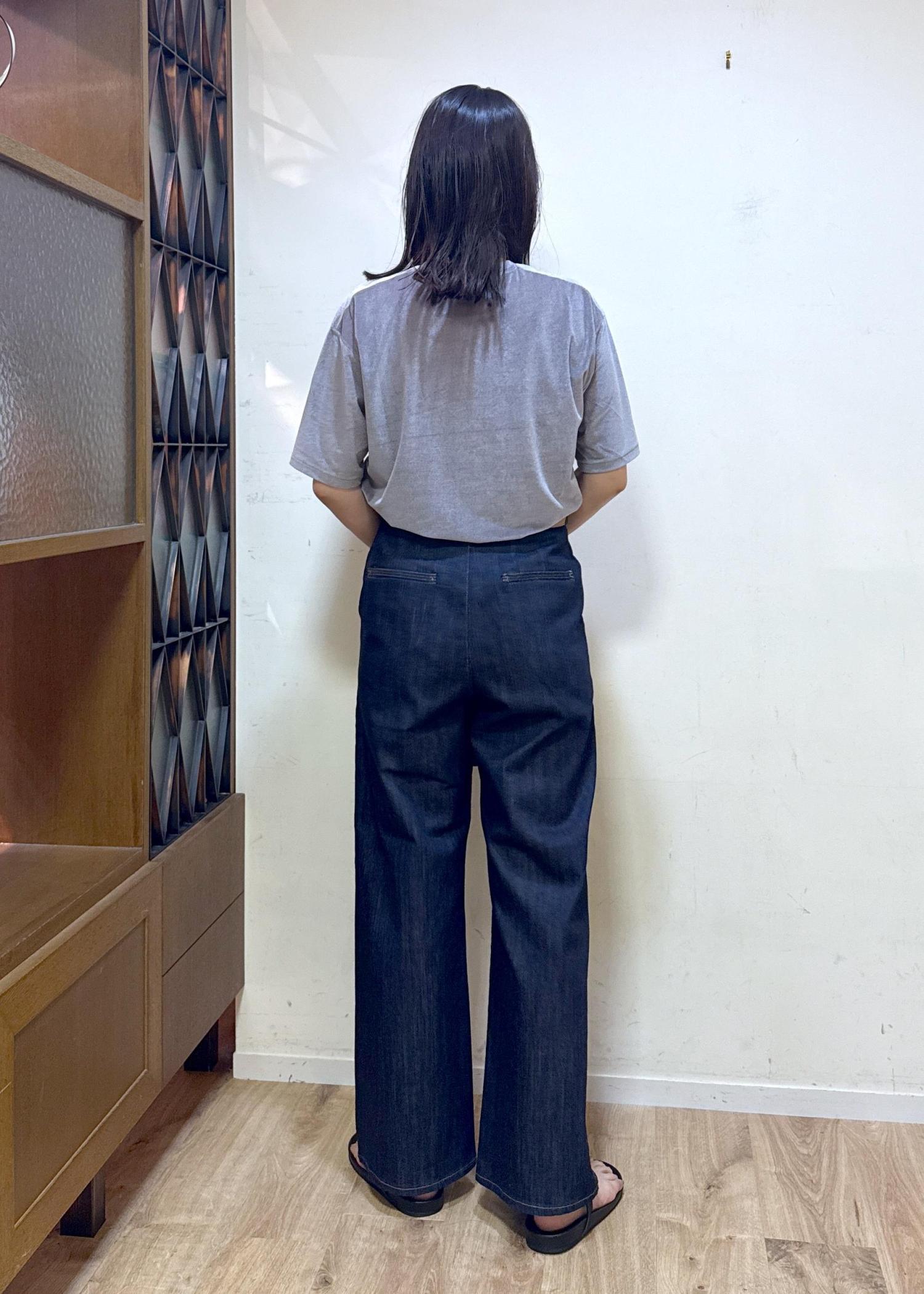 ワイドのように見えますが、履くとスッキリして綺麗めにコーディネートができるデニムパンツです。