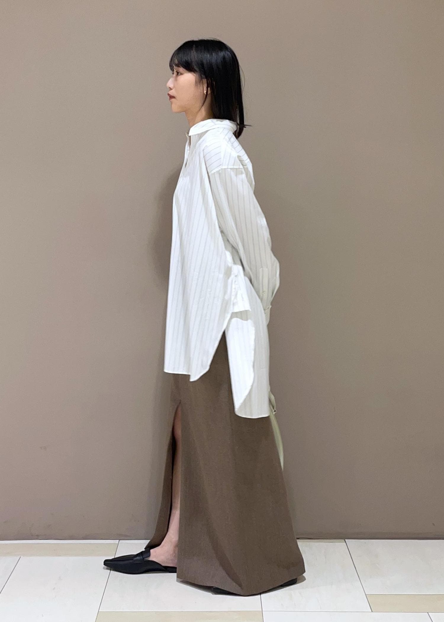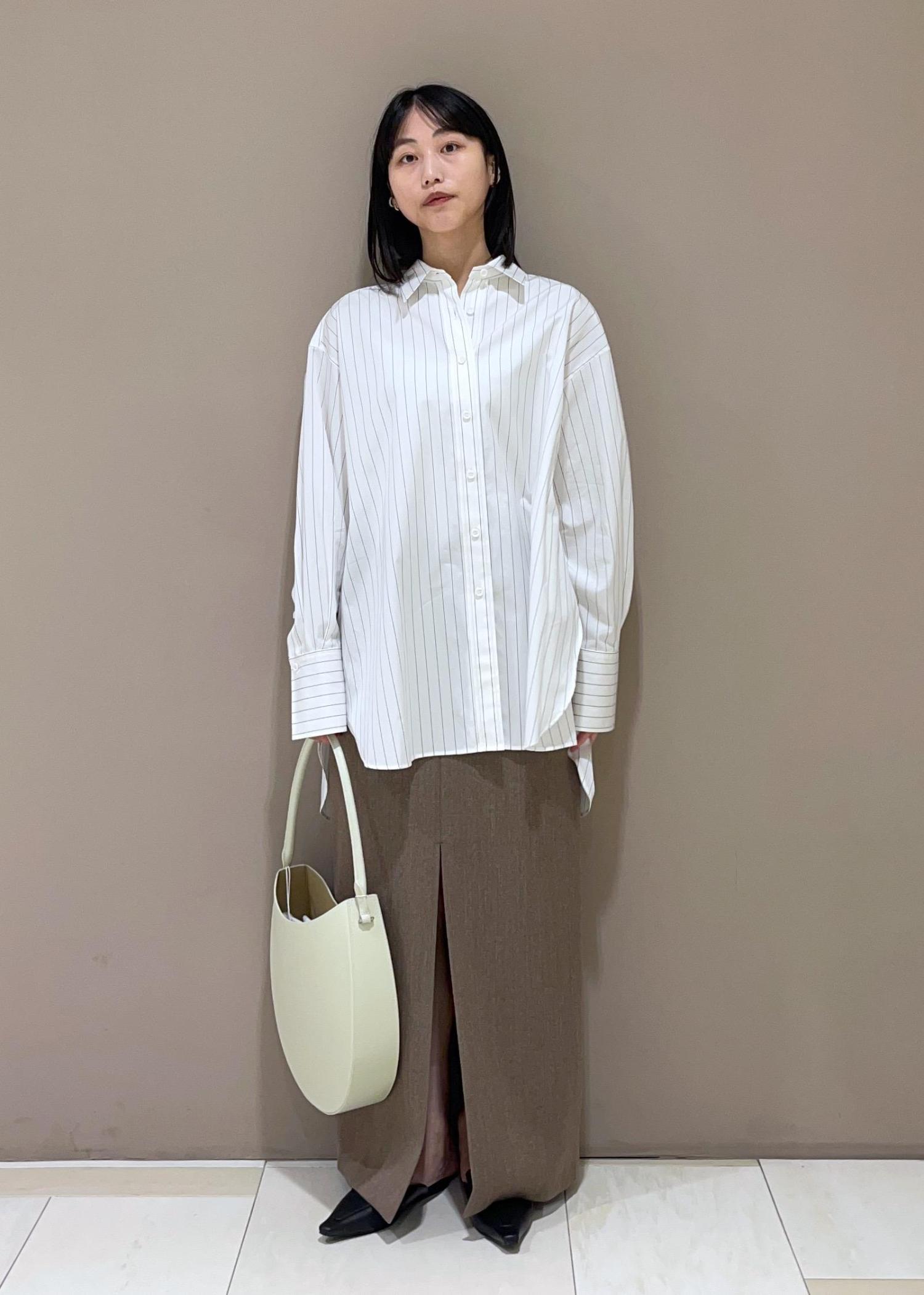 EMOELLE【EMOELLE】オーバーサイズシャツホワイト系 / F¥29,700レビュー着丈しっかり長めですが、膨らみすぎないサイジングが嬉しいシャツです◎サイドから見た形も綺麗です。