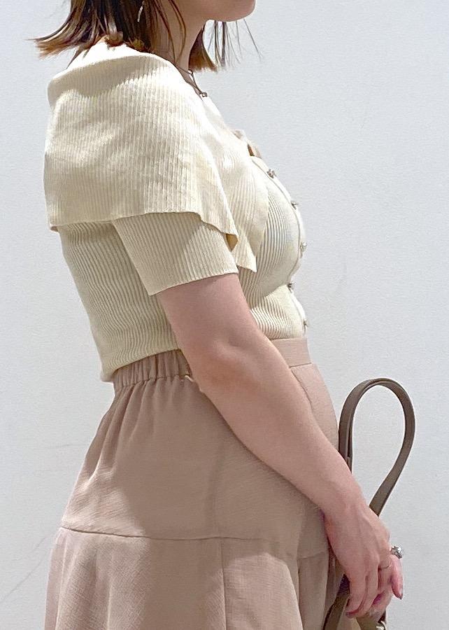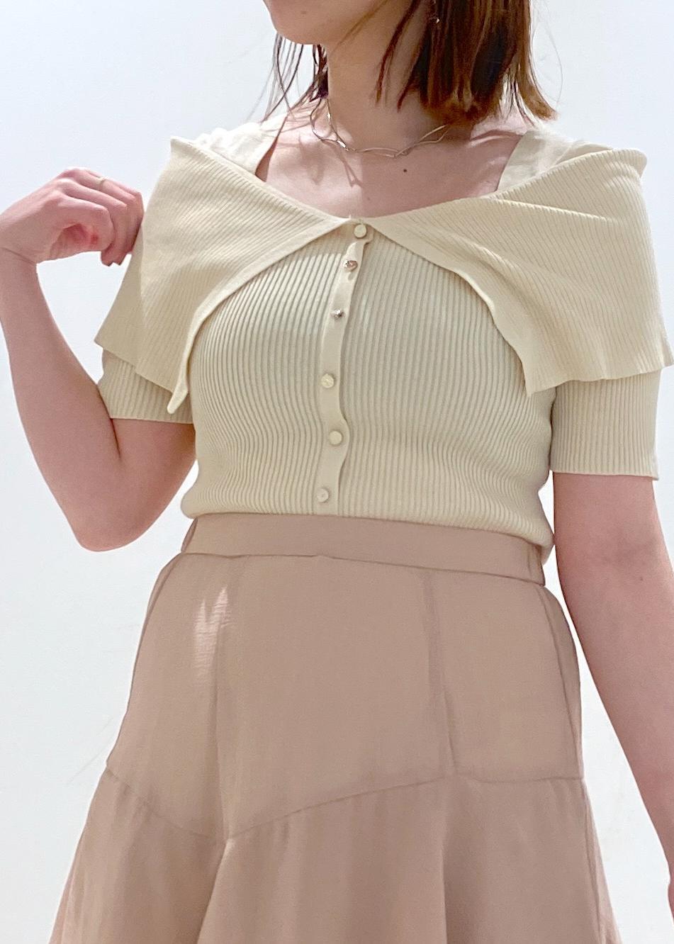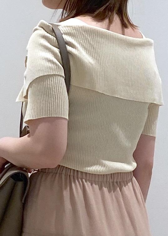 VISビックカラーオフショルハーフスリーブニットベージュ / F¥2,963レビュー少し大きめな衿が特徴のオフショルニットです!