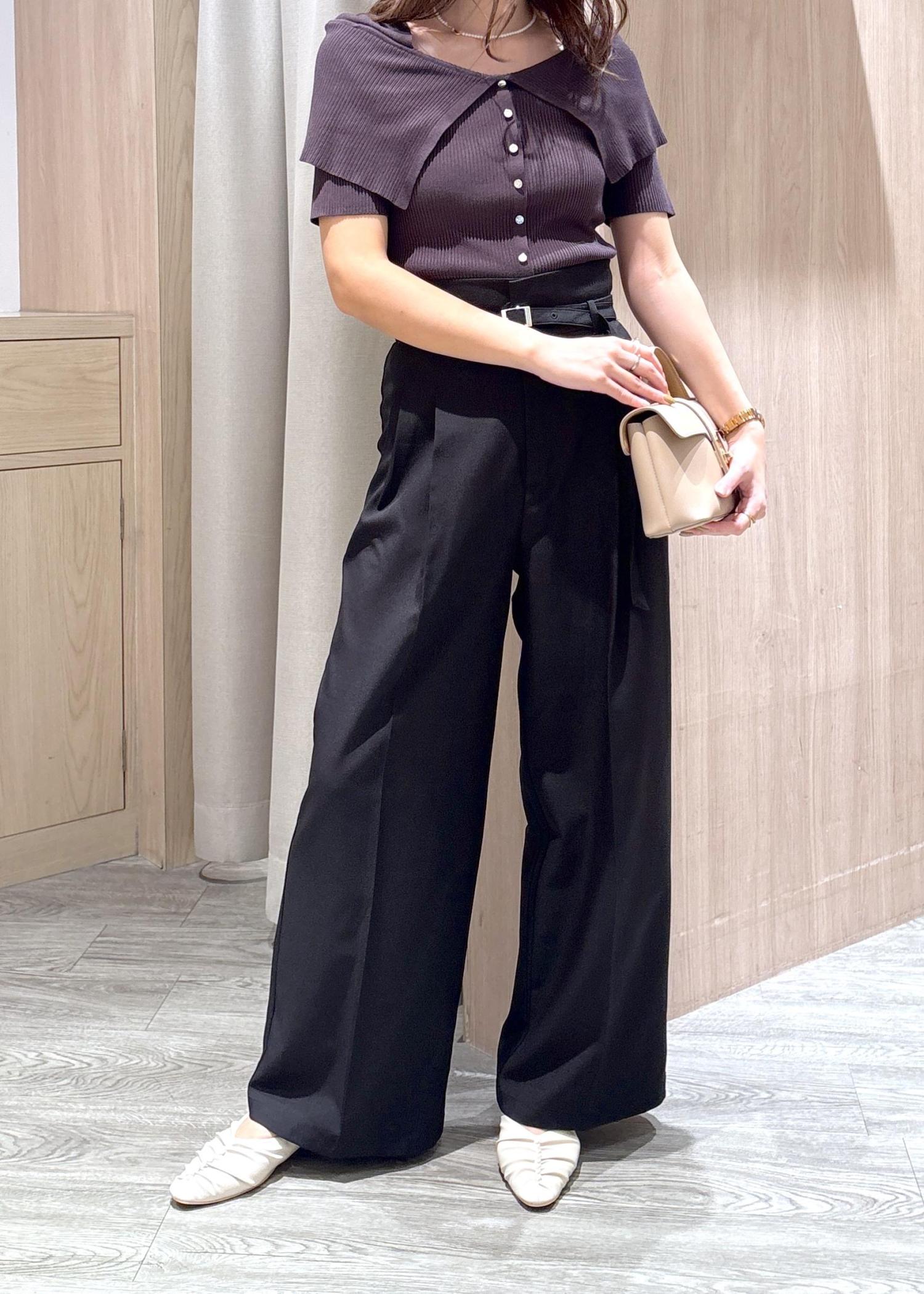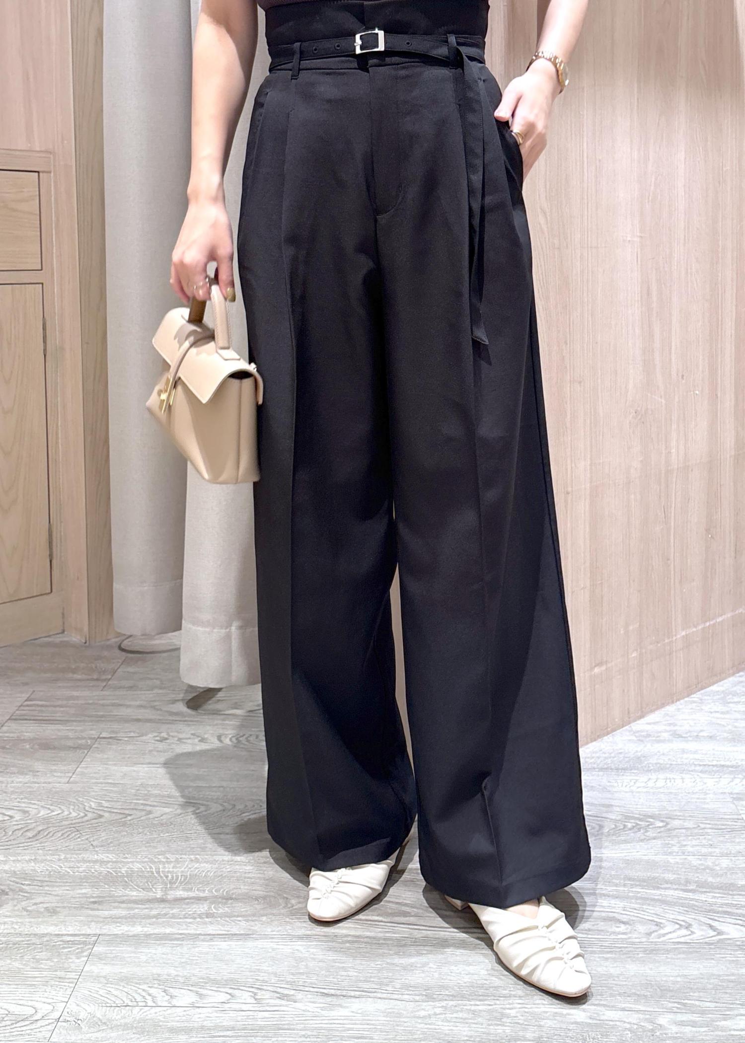 人気のワイドパンツはハイウエストなのでスタイルアップ効果抜群です。