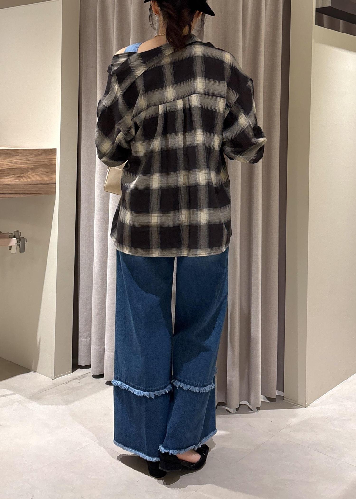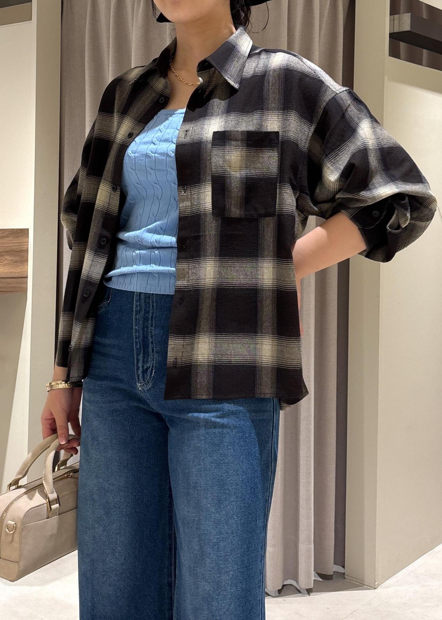 VISオンブレチェックオーバーシャツブラック系 / F¥6,589レビュー165cmでお尻がほぼ隠れる丈感で、ゆとりがあります!前は後ろに比べると少し短めです。
