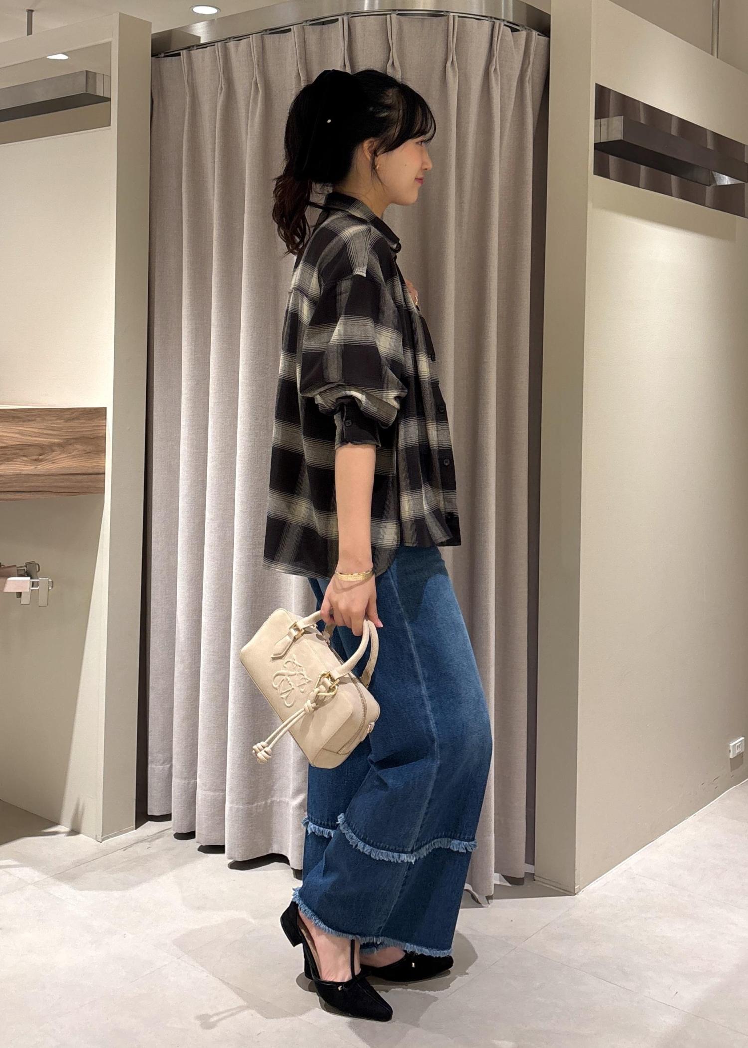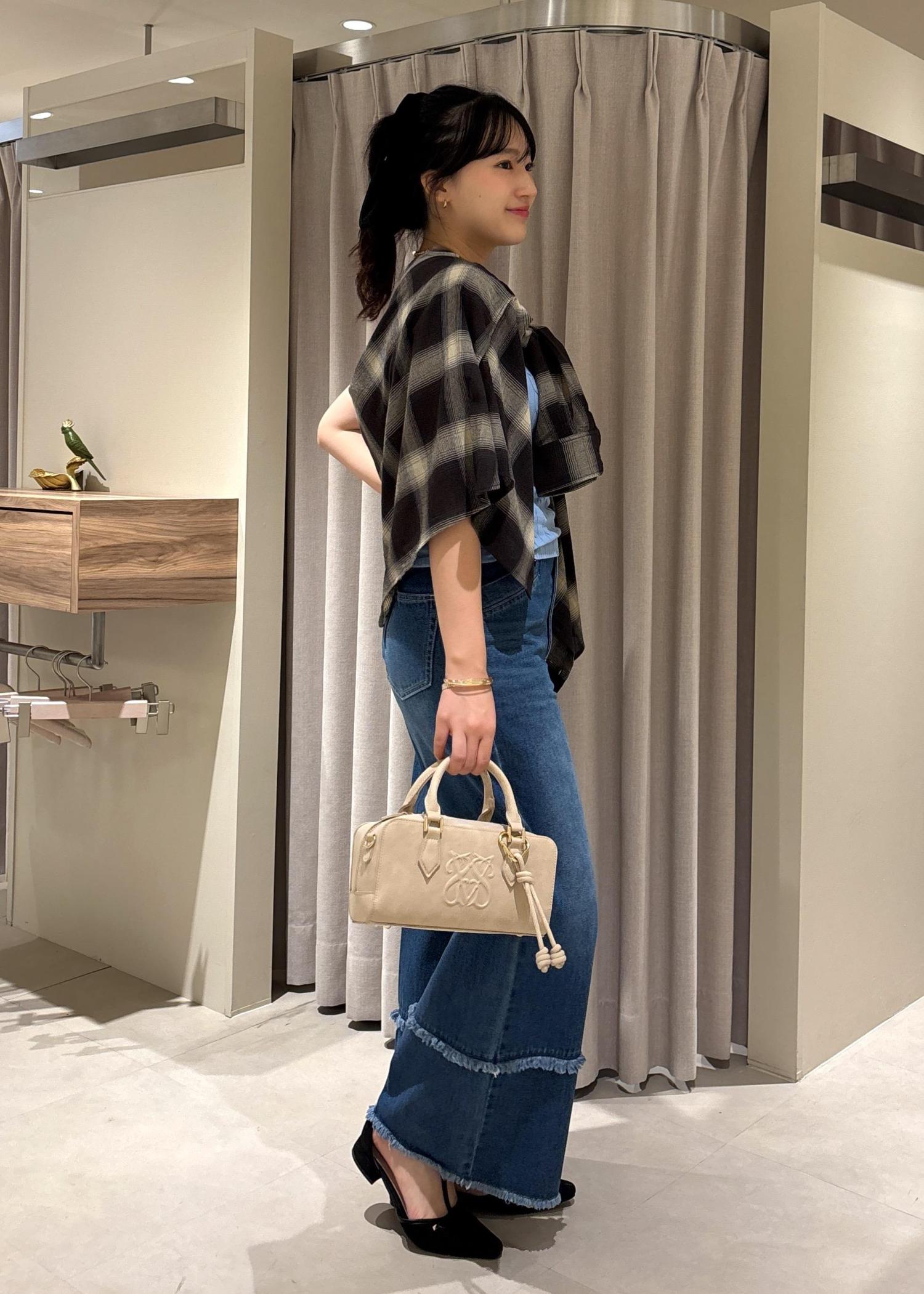 調節できるショルダーつきなので、スタイリングに合わせて斜め掛けも出来ます!
