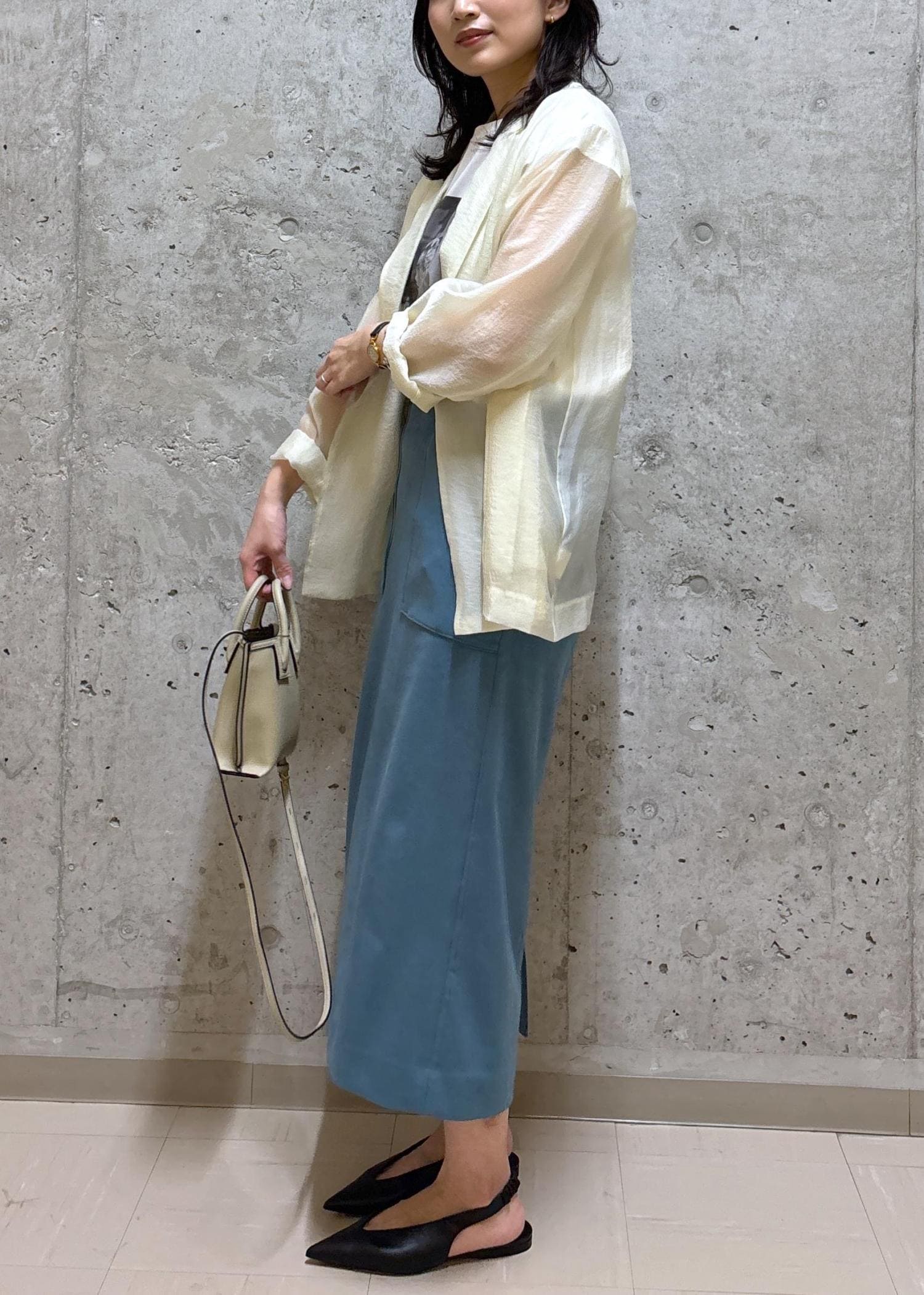 ROPÉ[美人スカート]スエードポケット付きタイトスカート/イージーケアブルー / 38¥25,300レビュー身長164㎝、ボトムは普段38サイズを着用。