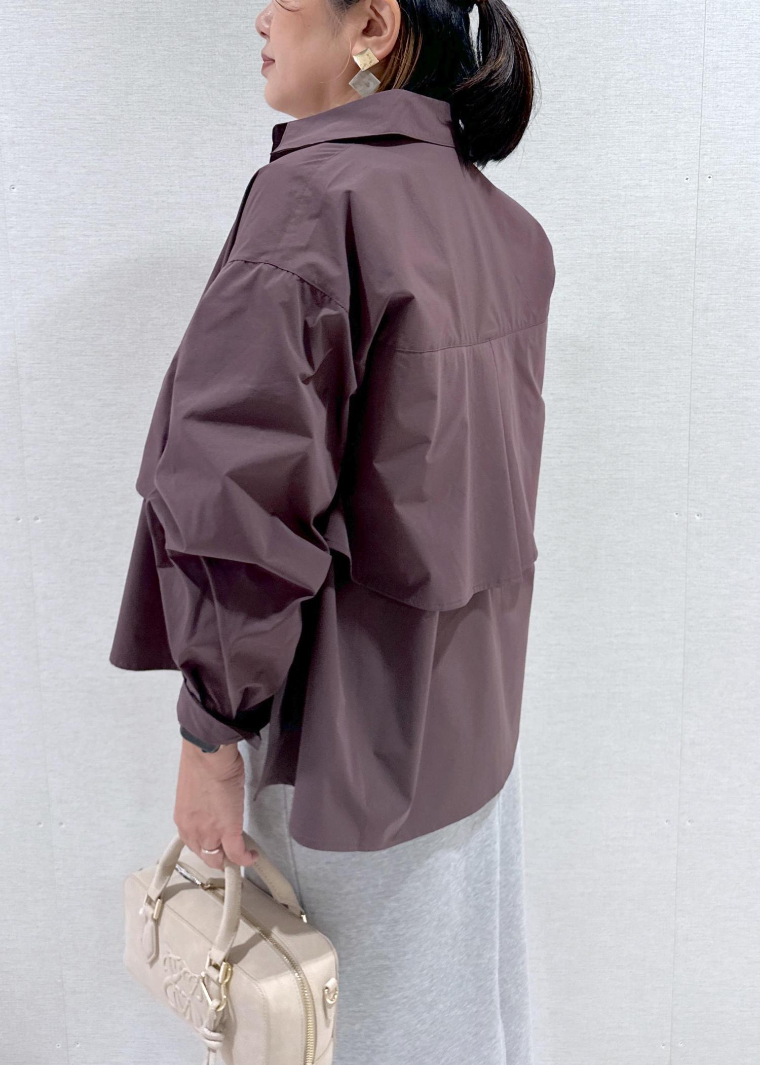 VIS裾ティアードオーバーシャツ/UVケア・イージーケアダークブラウン / F¥3,557レビューオーバーサイズなのに大きく見えないの不思議なシャツ♪開けても閉じても可愛い!