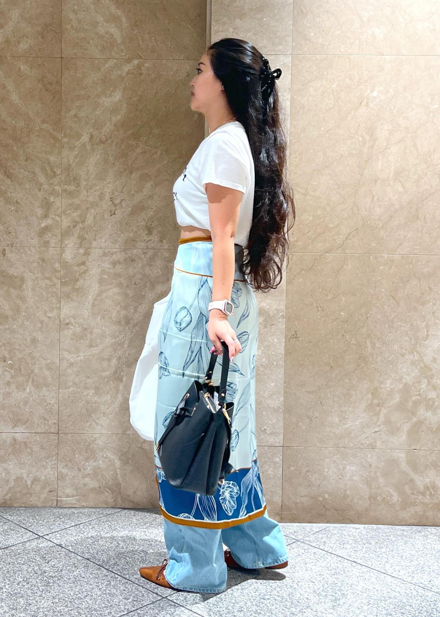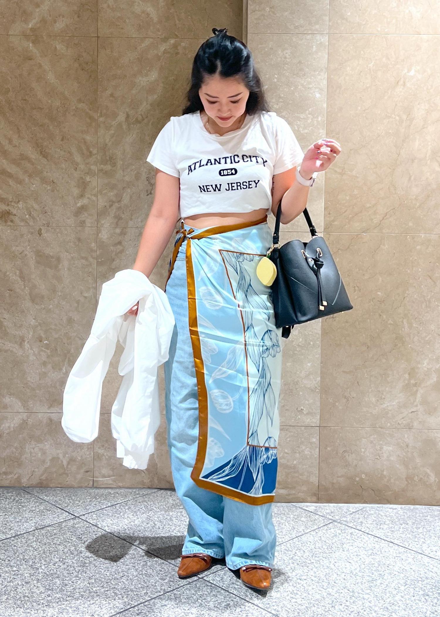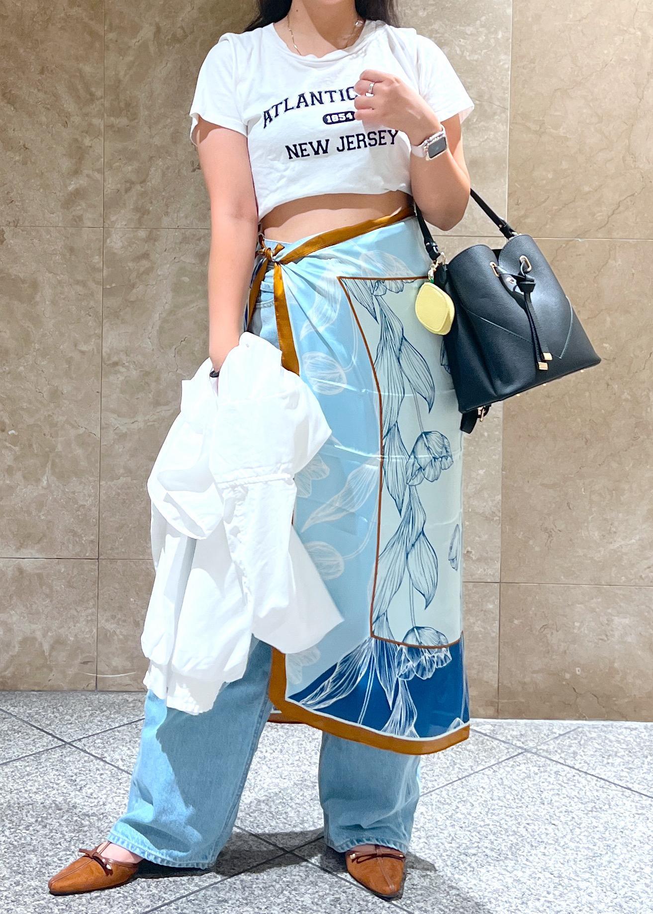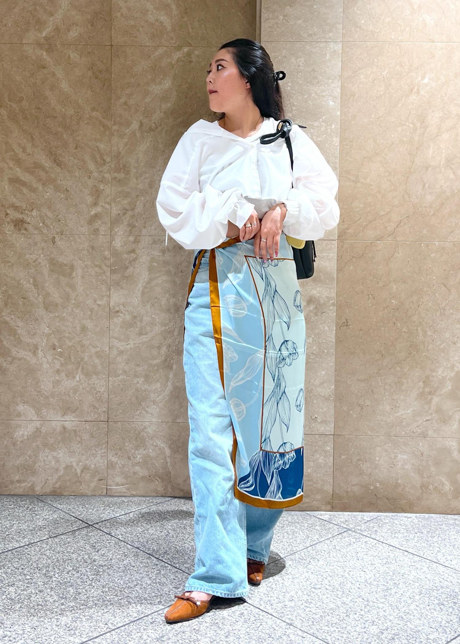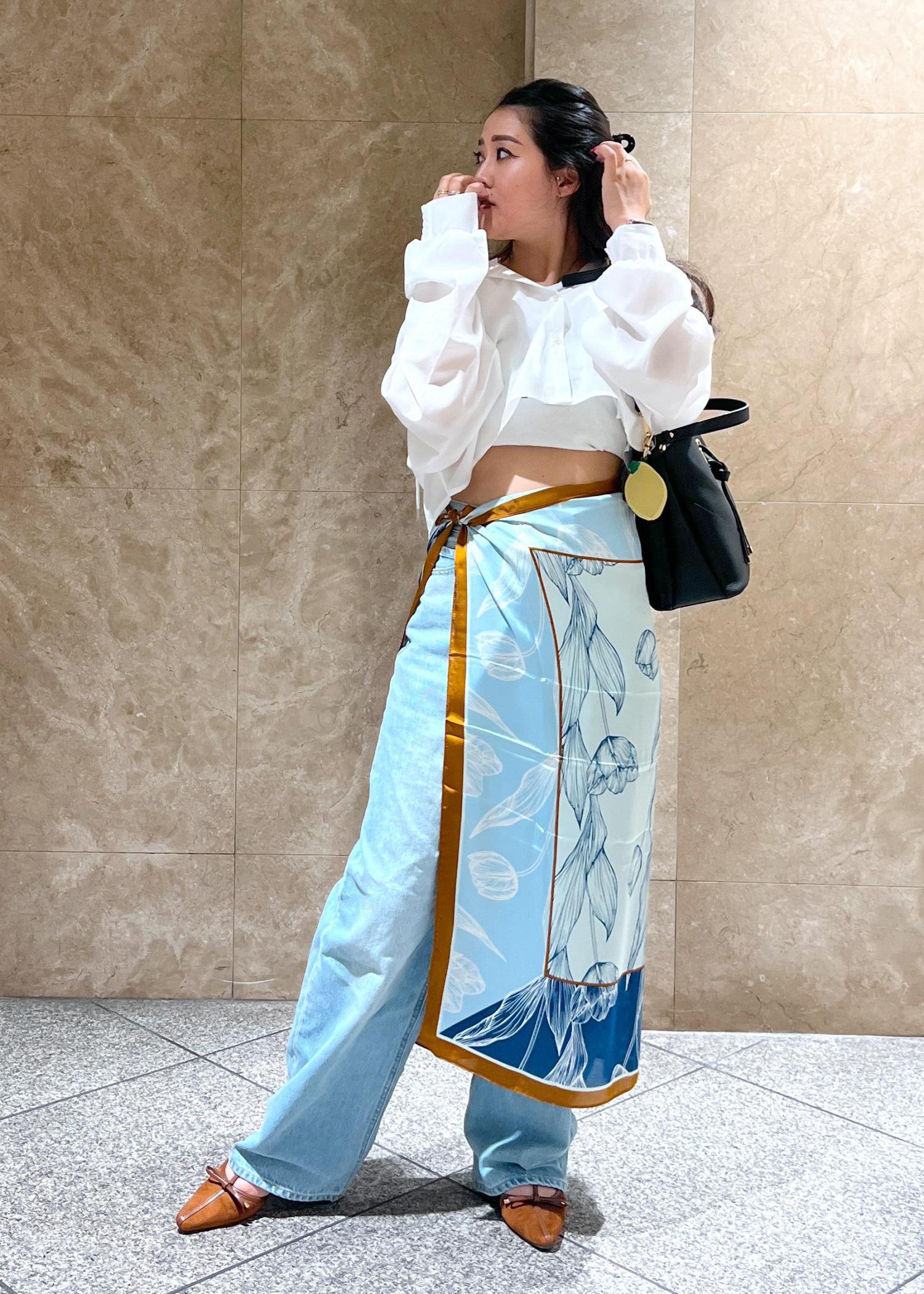 私は骨格ストレートなので、クロップドシャツと合わせるのが好きですが、スカート合わせで下からデニムを見せるのもとても可愛かったです(*´`) -
