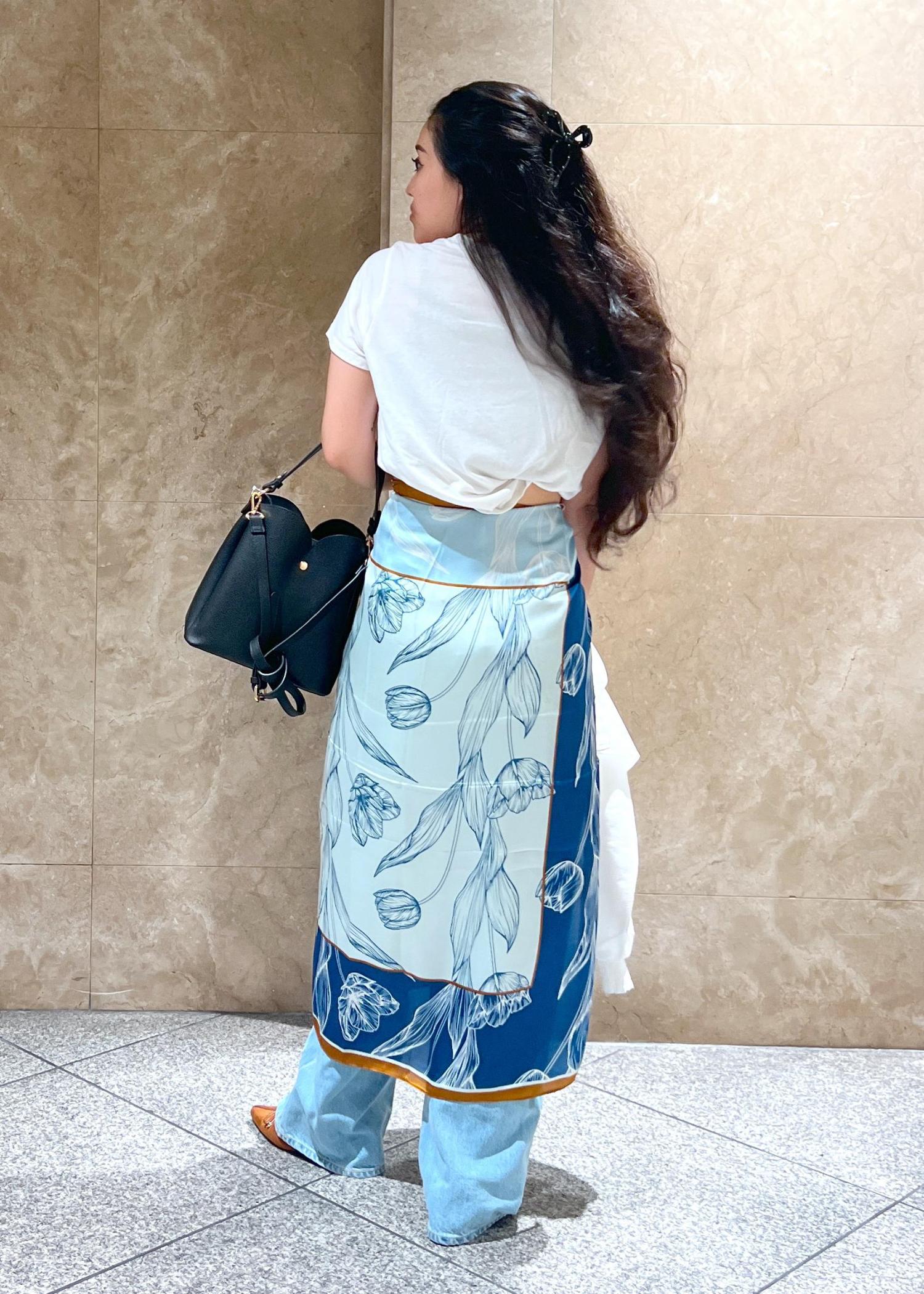 VISチューリップ柄スカーフ90×90cmブルー系 / F¥2,189レビュー大きめのスカーフ、こういうの何枚あっても良いですよね、、、(՞˶・֊・˶՞)