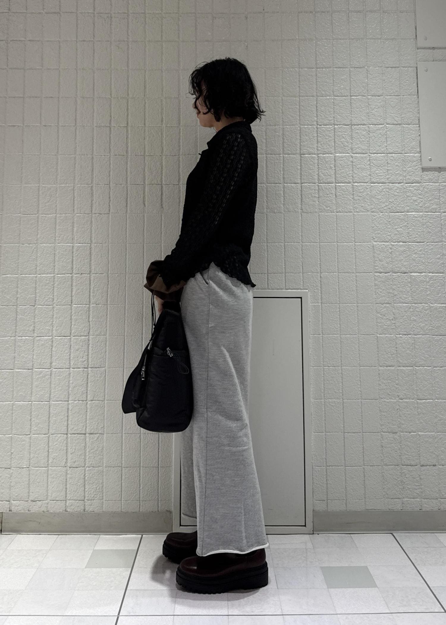 少し厚みのあるしっかりしたスエット素材ですが、軽くてウエストもゴムなのでとても楽な履き心地です。