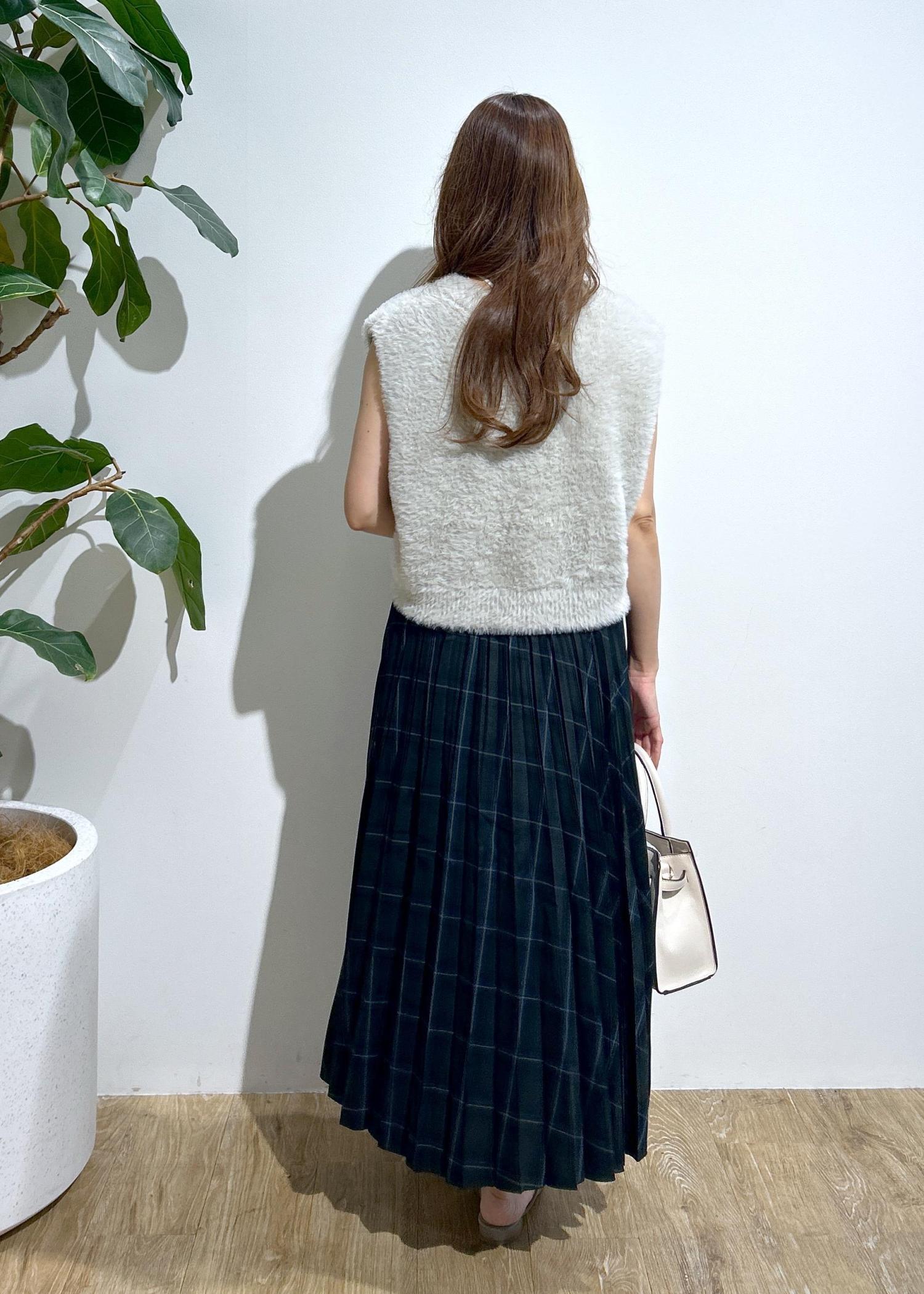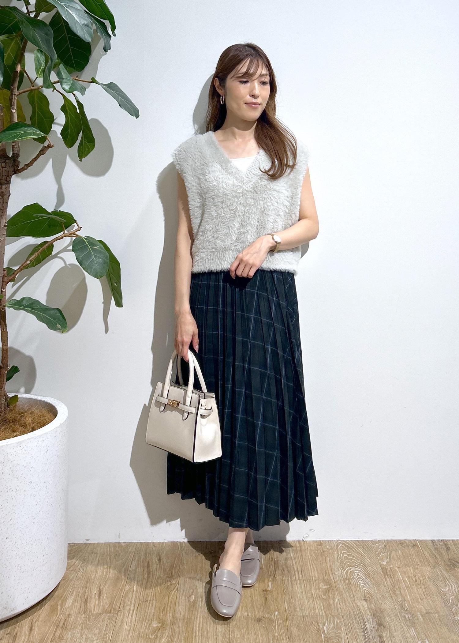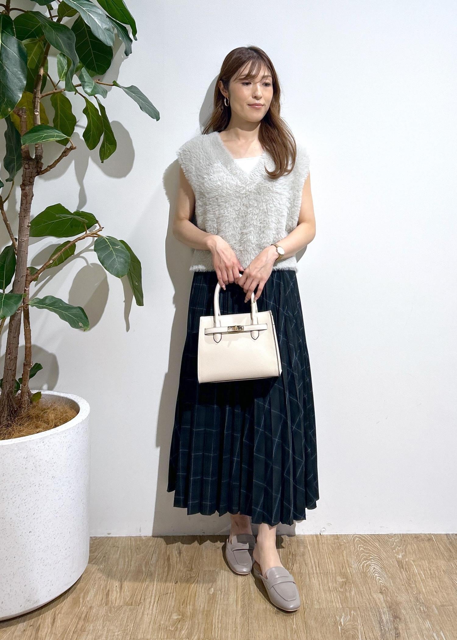 チェックスカート×ファーベストの秋にオススメなコーディネートです。