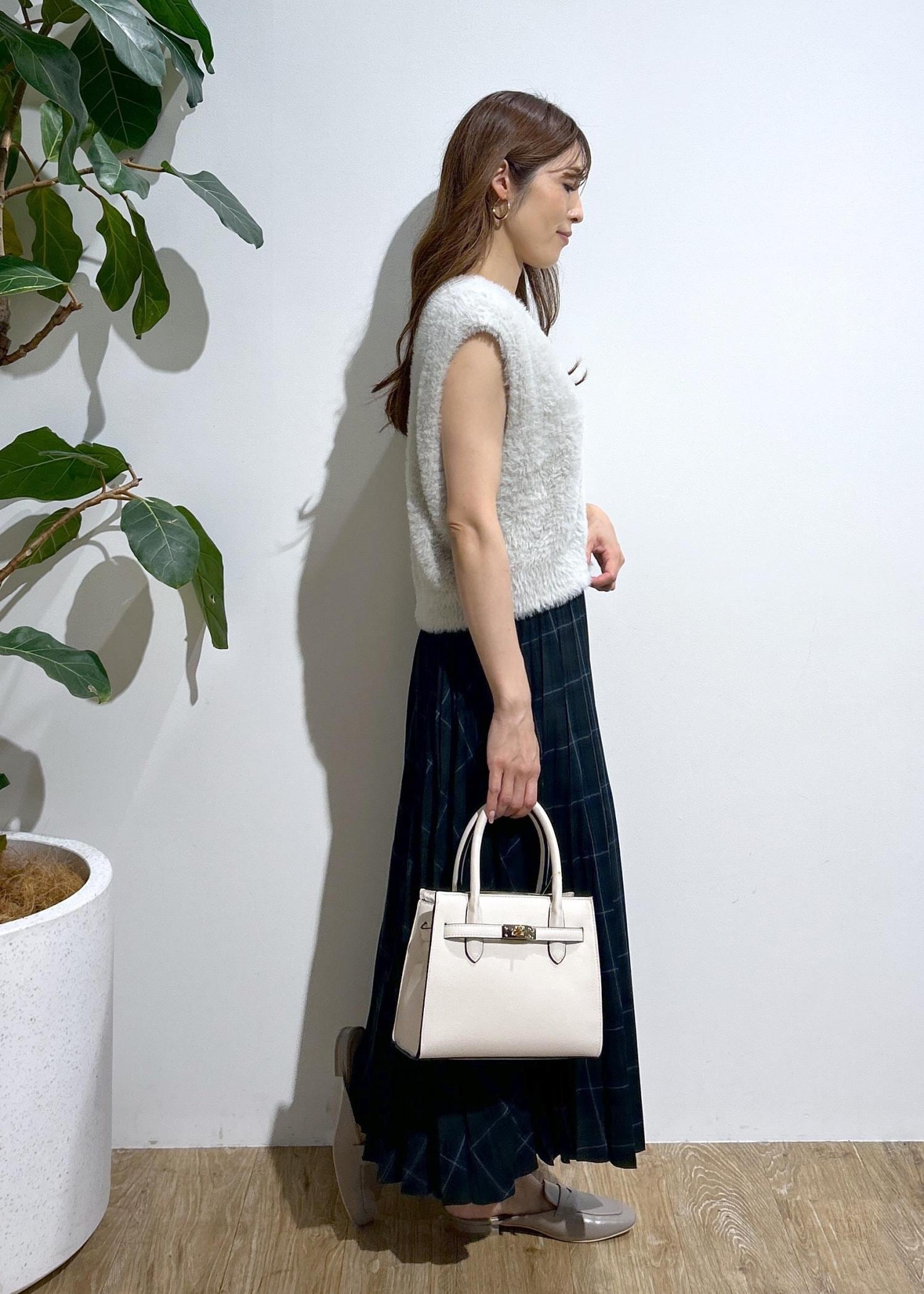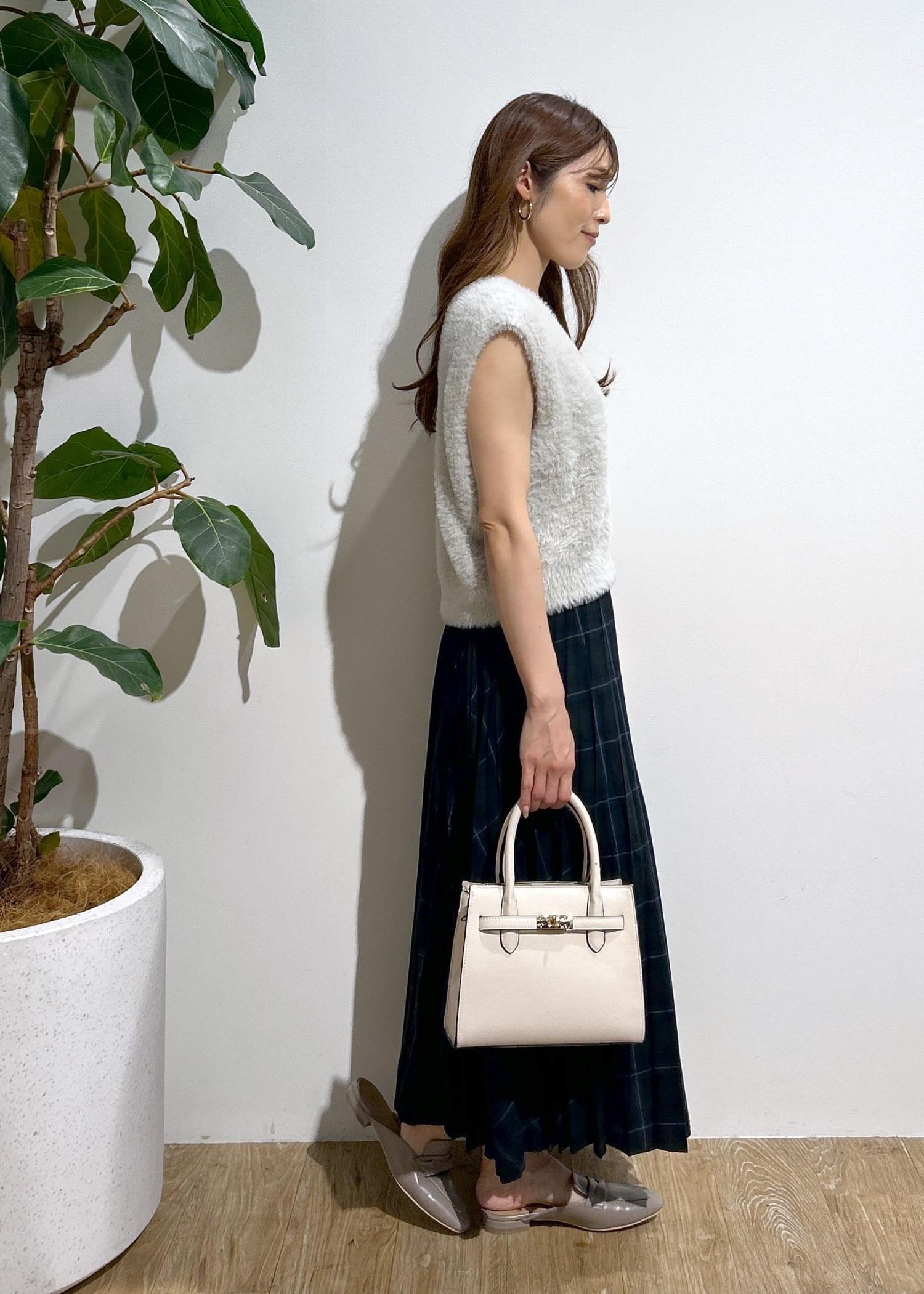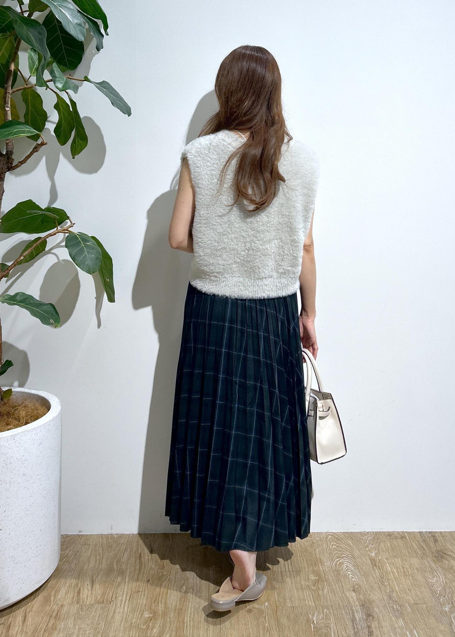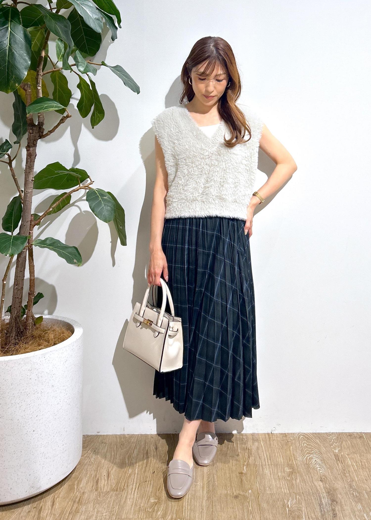 チェックスカート×ファーベストの秋にオススメなコーディネートです。