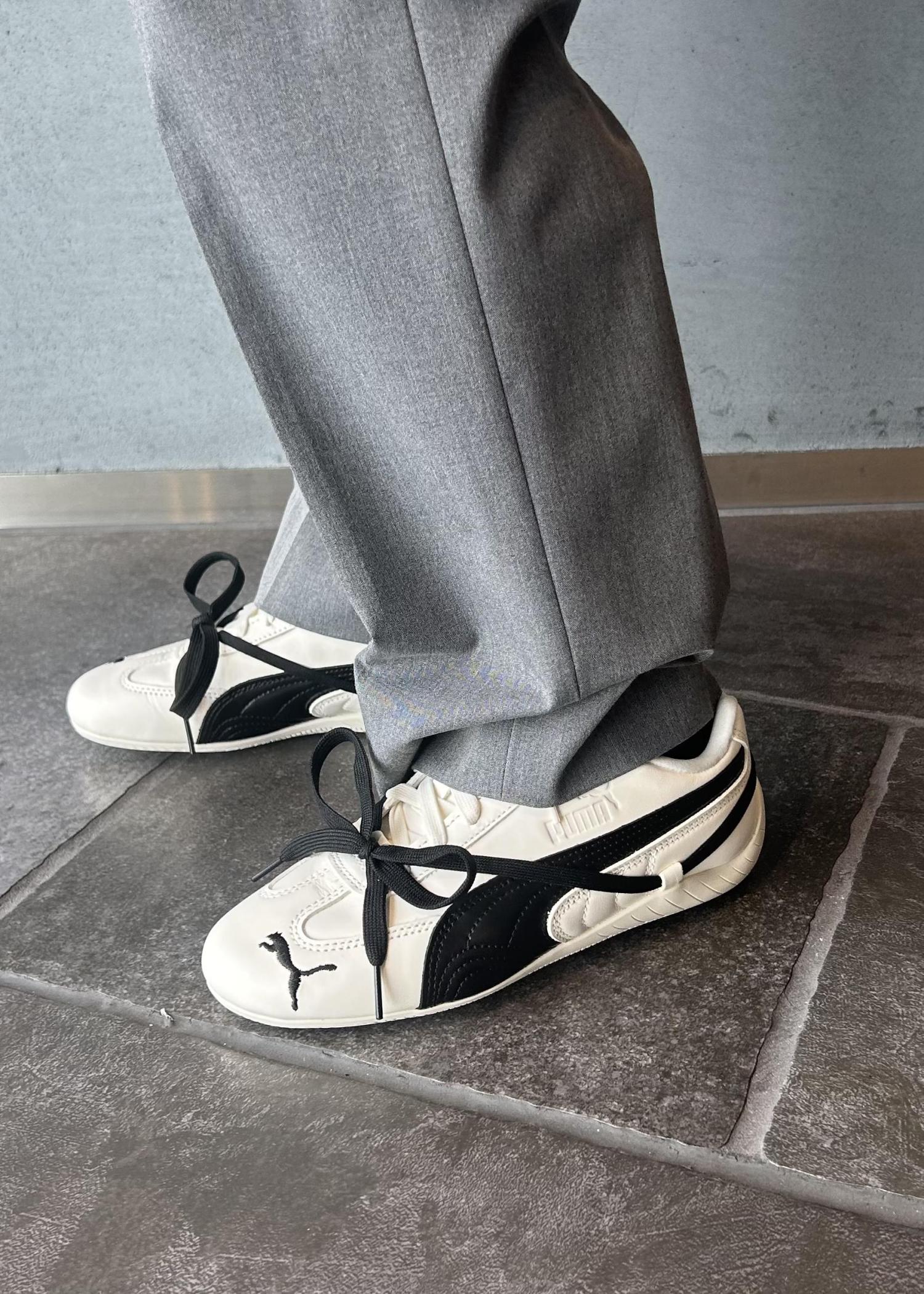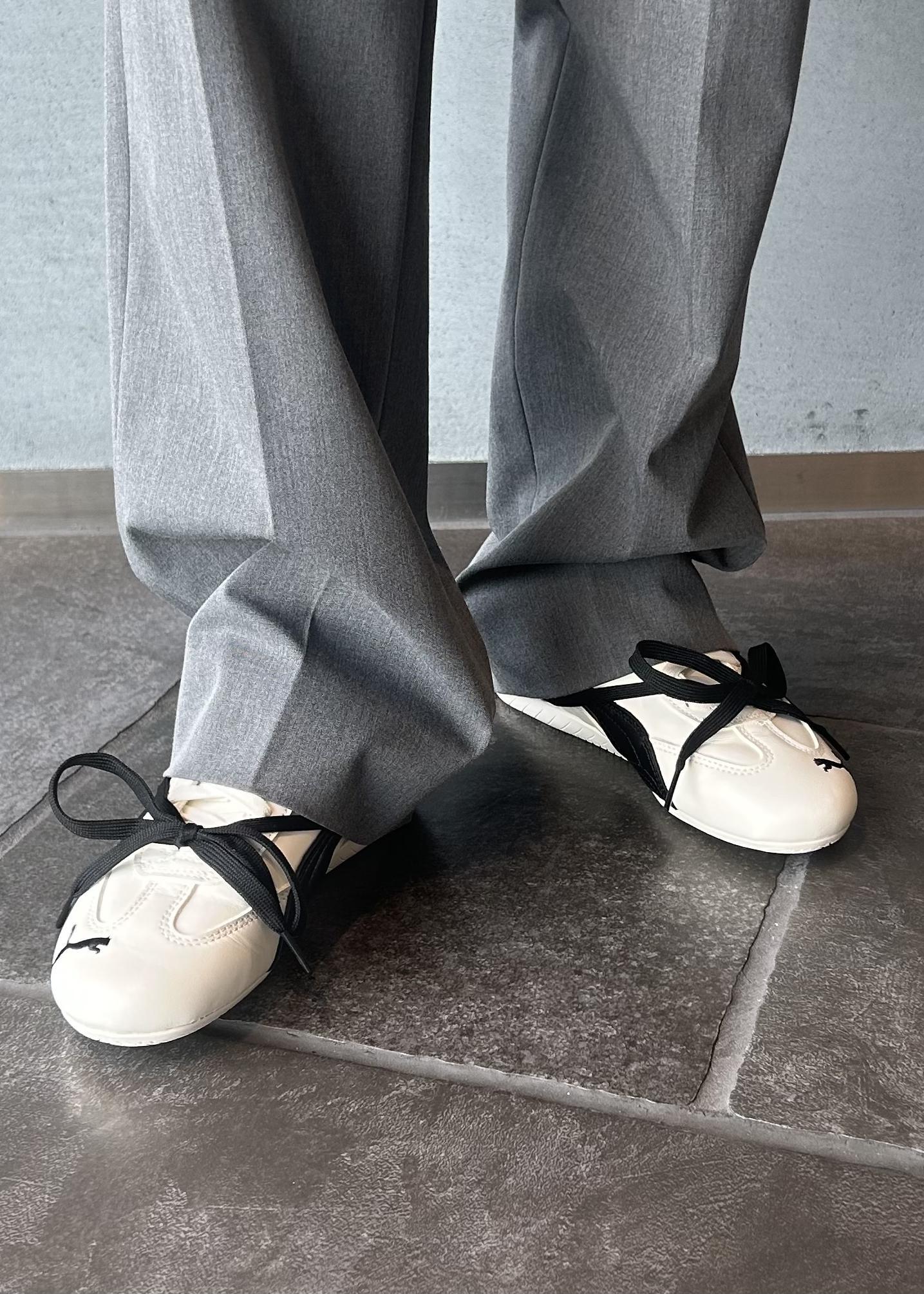 つま先にリボンがあることでゆったりしたボトムの時にもさりげなく見えるようなワンポイントに。