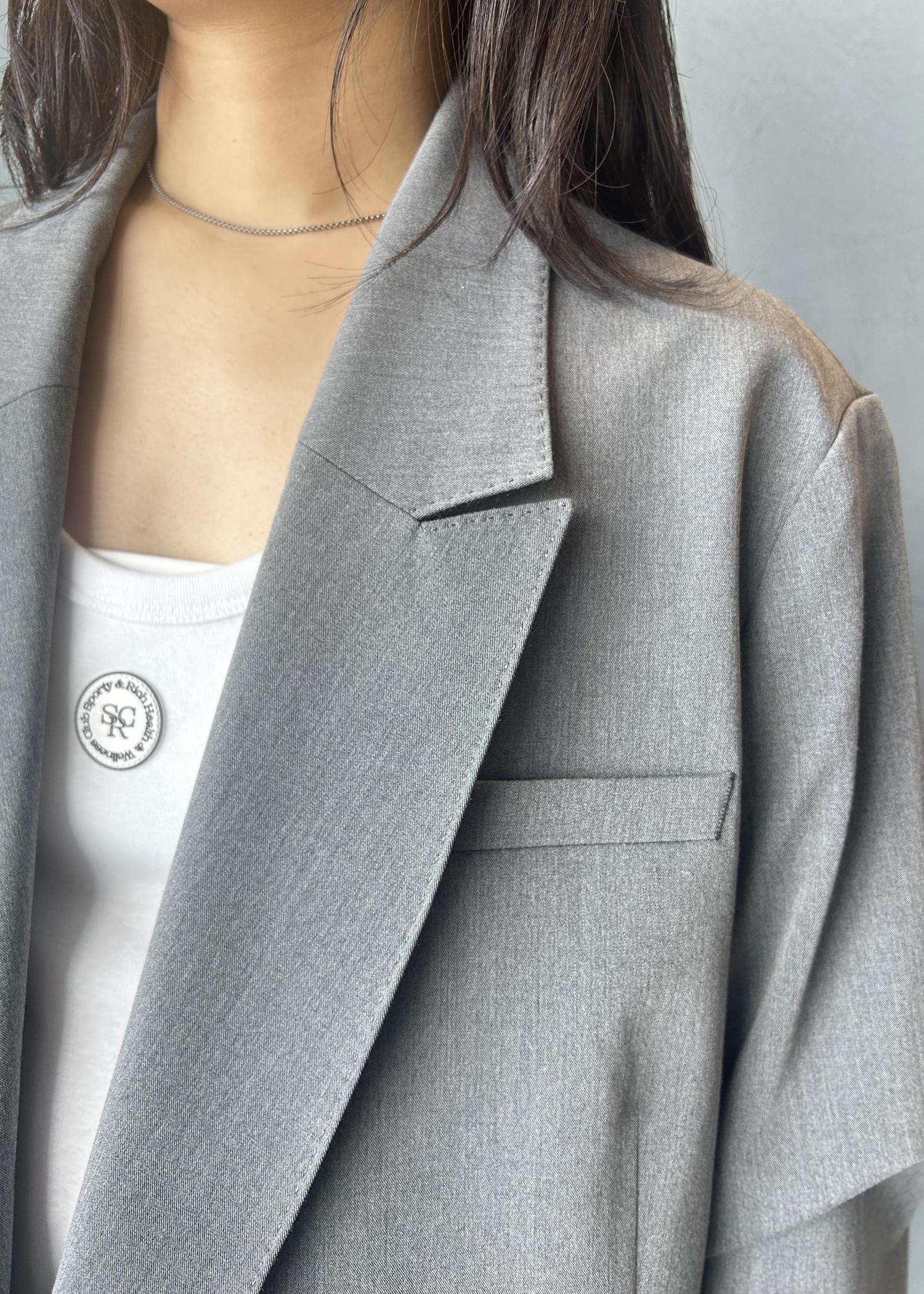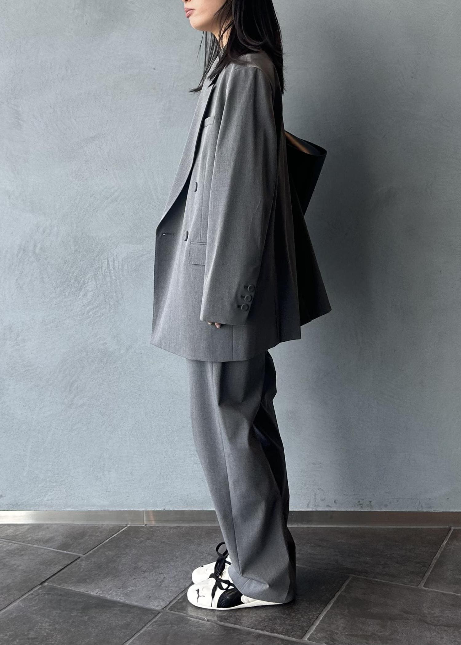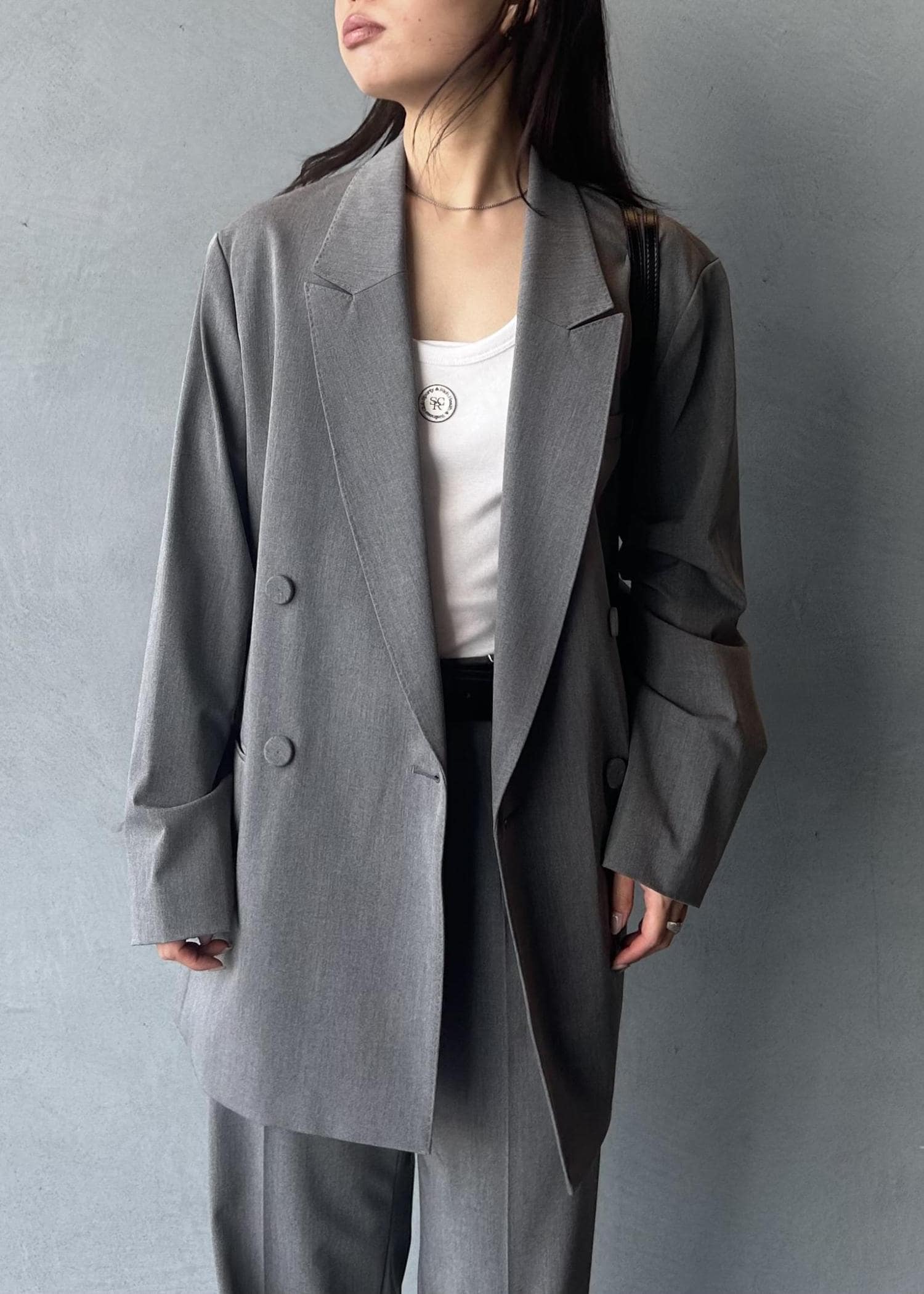 ADAM ET ROPÉ FEMME【サステナブル】ダブルブレストジャケットグレー / 36¥29,700レビューゆったりとしたシルエットでヒップがすっぽり隠れるくらいの長さです。袖も長めですが、裏地も綺麗な見た目なので折り返しても素敵です。襟元のステッチがさりげないポイントになっています。