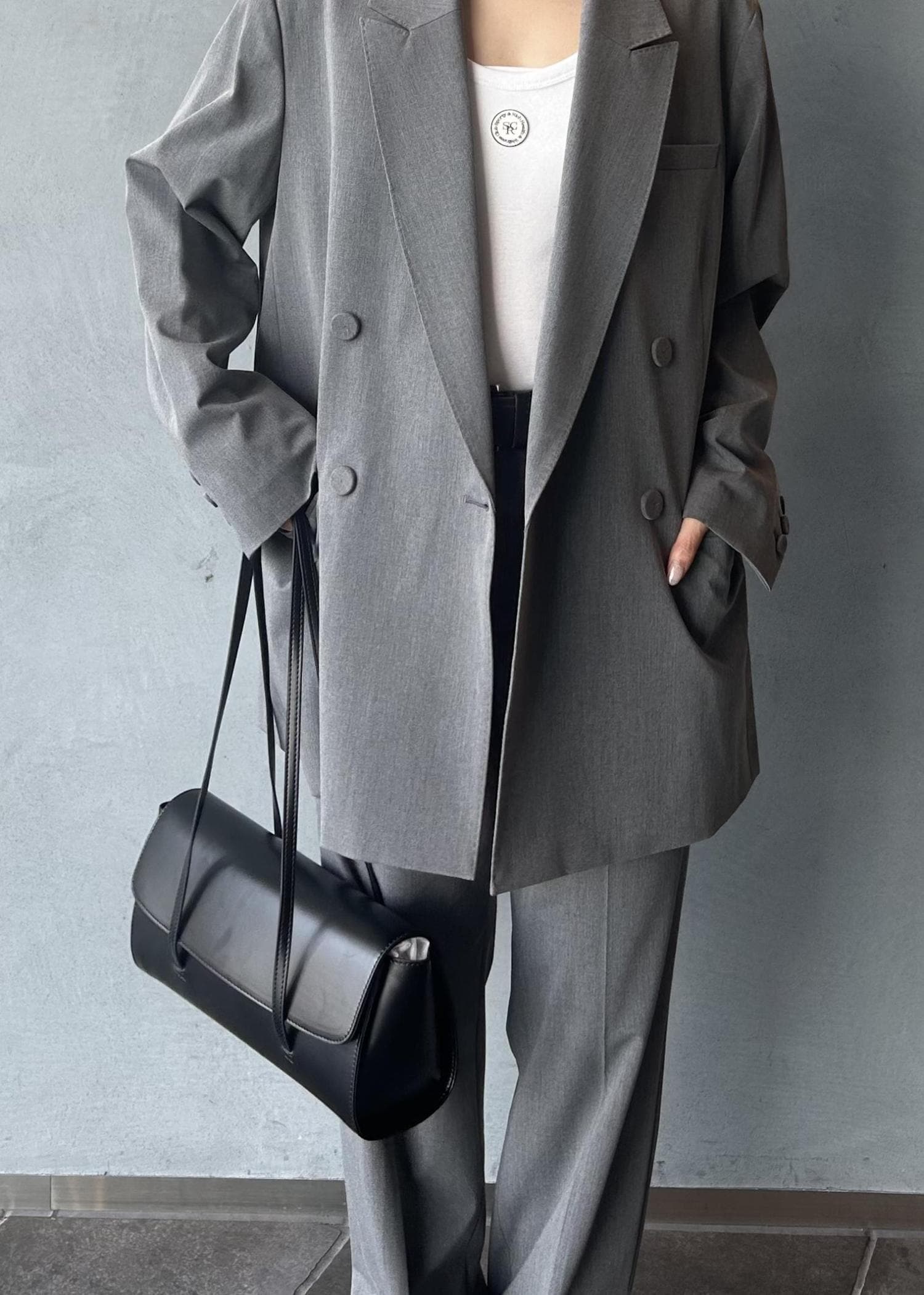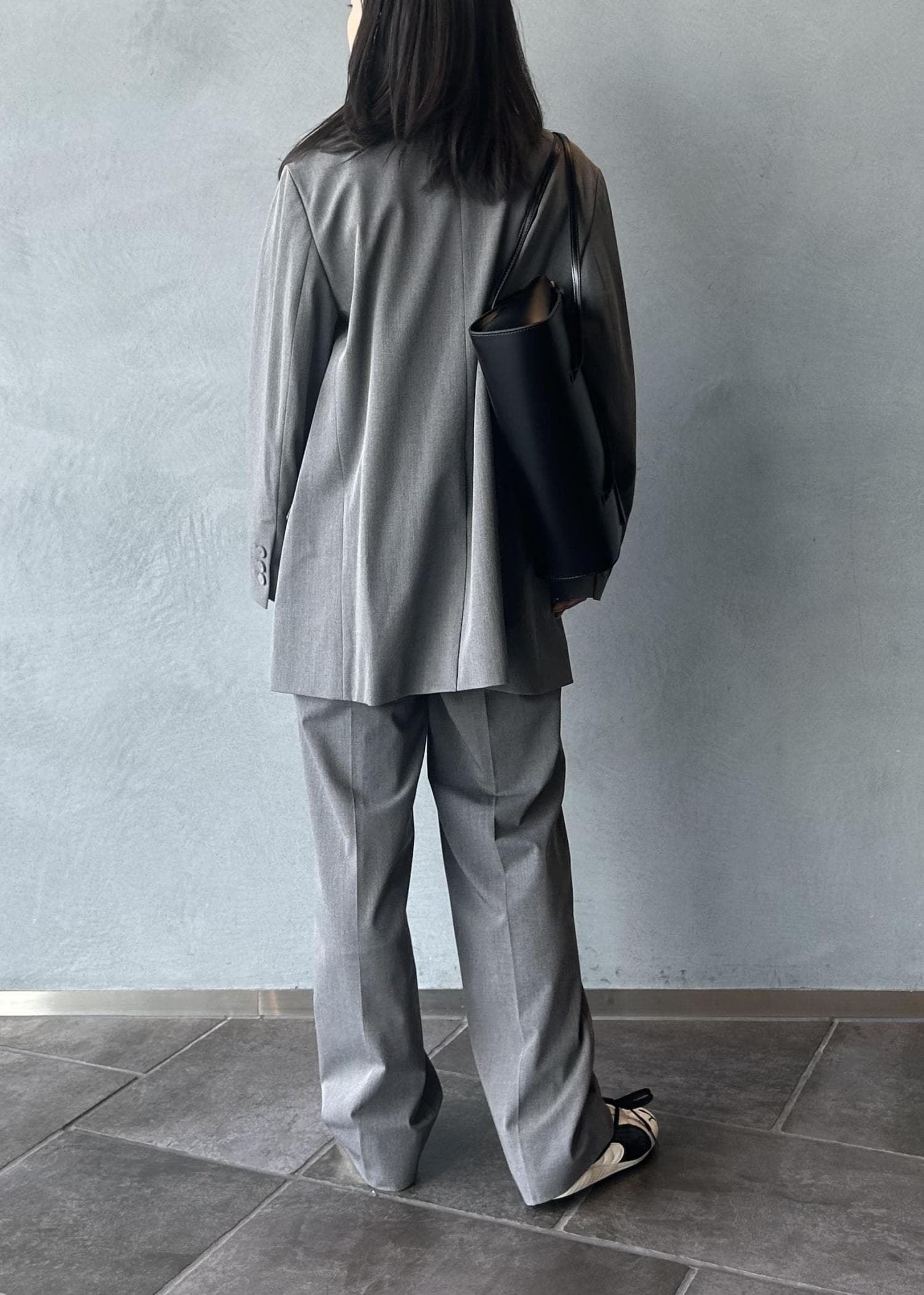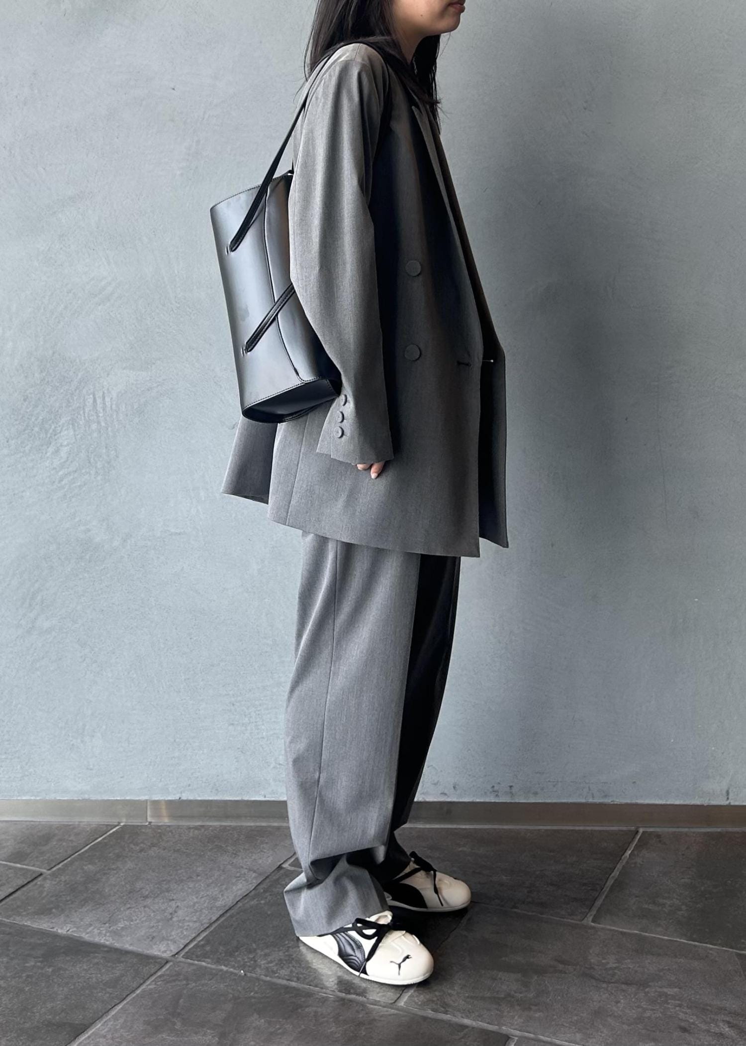 ADAM ET ROPÉ FEMME【サステナブル】ダブルブレストジャケットグレー / 36¥29,700レビューゆったりとしたシルエットでヒップがすっぽり隠れるくらいの長さです。袖も長めですが、裏地も綺麗な見た目なので折り返しても素敵です。襟元のステッチがさりげないポイントになっています。