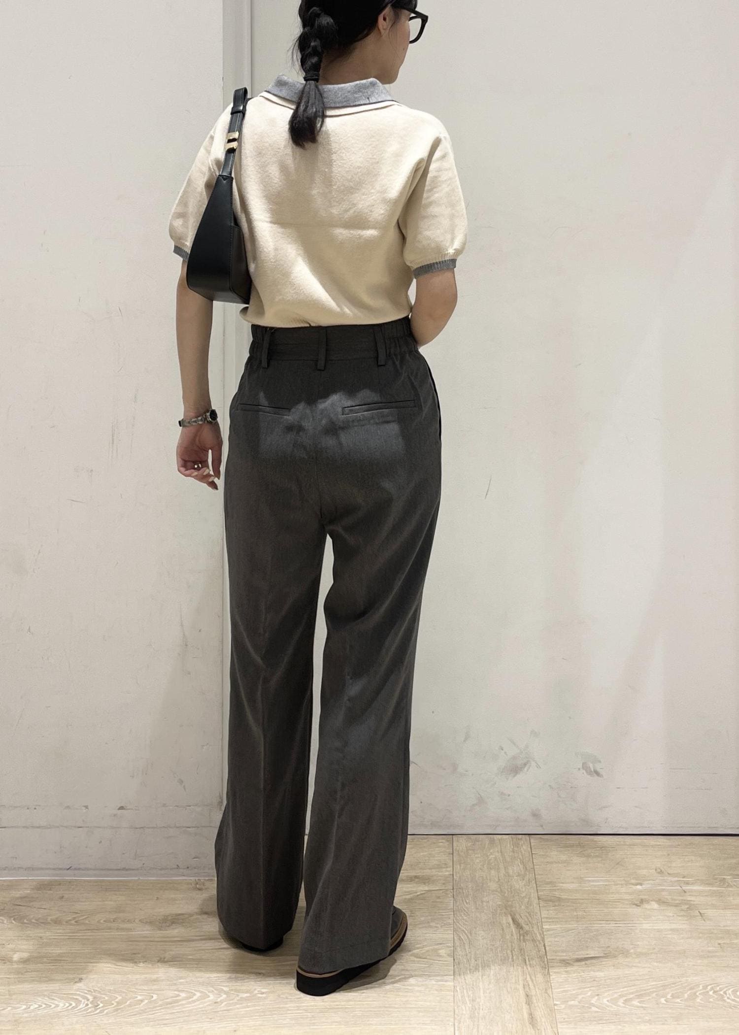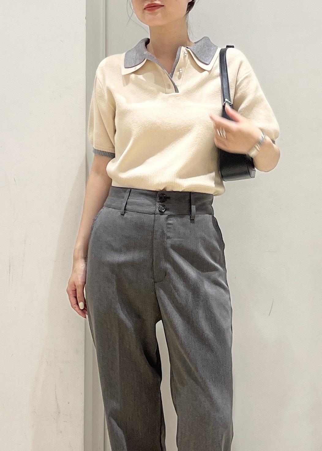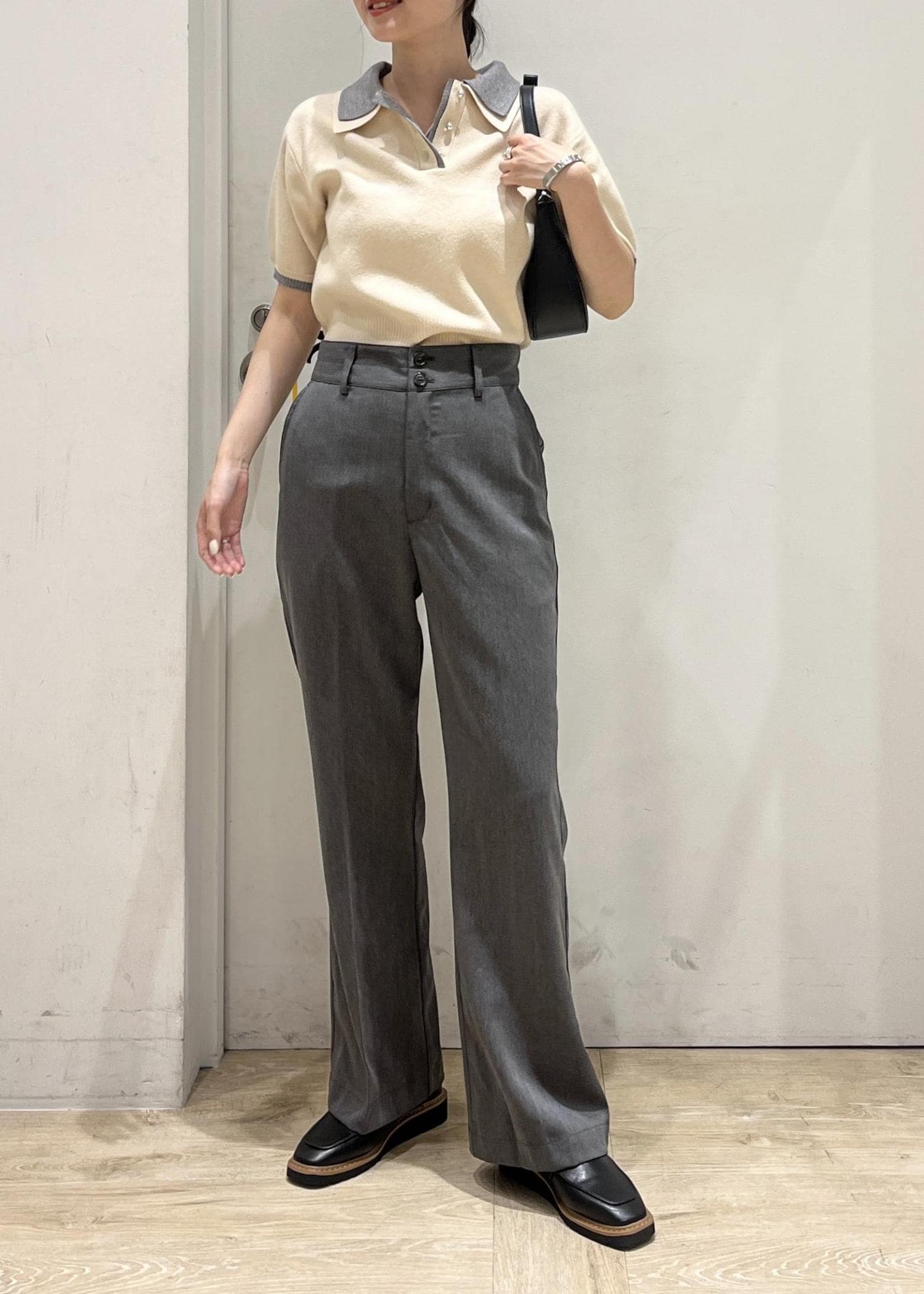 パンツはグレーにすることでトップスとの統一感のあるコーディネートに!