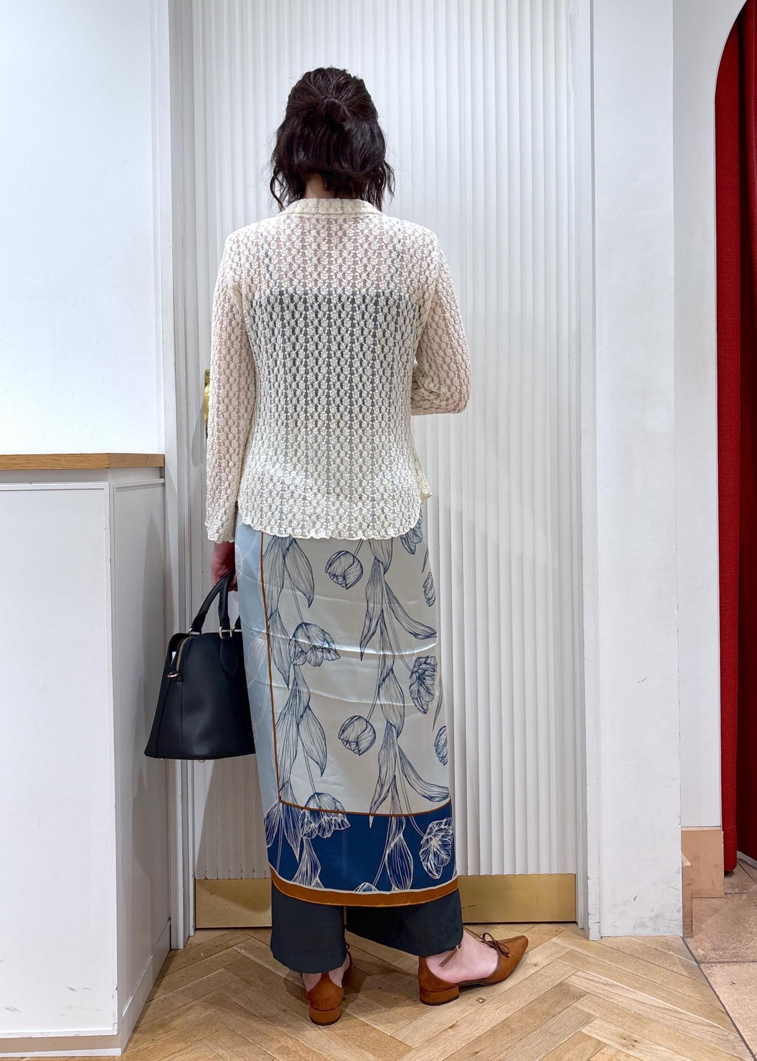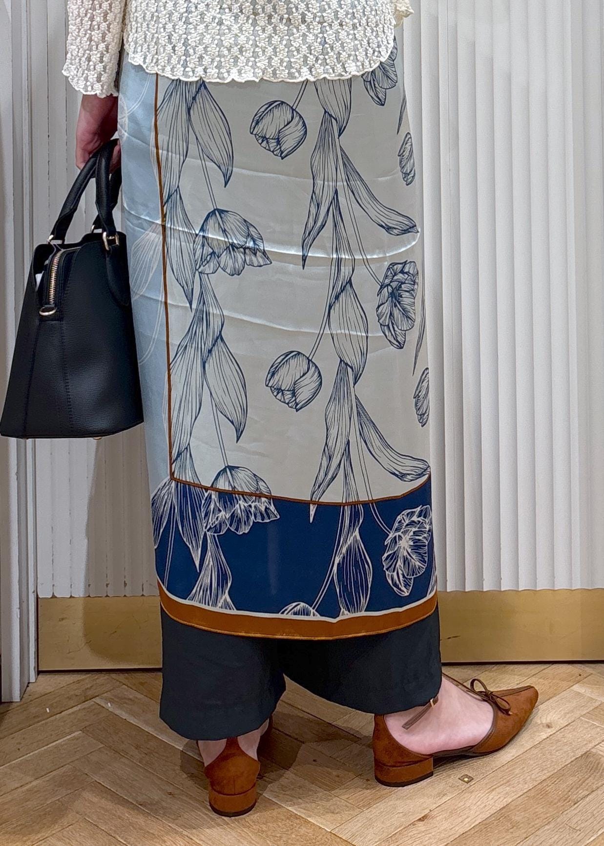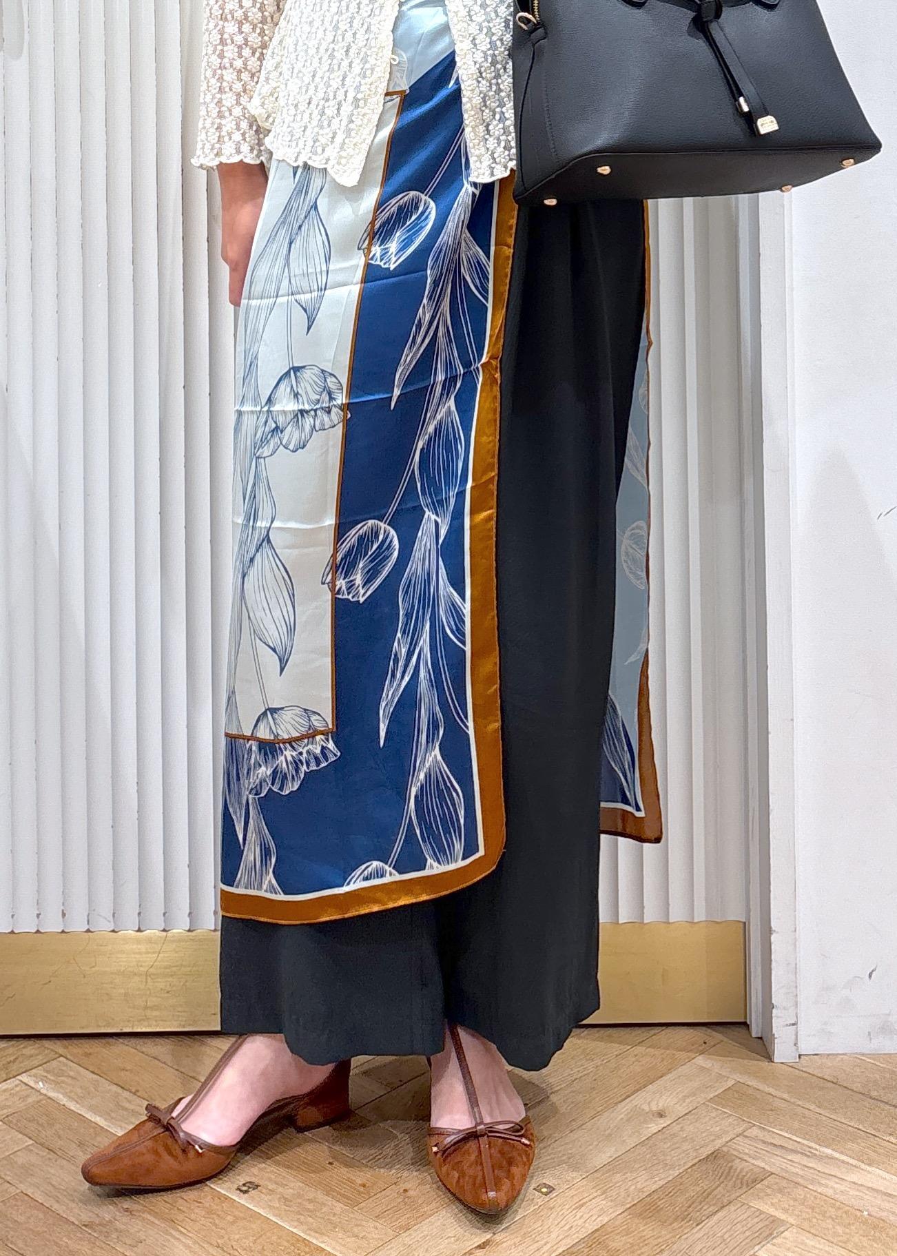 VISチューリップ柄スカーフ90×90cmブルー系 / F¥2,189レビュー大判のスカーフでボトムに巻いたり、ビスチェ風にしたりコーディネートのアクセントに使うには最適です