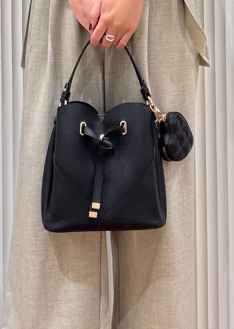 よくみると♡が見えますが、一見?シンプルなバケツトートなので甘くなり過ぎず年齢問わず使用できます!