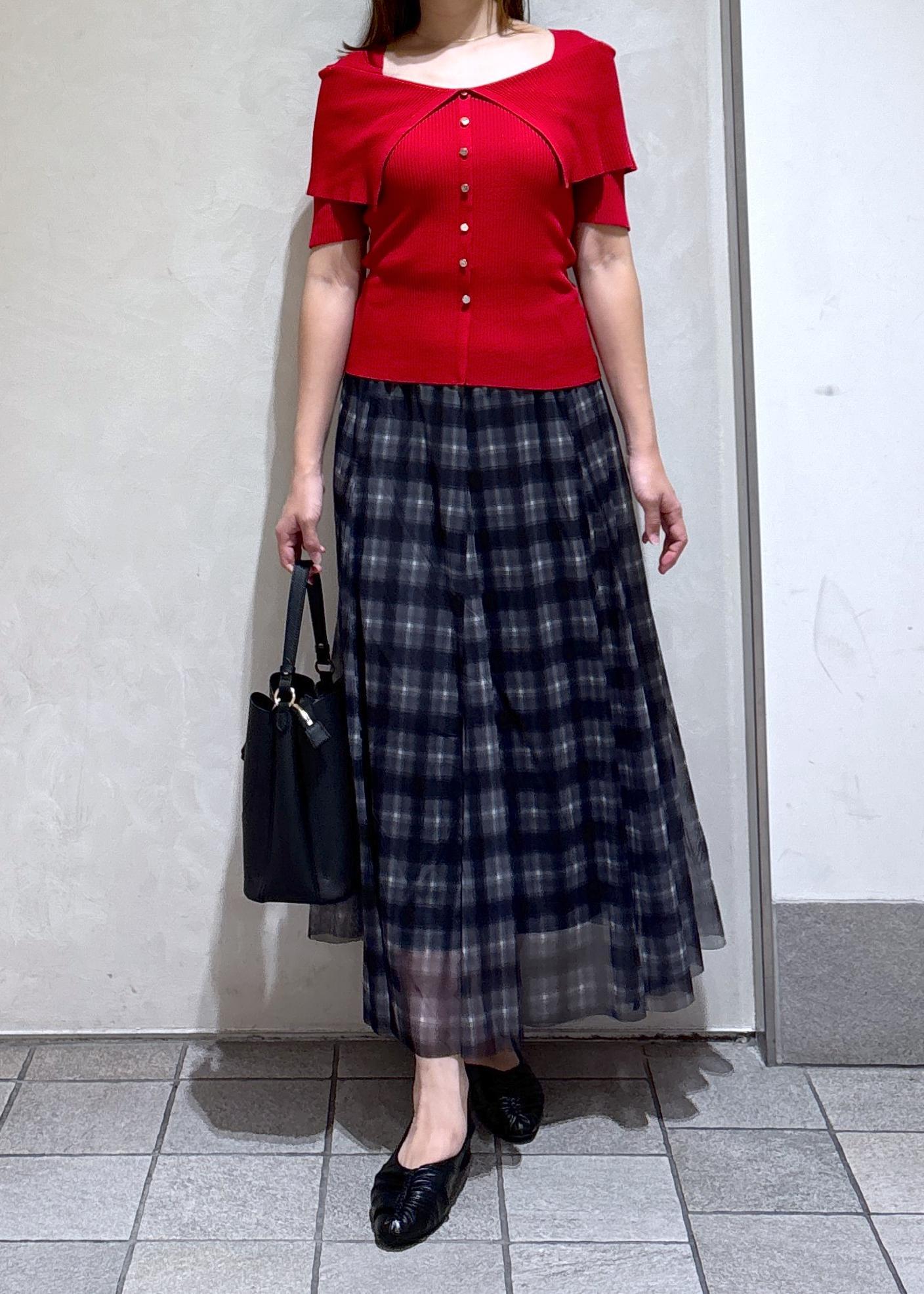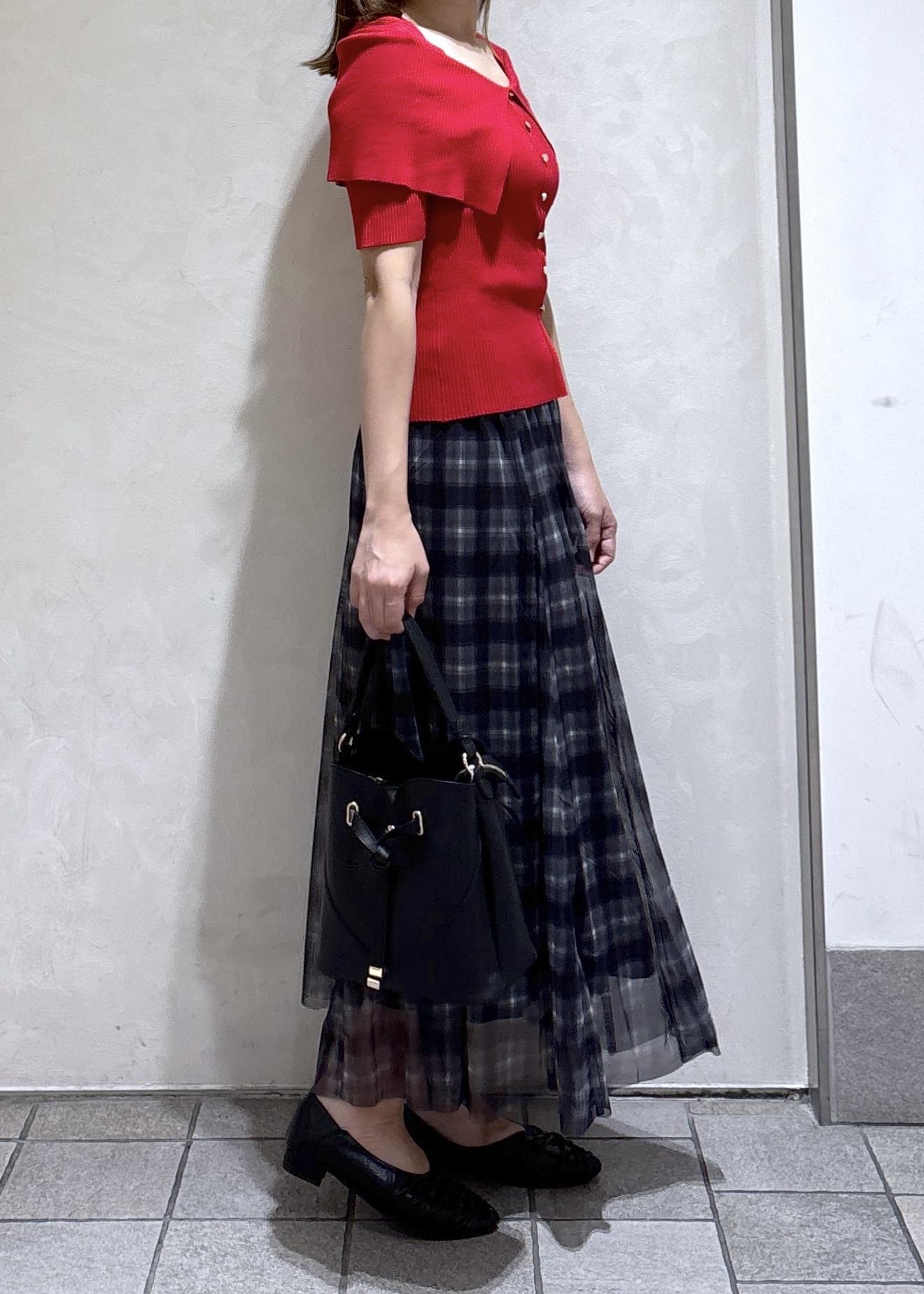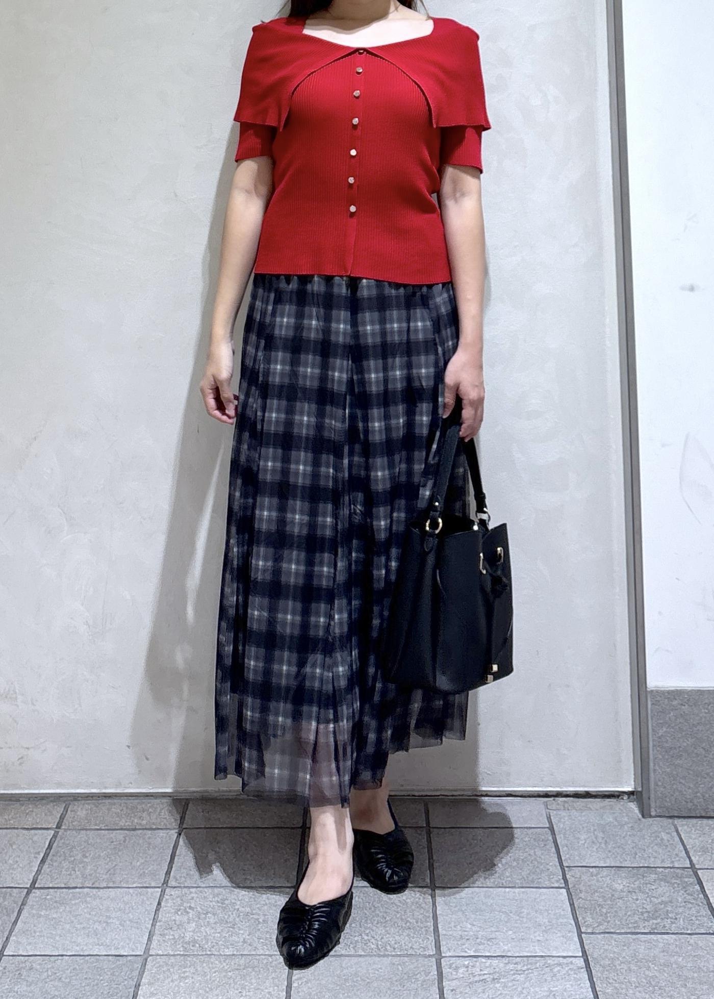 VIS【洗える】チュールプリントチェックスカートブラック系 / F¥4,612レビューすごく軽くてサラッと着やすいです!