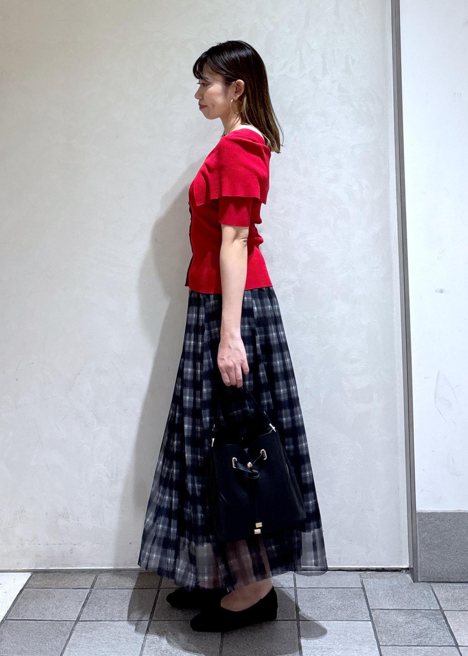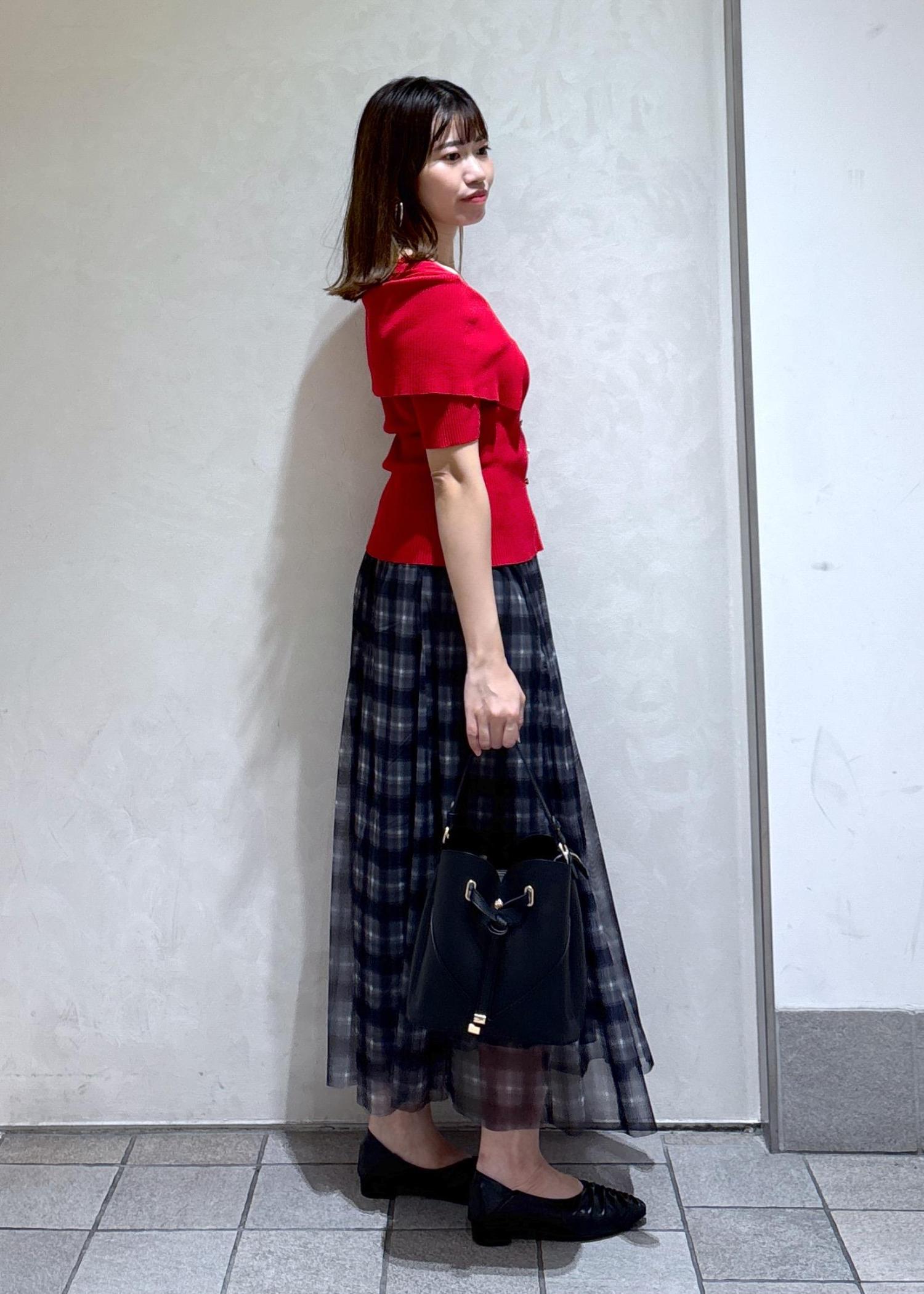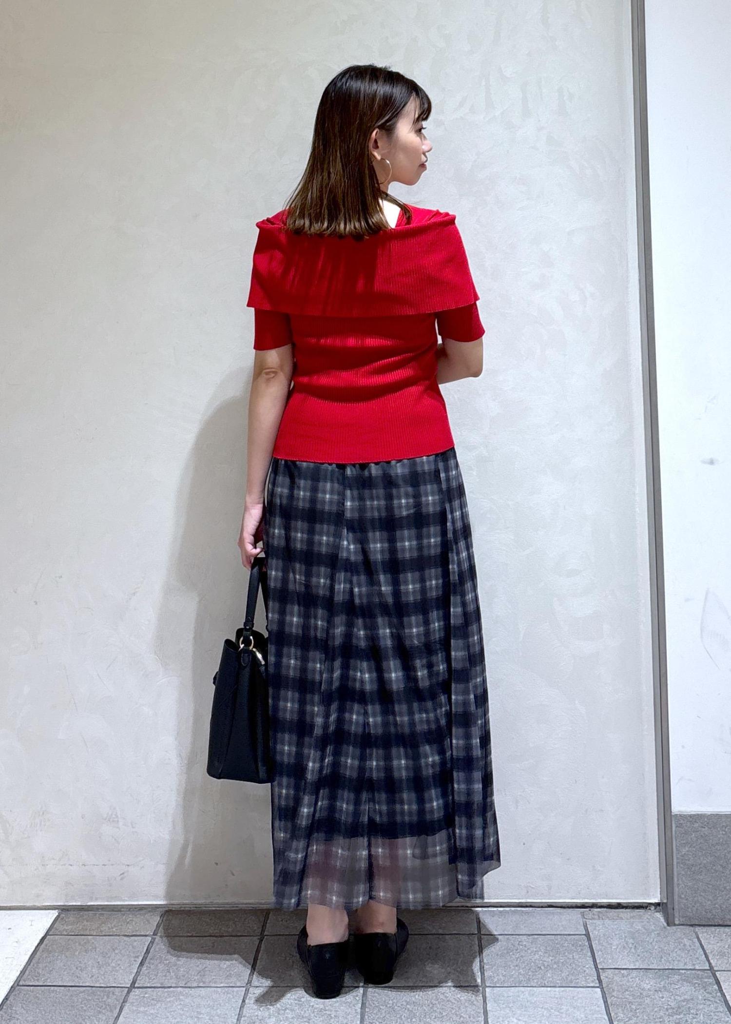 VIS【洗える】チュールプリントチェックスカートブラック系 / F¥4,612レビューすごく軽くてサラッと着やすいです!