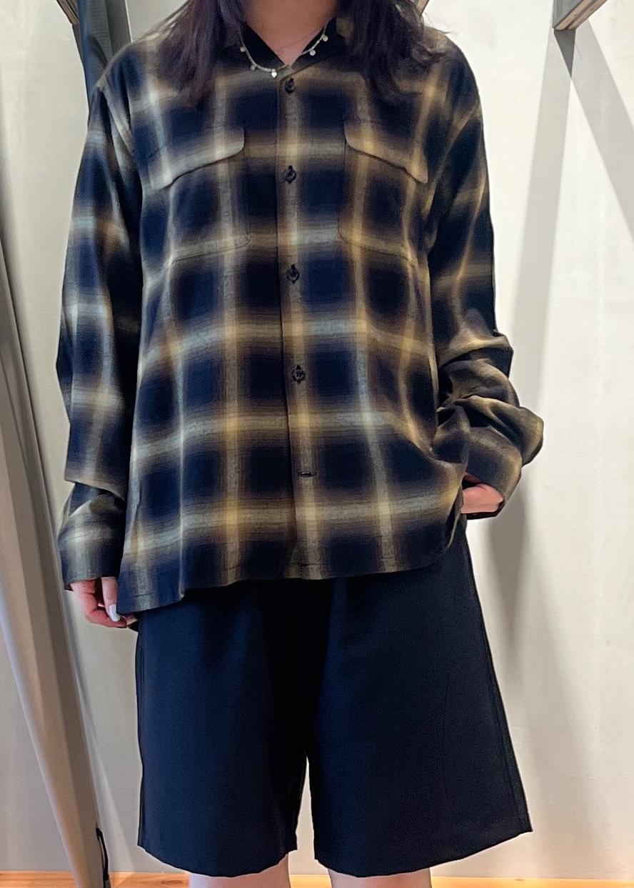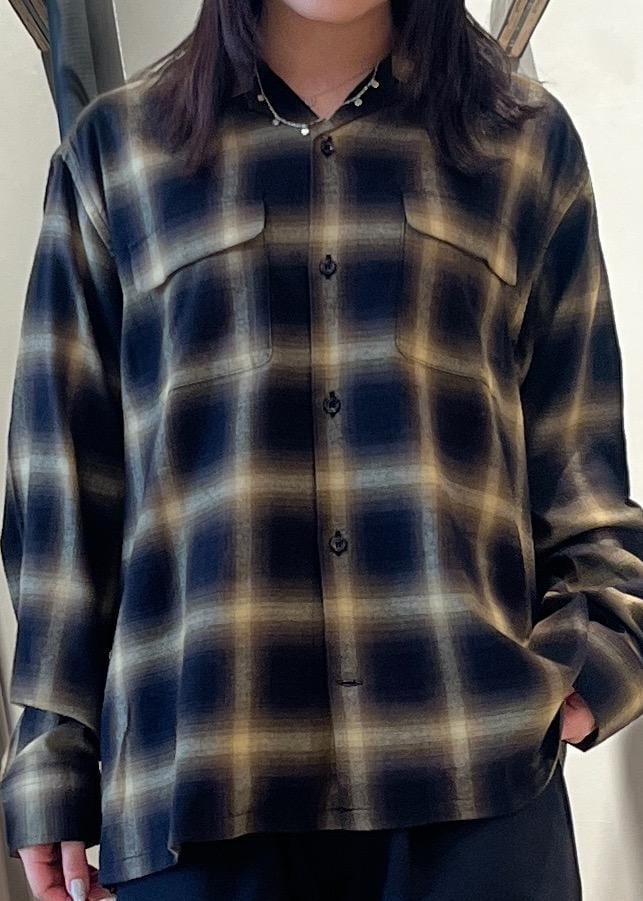 落ち着いた配色のオンブレチェック柄を活かしたミニマルなデザインは、汎用性が高い大人のオープンカラーシャツに仕上がっています。 -