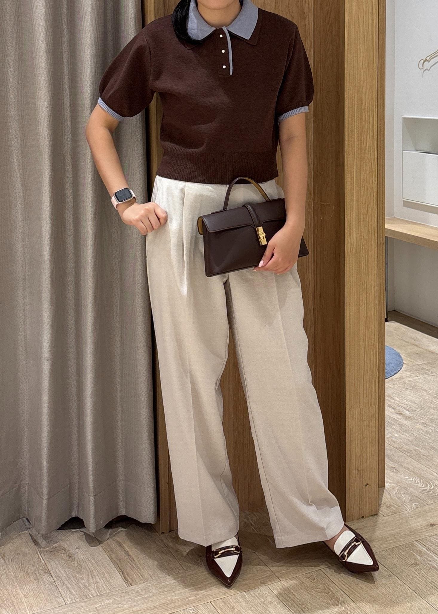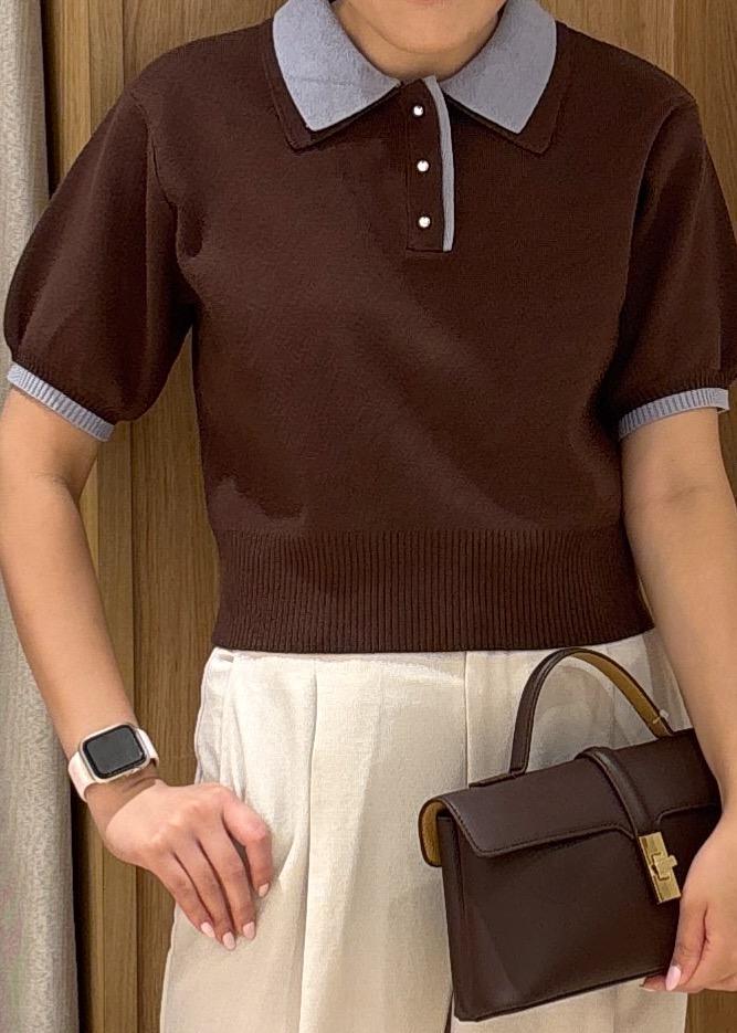 VISダブルカラーポロトップスブラウン / F¥5,929レビューモチモチの素材感で秋まで使っていただけます!
