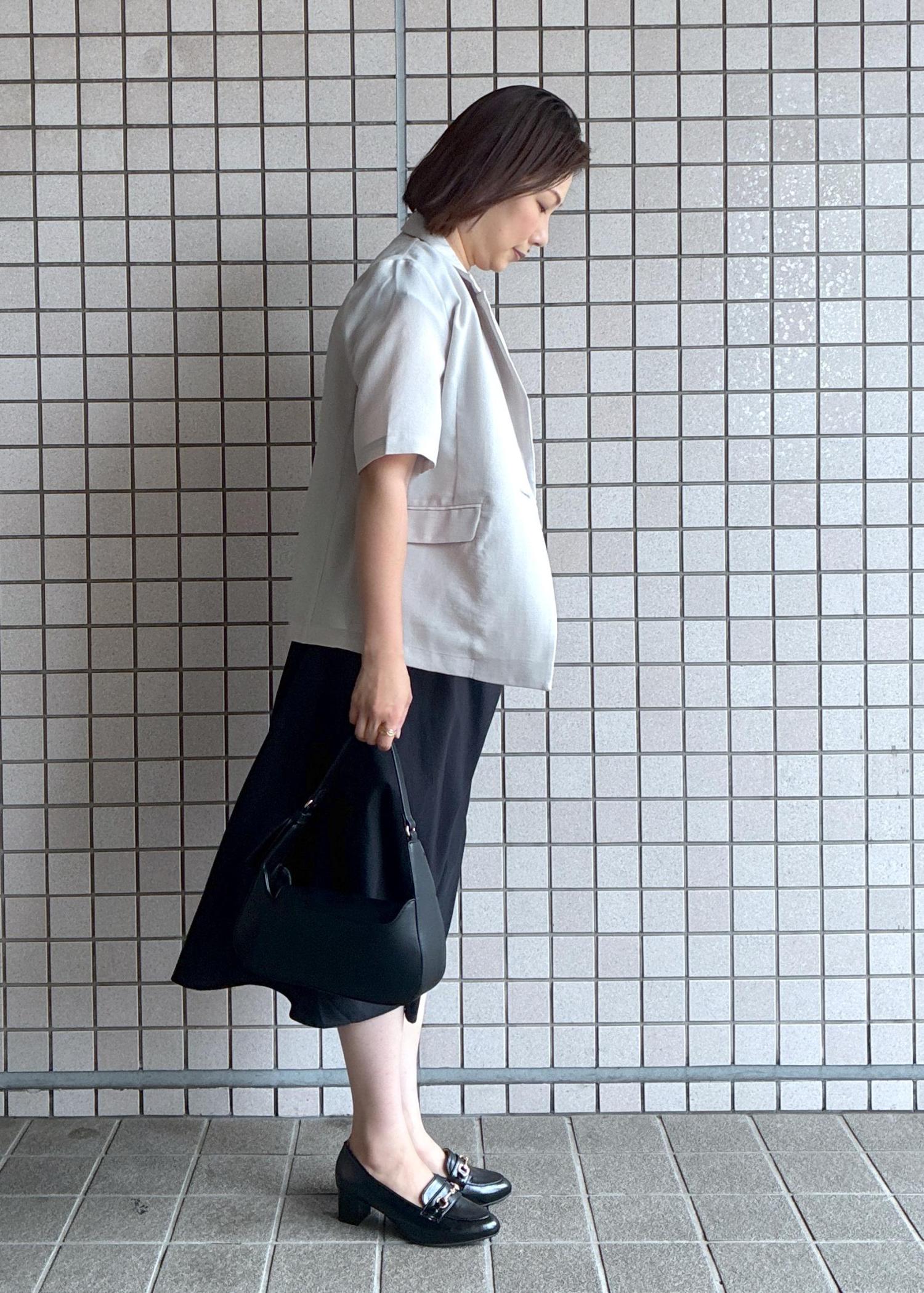 ツルッとした合皮素材なので、きれいめにもカジュアルにも使いやすいです。 -