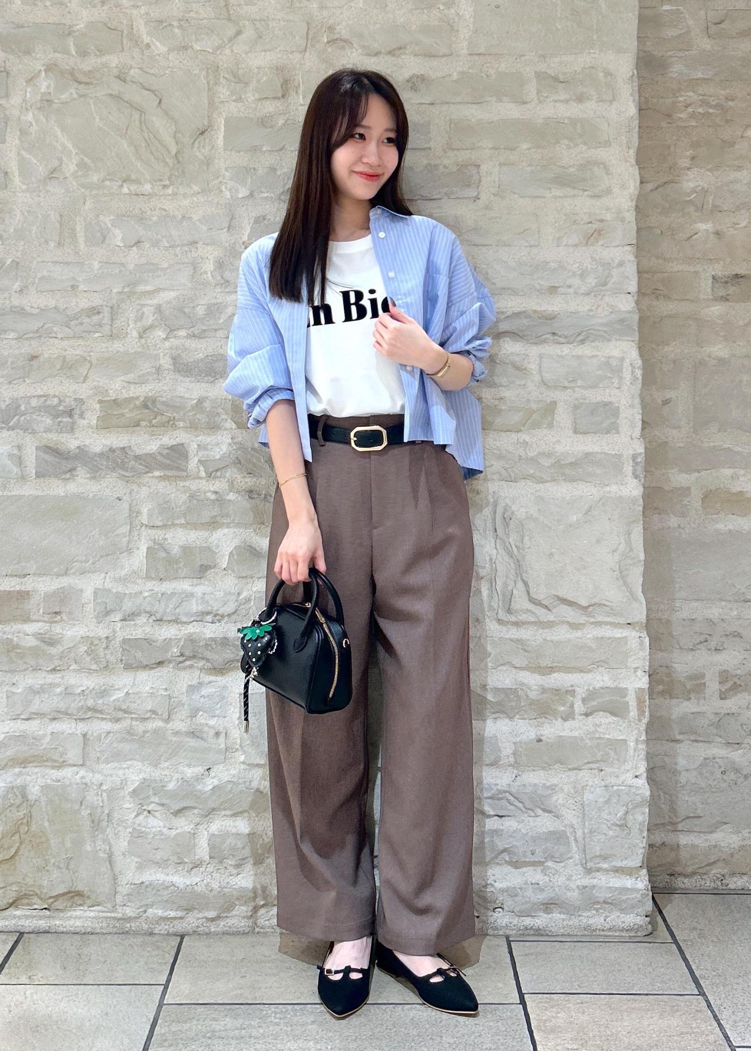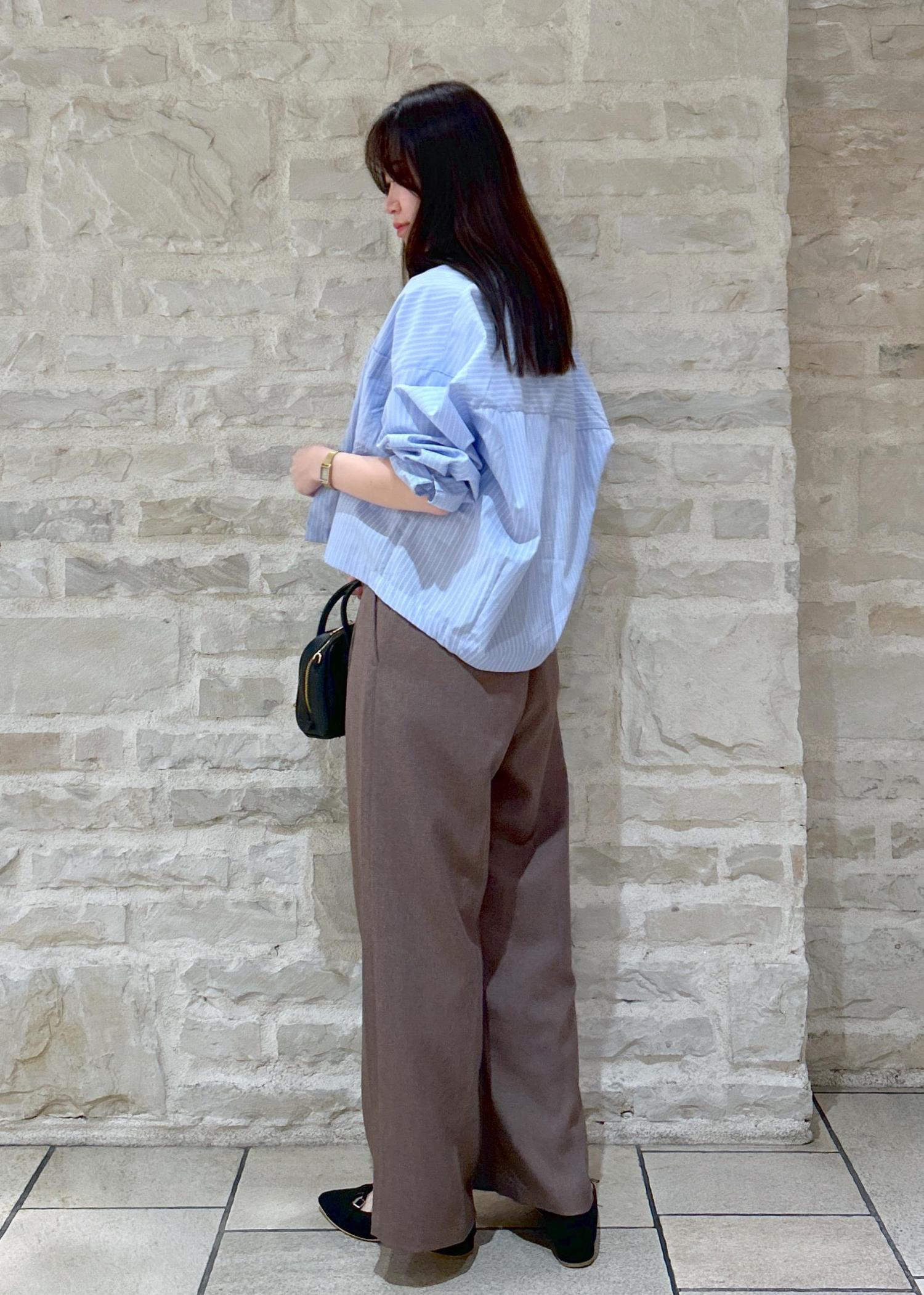 ワイドパンツではありますがセンターラインが入ってるのでスッキリとした印象になります。