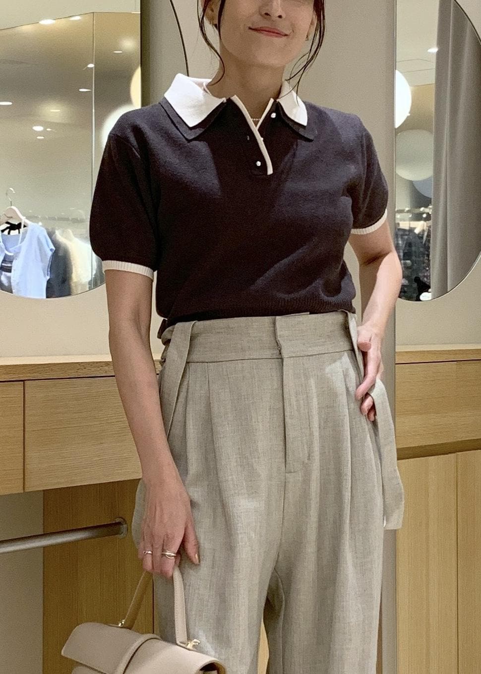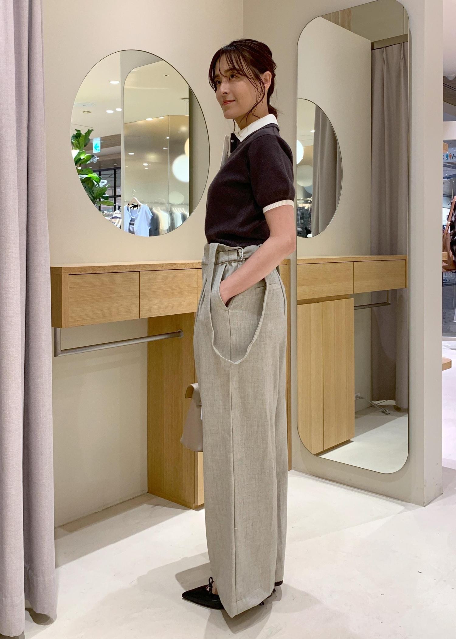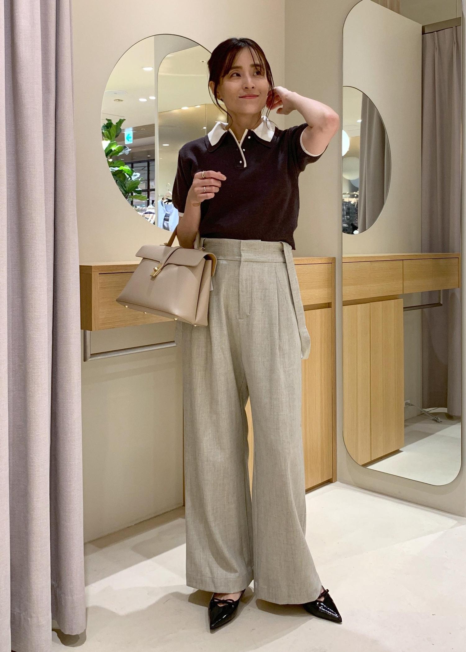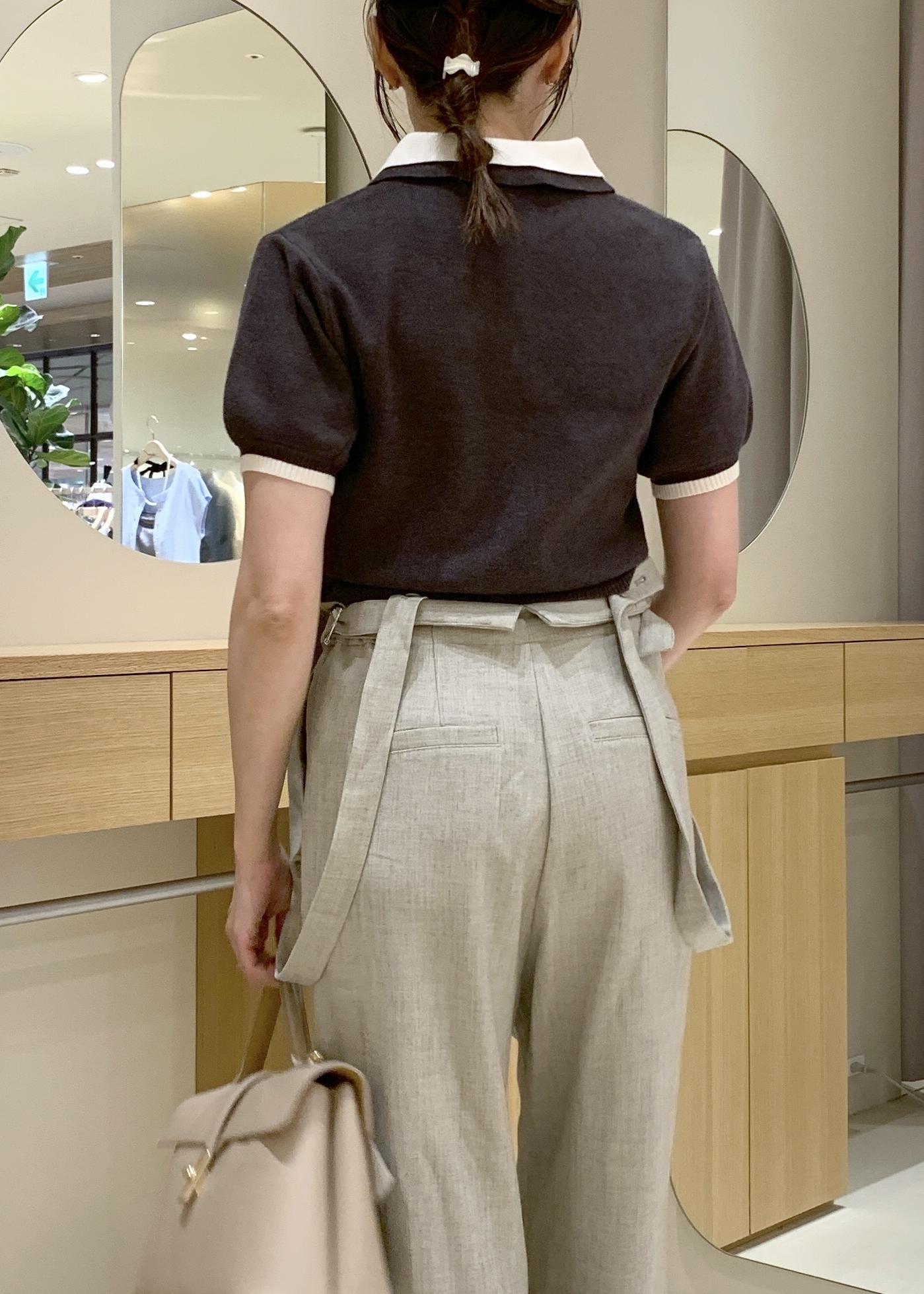 ニットですがチクチクする感じはなく、滑らかな肌触りです。ハーフスリーブなので、暑さが残る秋に使いやすいですよ。丈はコンパクトでやや短丈なので、インしなくても使いやすいのが◎ スカート&パンツ、どのシルエットにもコーディネートしやすいです。 -