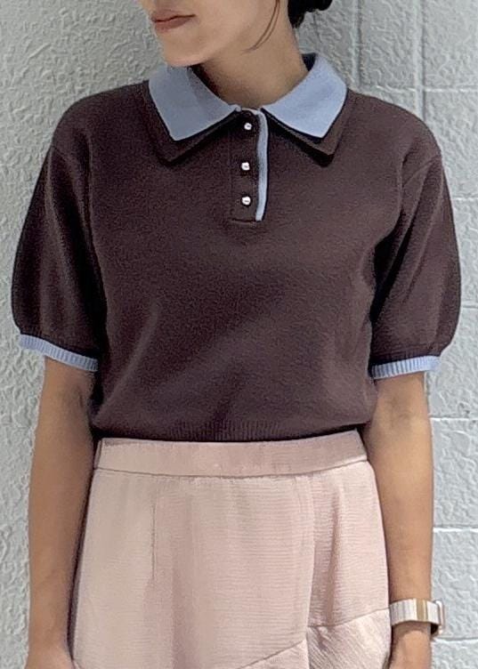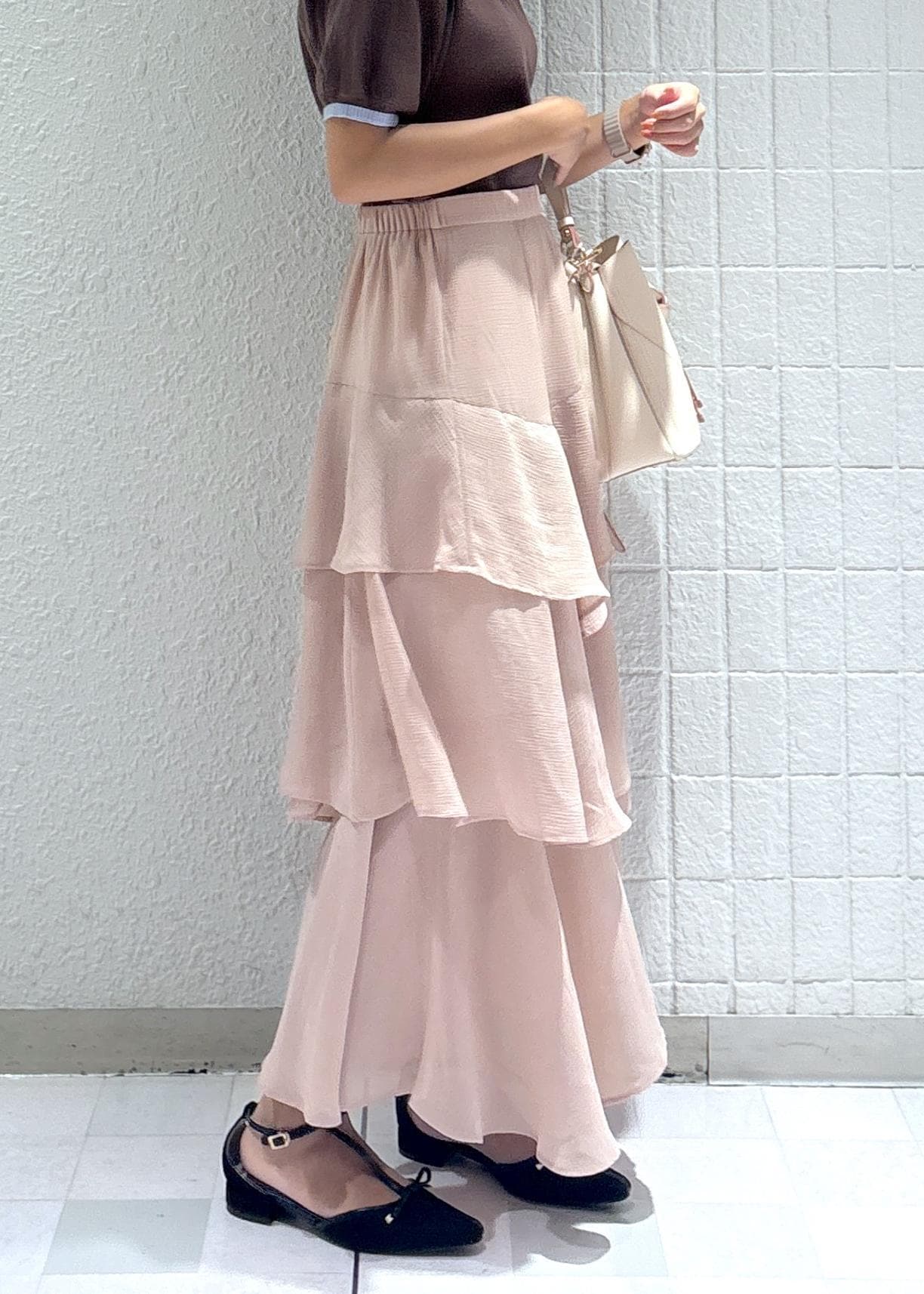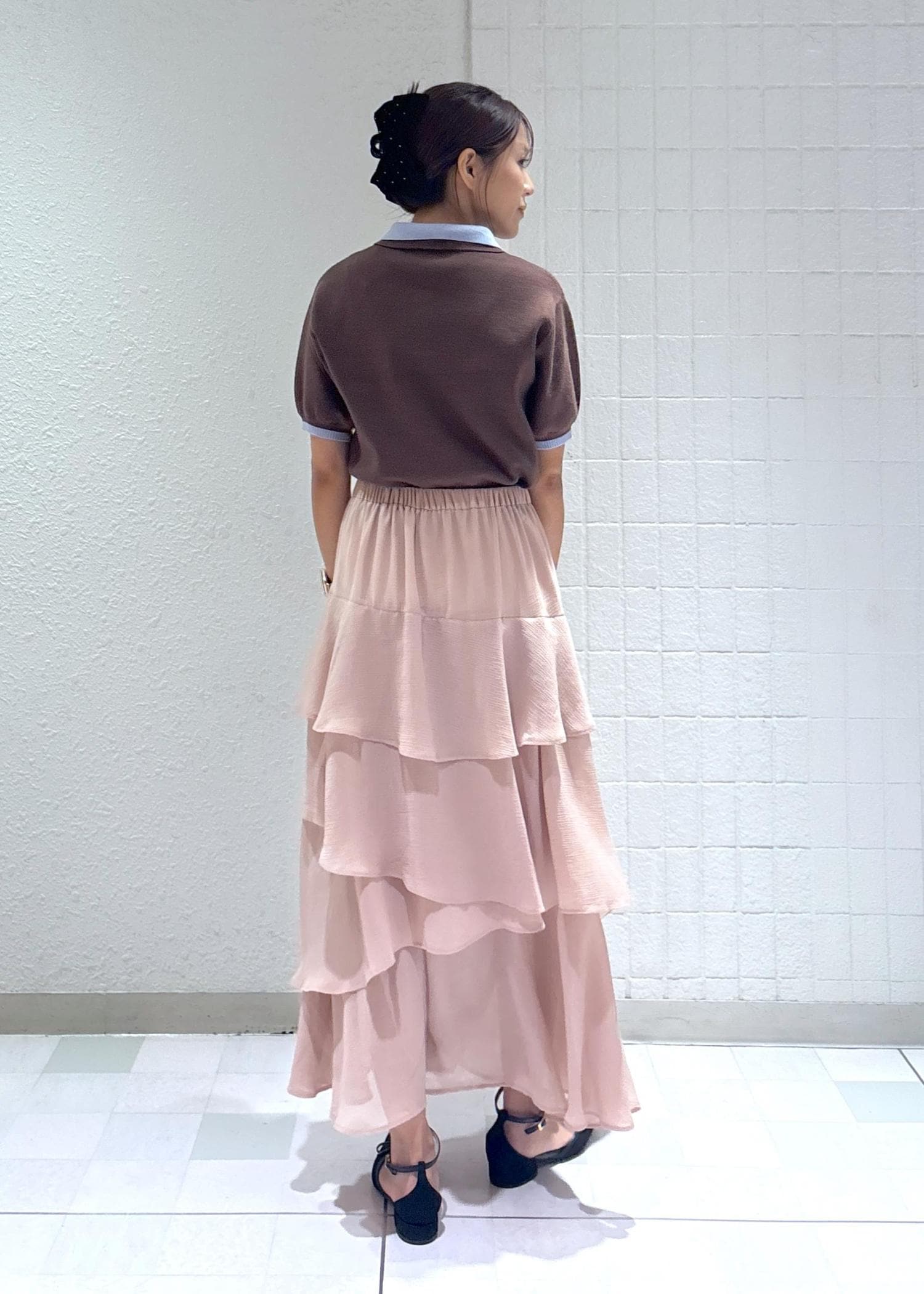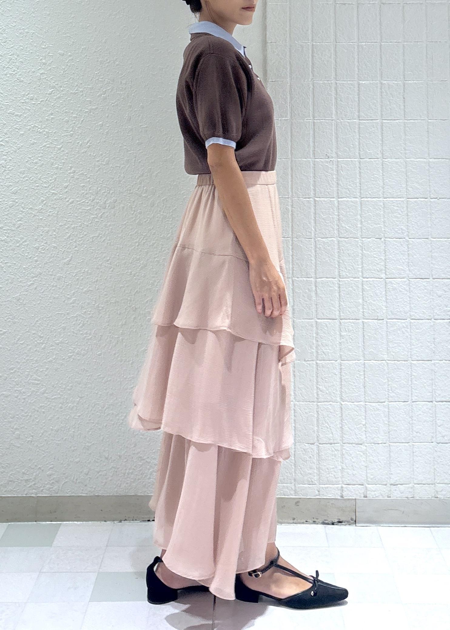 半袖ニットにティアードスカートを合わせて女性らしいコーデに、、、!
