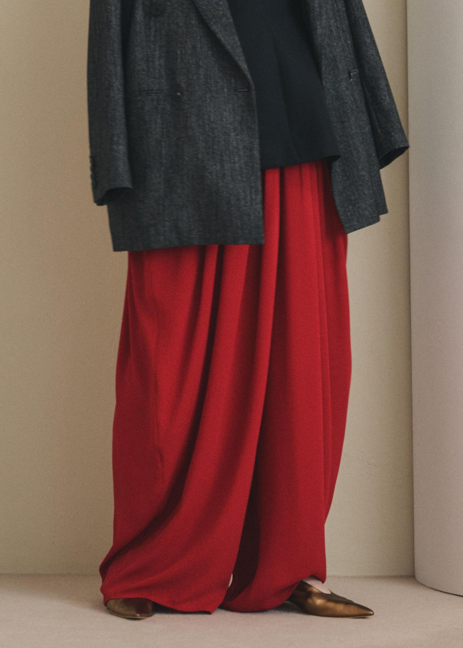 ROPÉ SELECT【一部店舗限定】【REALM(レルム)】WAIST GATHERS EASYPANT|イージーパンツレッド / 38¥36,300レビュー上品なツヤ感とさらりとした肌ざわりのバックサテン素材のギャザーパンツ。