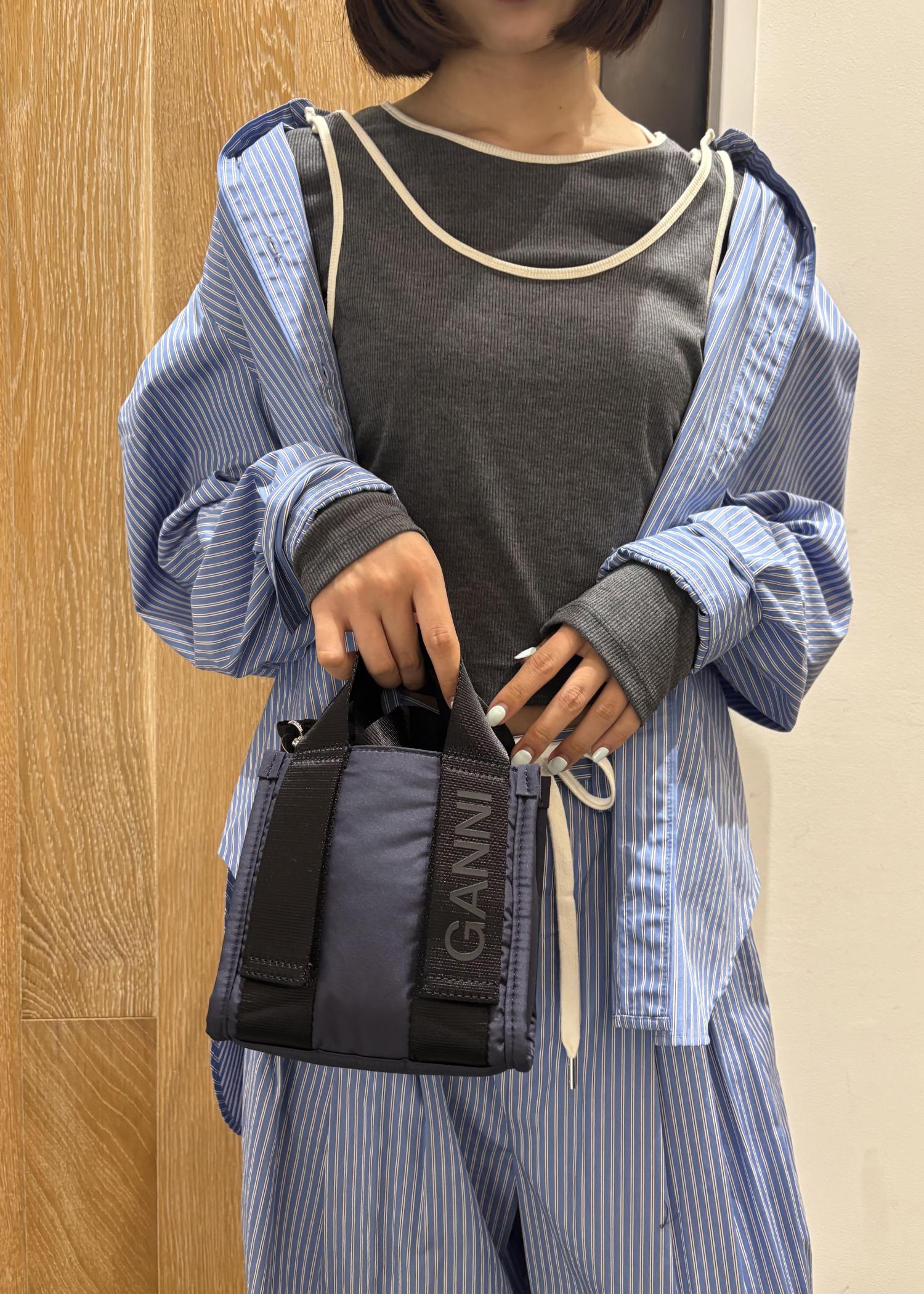 ADAM ET ROPÉ FEMMEGANNI 別注 Recycled tech Mini Toteネイビー / F¥25,300レビューコンパクトなサイズ感なのに折り畳み財布や少量のメイク道具は入れれるくらいの容量です。