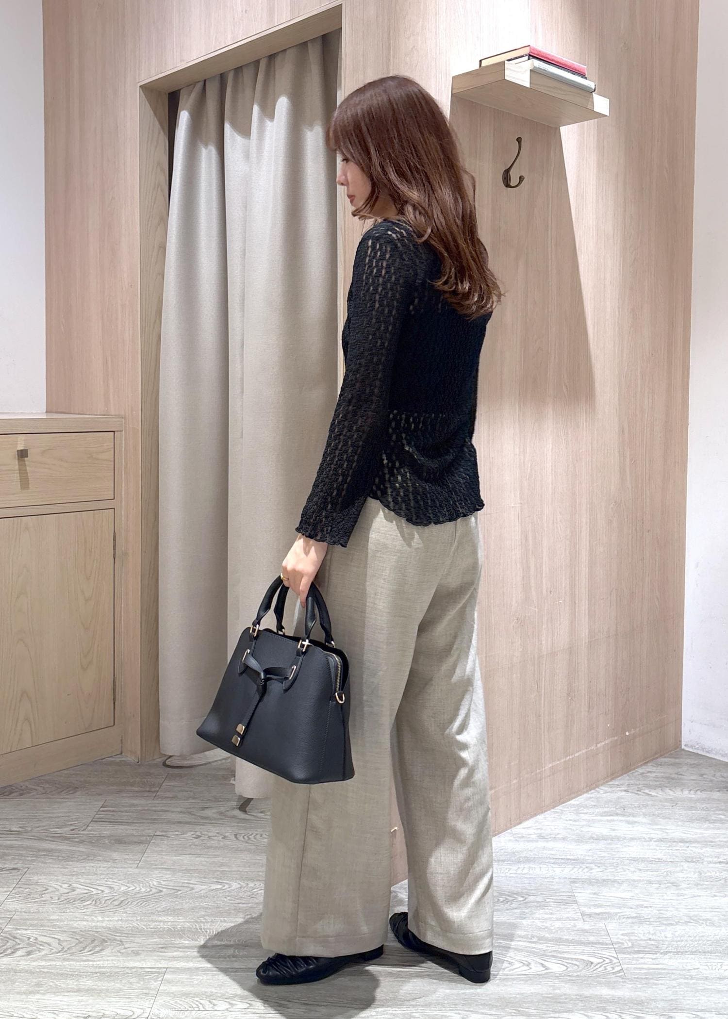 ブラックは強い印象がありますが、ベージュと合わせることで柔さがだせます◎