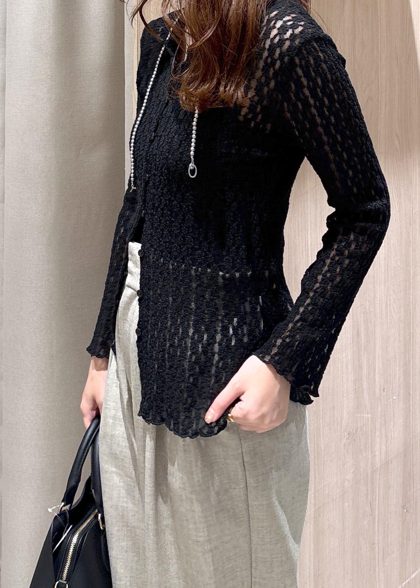 レースカーディガンは程よい透け感と肌見せなので、あまり肌見せしたくない方にもオススメです。