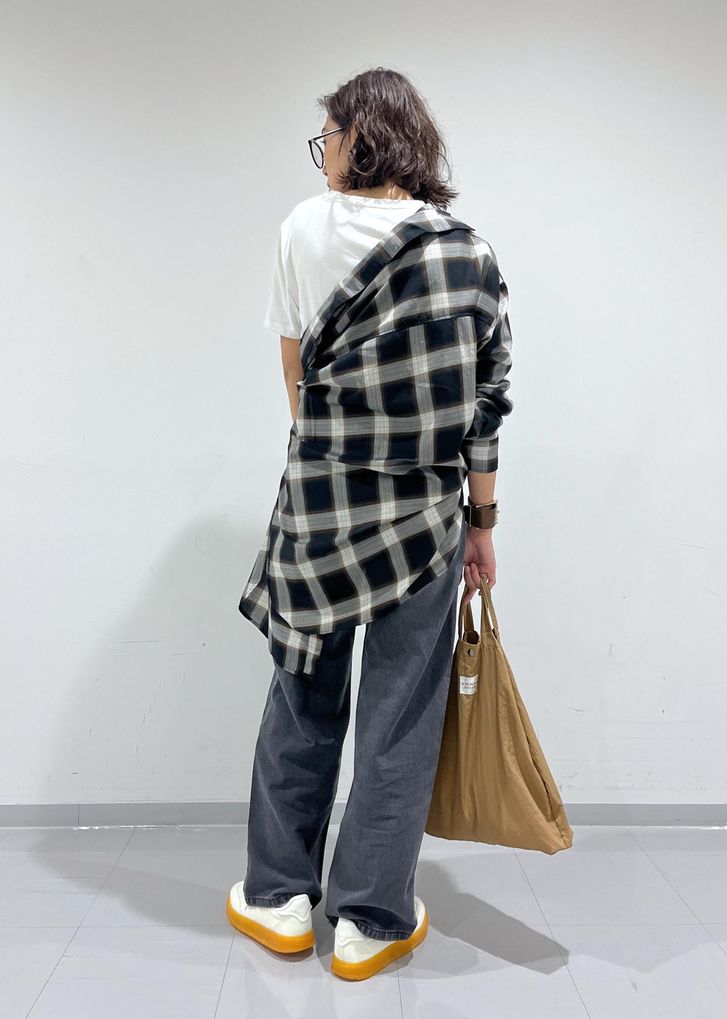 アシメントリーな見せ方で、トレンドのシャツアレンジも個性が出て被りにくいです◎