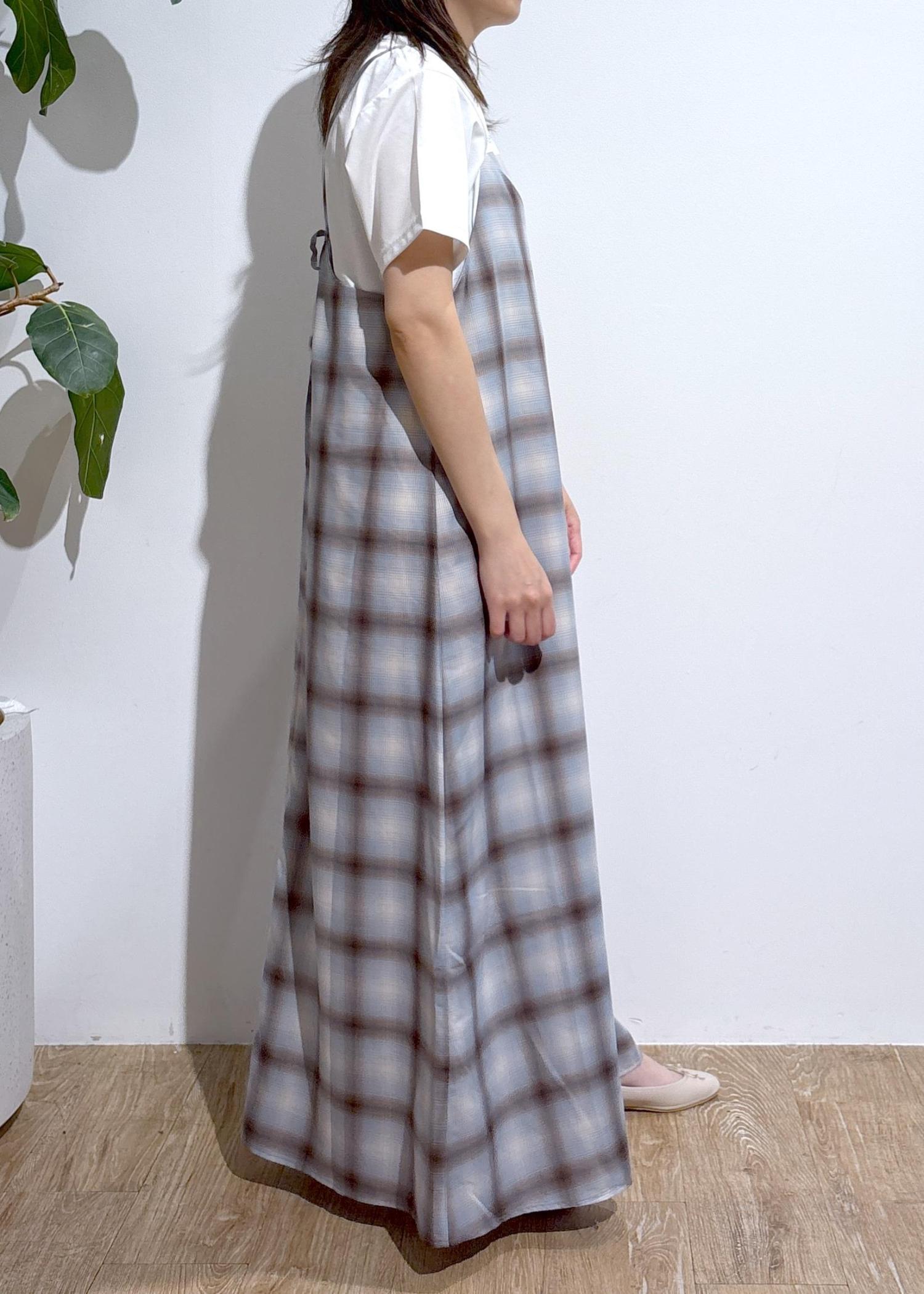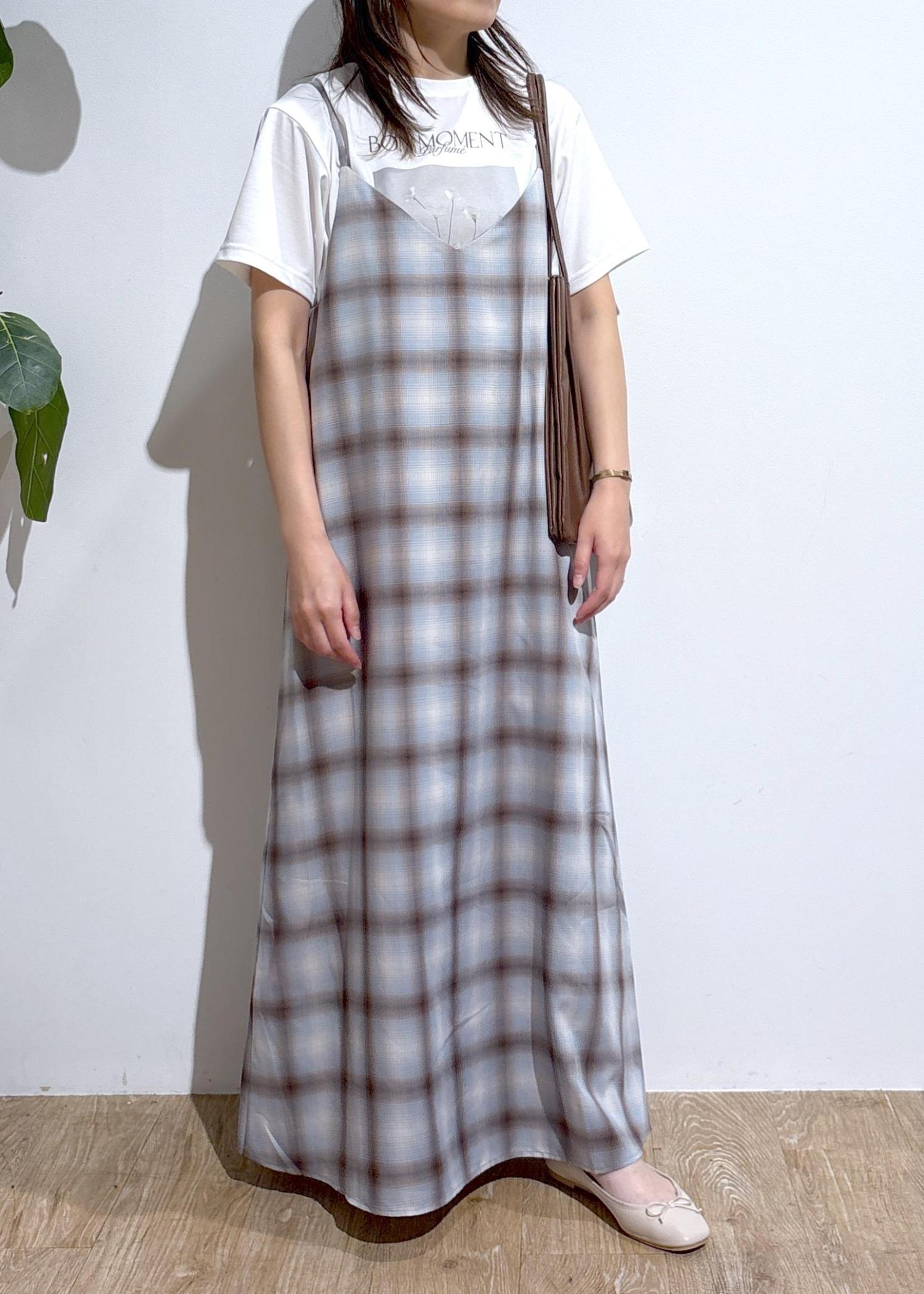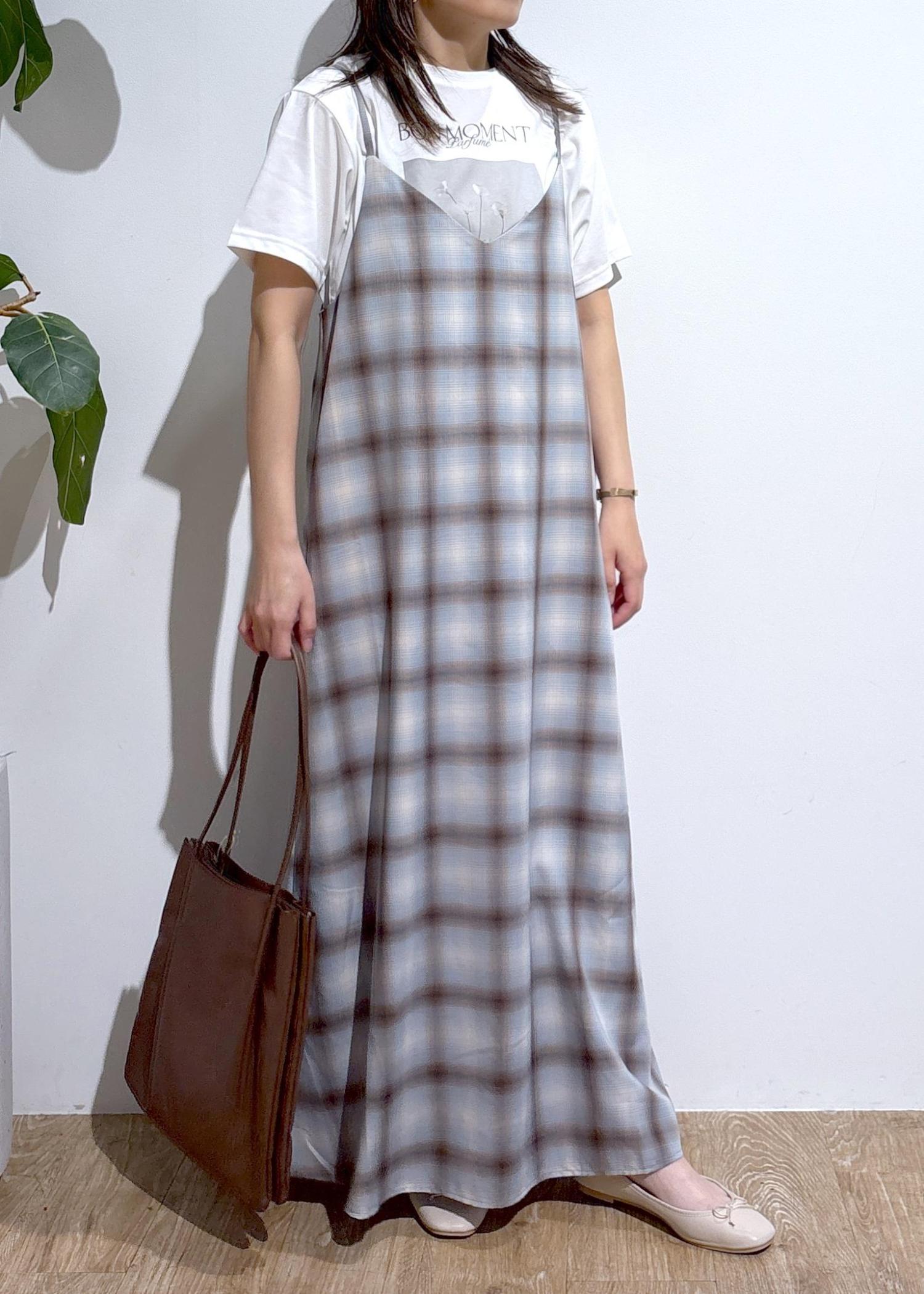 柔らかなグラデーションカラーが特徴のオンブラチェック柄のキャミワンピース。
