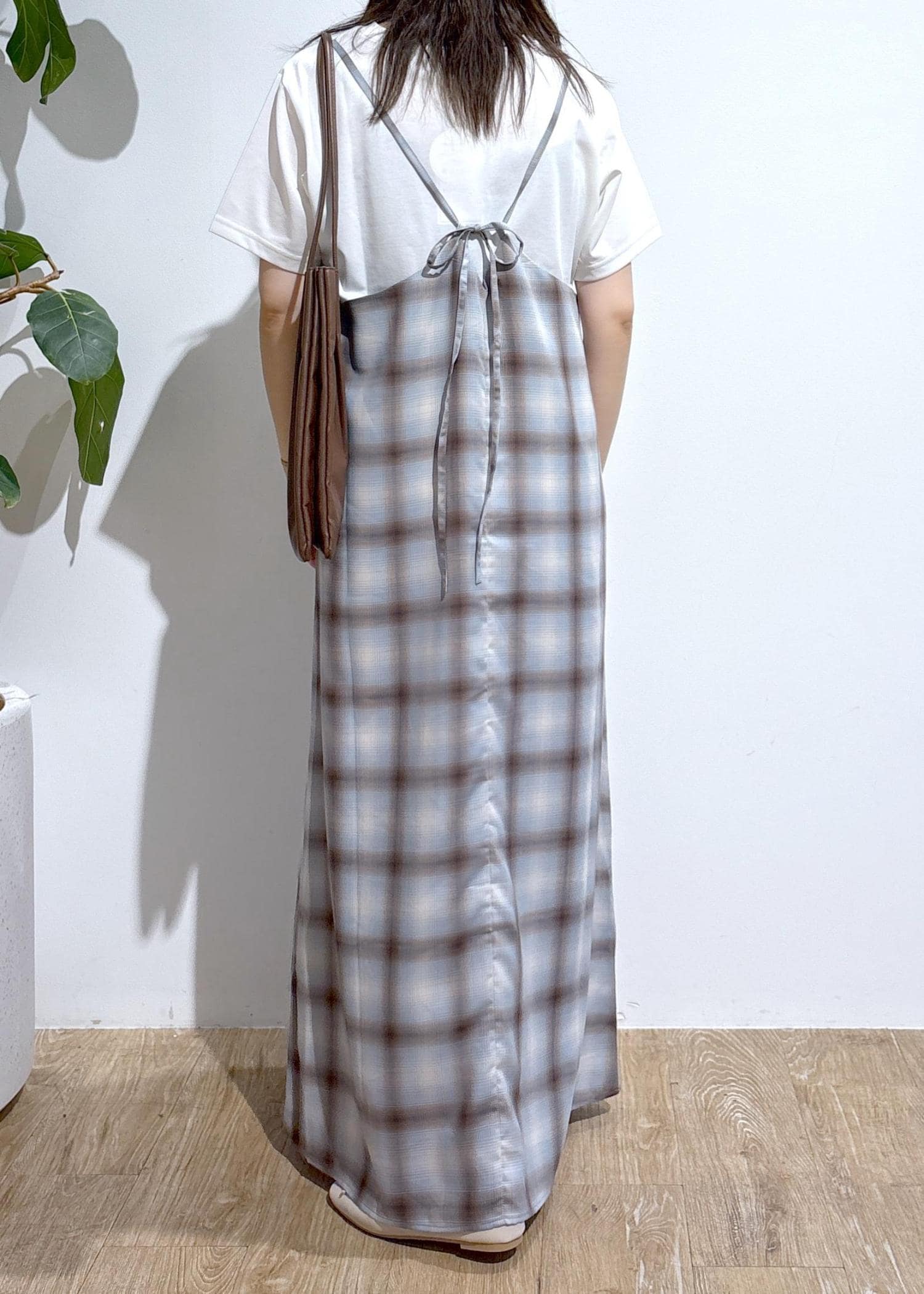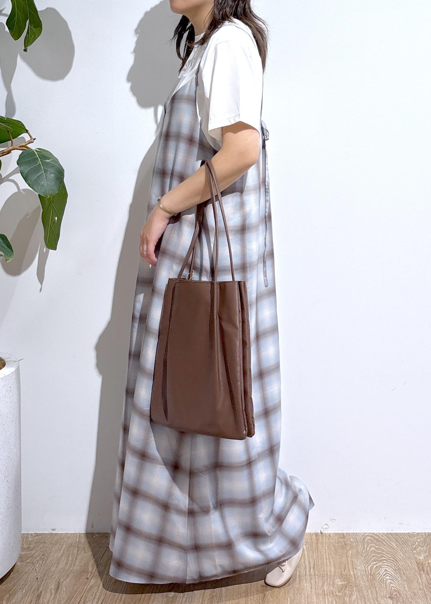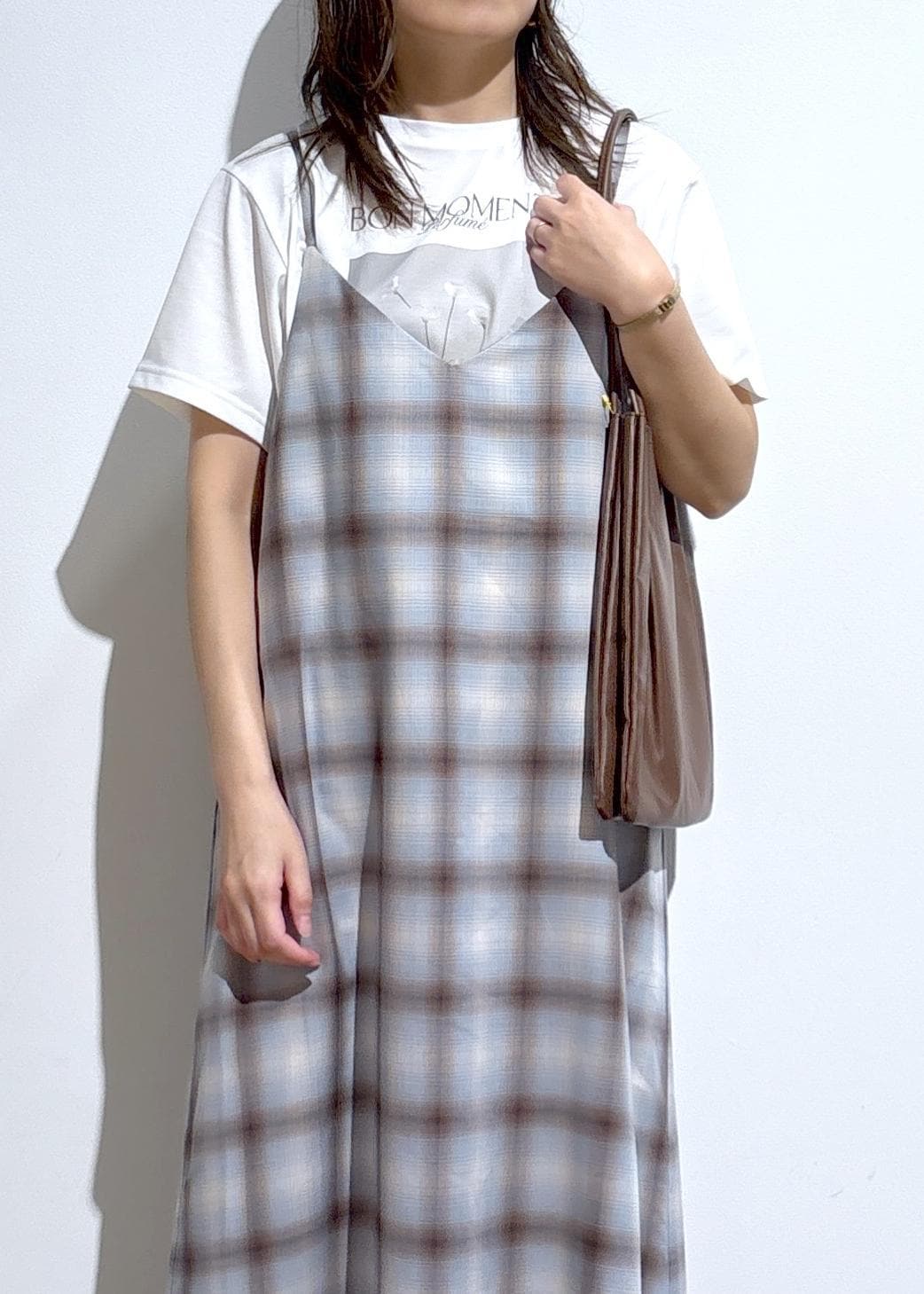 柔らかなグラデーションカラーが特徴のオンブラチェック柄のキャミワンピース。