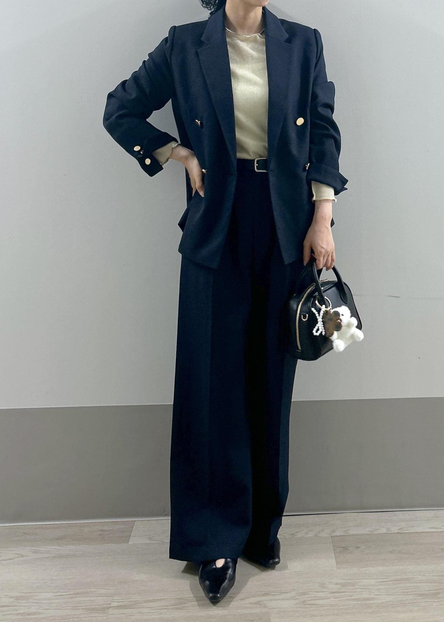着丈は腰が隠れるくらい、袖丈は手首が隠れるくらいでスッキリしているのでお仕事にも着用いただけます。