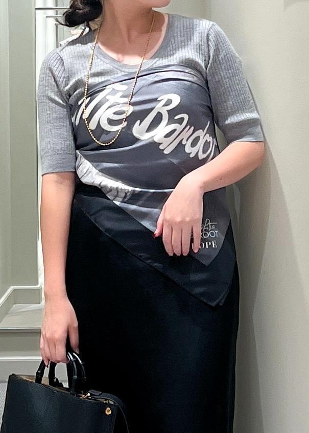 ROPÉ【Brigitte Bardot×ROPE'・コラボ】プリントシルクスカーフ/Lサイズブラック系 / F¥7,920レビュー88㎝×88㎝の大判サイズ。