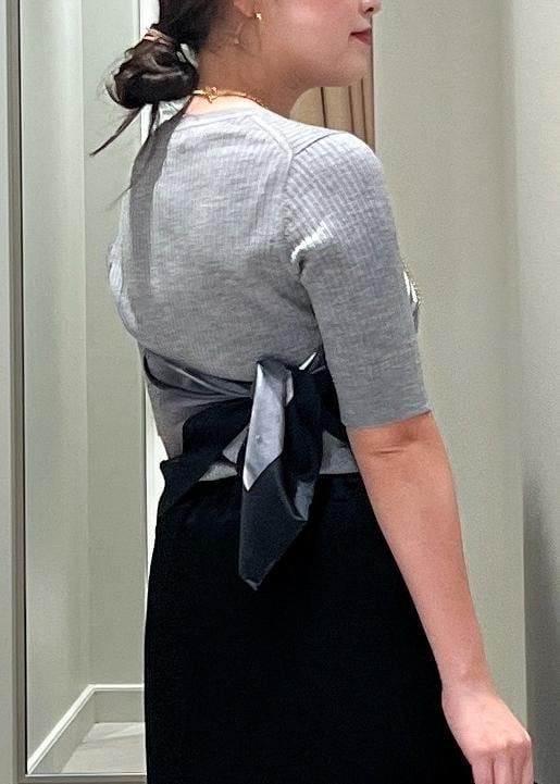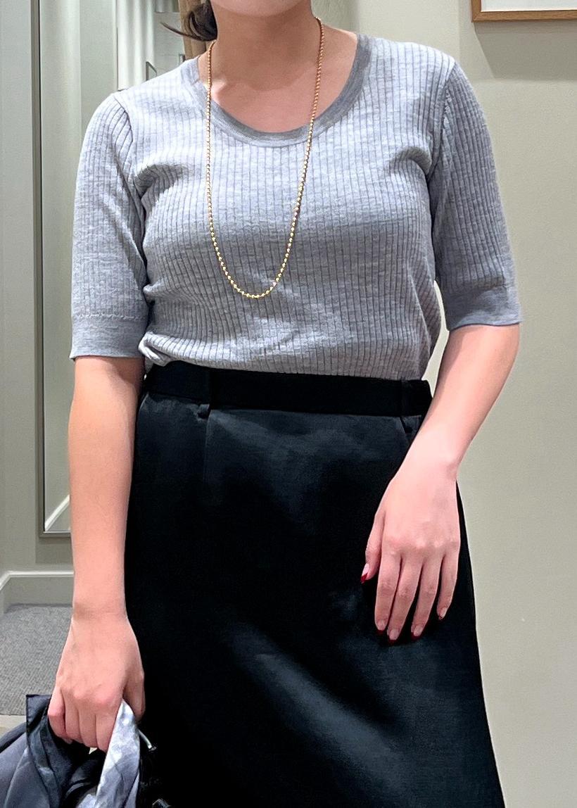 ROPÉワイドリブラウンドネック スーパーメリノウール ニット/イージーケアグレー / F¥8,250レビュー胸元の開き具合がちょうどよく鎖骨が